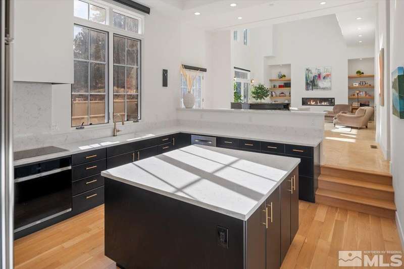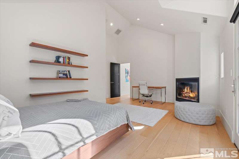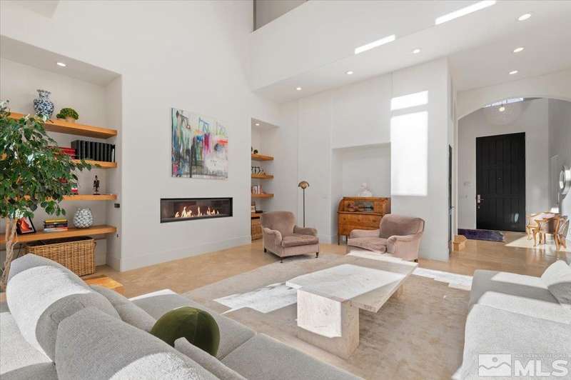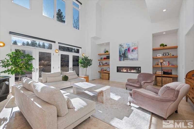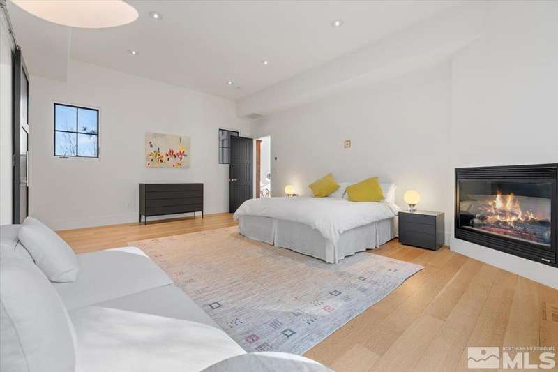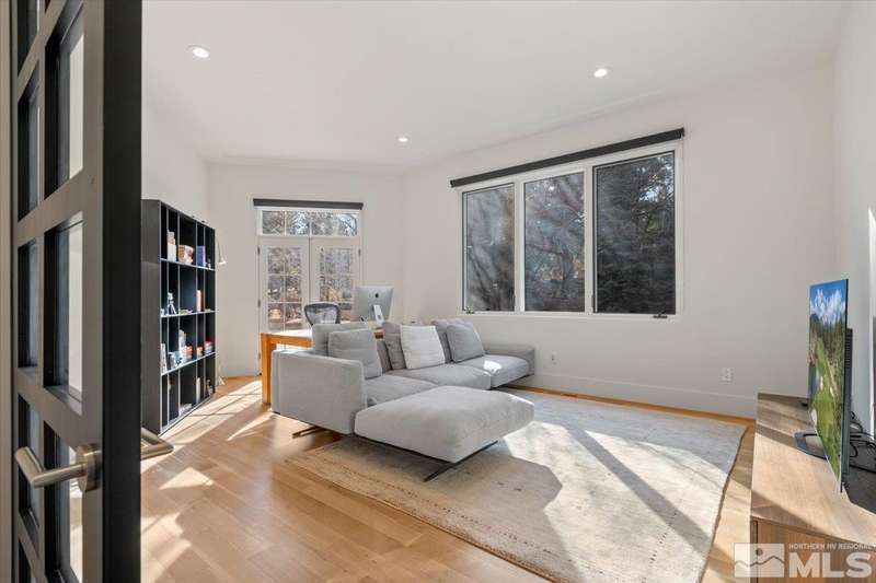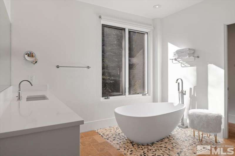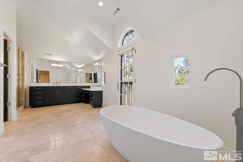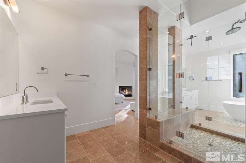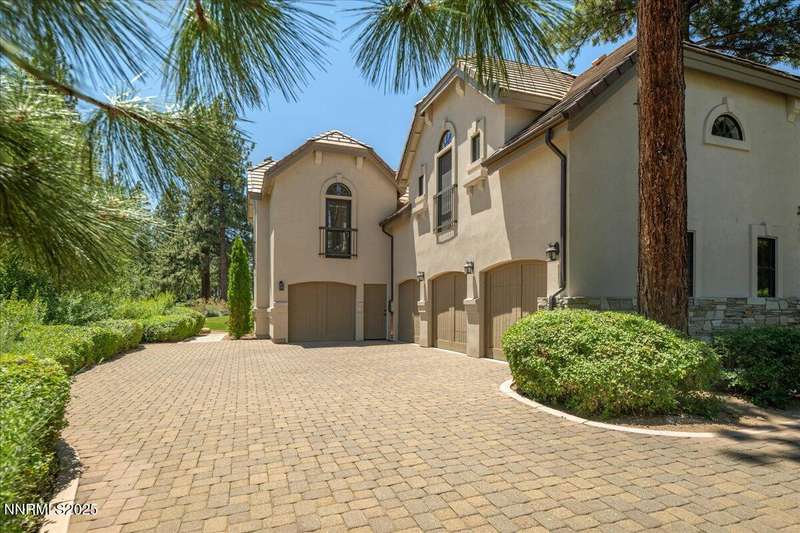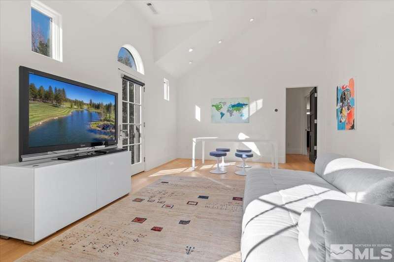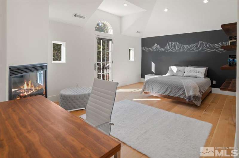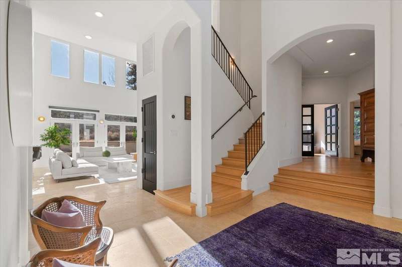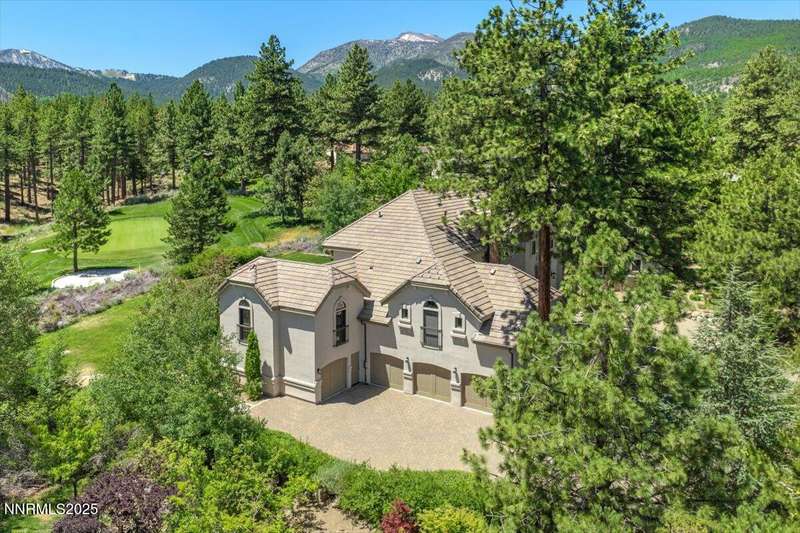 Contemporary Elegance in Montreux! Prime south-facing location on the 12th Fairway, this fully-renovated custom home presents a refreshing modern European aesthetic. Sensational upgrades include white oak hardwood and travertine floors, upscale Wolf & Sub-Zero appliances, quartz countertops, new interior/exterior doors, windows, and paint, Hunter Douglas window coverings, and so much more. Two Primary Suites and exceptional flex space options for a personalized lifestyle. Sweeping golf and mountain views!, Light and Bright! Versatile living abounds with this expansive, yet inviting floorplan. The main floor showcases a Great Room with soaring 25’ ceilings, open-concept Kitchen with beverage station and walk-in pantry, Formal Dining, Office/Den, Primary Suite, Powder Bath, spacious Laundry, and dedicated Mud Room. Upstairs, the west wing offers a second private Primary Suite, Family Room, two Guest Rooms with lavish shared full bath, and voluminous open hallway with nook. The east upstairs wing presents an expansive Loft/Fitness area, Bedroom Suite, and large Flex/Storage Room. The modern Gourmet Kitchen is appointed with an upscale Wolf induction stove top and grill, industrial draft hood, built-in Sub-Zero refrigerator, and stunning Viatera quartz countertops. Outfitted with 4 efficient HVAC systems, 4 cozy fireplaces, NEST programmable thermostats, heated bidet toilets, designer light fixtures, and much more. Side-loading garage accommodates 4 cars + golf cart, and includes an EV charger, pet washing station, and substantial built-in storage. The meticulous fully-landscaped exterior features a programmable irrigation system, solar lighting, and lush pine and aspen trees. Located on Montreux’s famed “Signature Drive,” this home on 5550 Lausanne is near to both the world-class Clubhouse amenities and entry gate. Mt. Rose Ski Resort and the Reno-Tahoe International Airport are just 20 minutes away, and it’s a short 30-minute scenic drive to beautiful Lake Tahoe. Montreux is a 24-hour manned gated community with a private 18-hole Jack Nicklaus Signature Championship Course (Par 72), Clubhouse, Dining, Fitness Center, Tennis and Pickleball Courts, Bocce Ball, Pool Complex, and access to miles of nature trails.