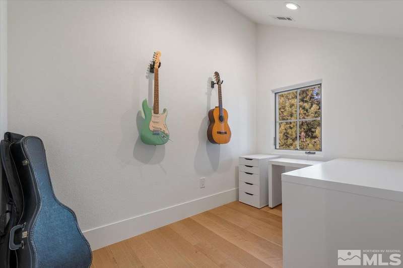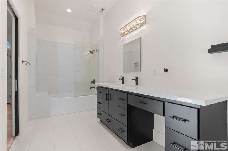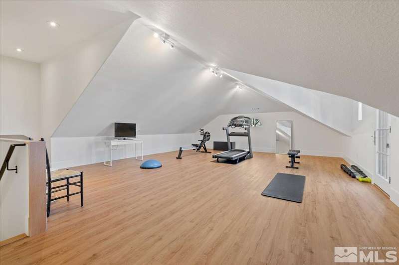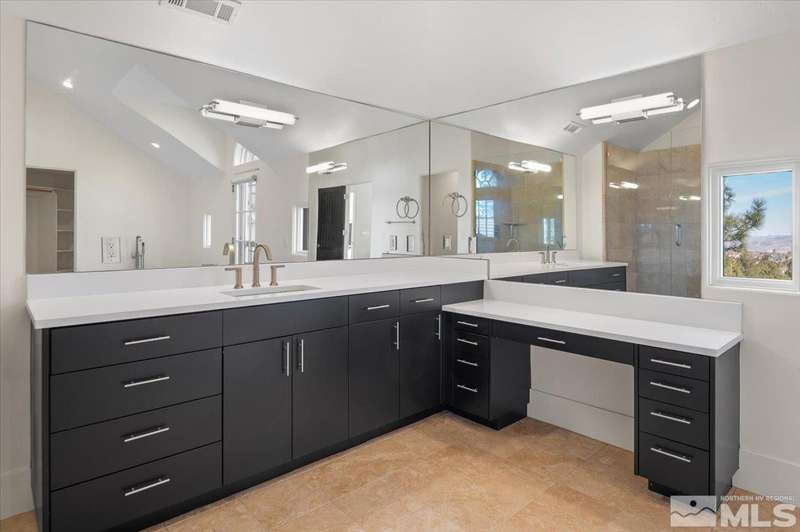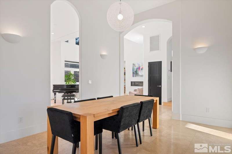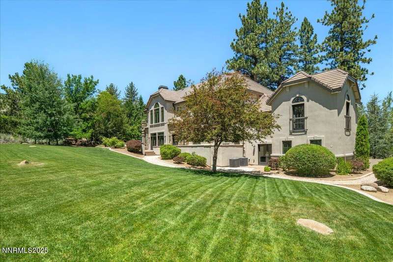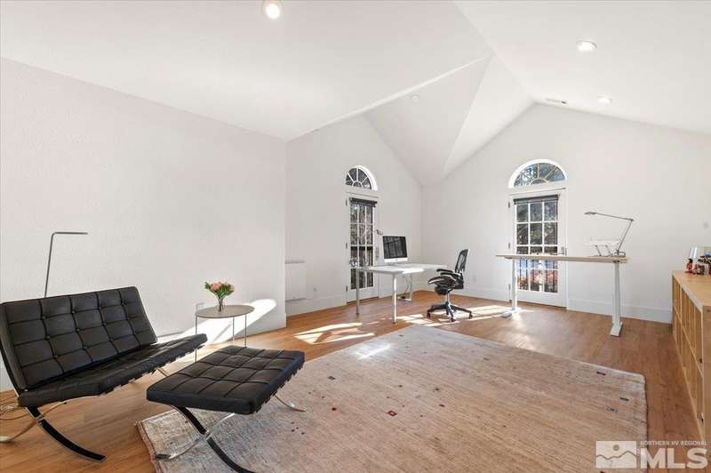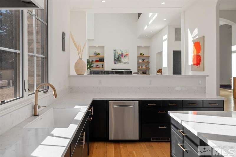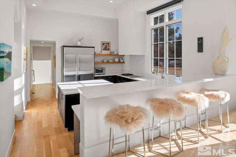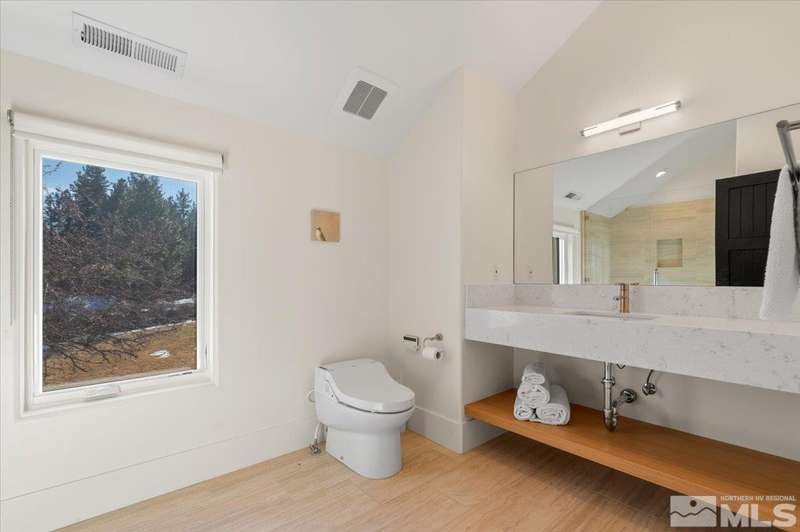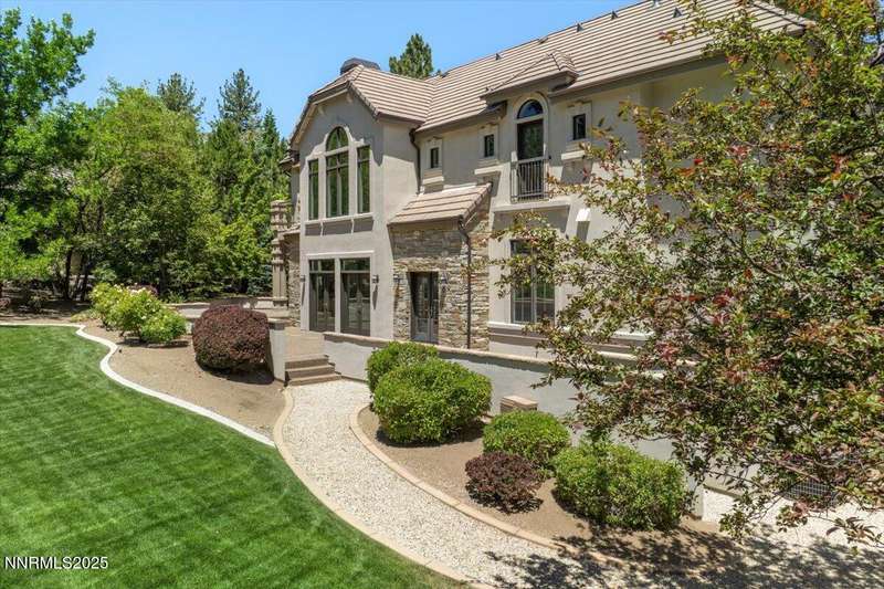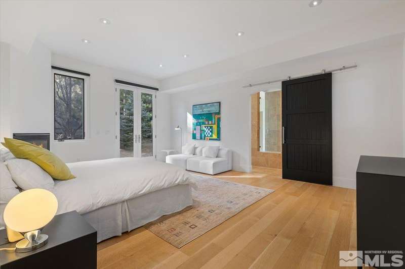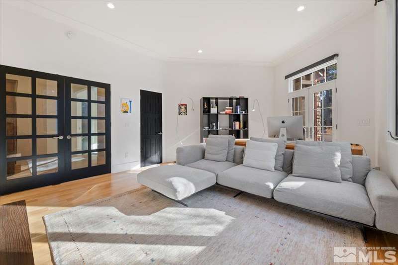 Contemporary Elegance in Montreux! Prime south-facing location on the 12th Fairway, this fully-renovated custom home presents a refreshing modern European aesthetic. Sensational upgrades include white oak hardwood and travertine floors, upscale Wolf & Sub-Zero appliances, quartz countertops, new interior/exterior doors, windows, and paint, Hunter Douglas window coverings, and so much more. Two Primary Suites and exceptional flex space options for a personalized lifestyle. Sweeping golf and mountain views!, Light and Bright! Versatile living abounds with this expansive, yet inviting floorplan. The main floor showcases a Great Room with soaring 25’ ceilings, open-concept Kitchen with beverage station and walk-in pantry, Formal Dining, Office/Den, Primary Suite, Powder Bath, spacious Laundry, and dedicated Mud Room. Upstairs, the west wing offers a second private Primary Suite, Family Room, two Guest Rooms with lavish shared full bath, and voluminous open hallway with nook. The east upstairs wing presents an expansive Loft/Fitness area, Bedroom Suite, and large Flex/Storage Room. The modern Gourmet Kitchen is appointed with an upscale Wolf induction stove top and grill, industrial draft hood, built-in Sub-Zero refrigerator, and stunning Viatera quartz countertops. Outfitted with 4 efficient HVAC systems, 4 cozy fireplaces, NEST programmable thermostats, heated bidet toilets, designer light fixtures, and much more. Side-loading garage accommodates 4 cars + golf cart, and includes an EV charger, pet washing station, and substantial built-in storage. The meticulous fully-landscaped exterior features a programmable irrigation system, solar lighting, and lush pine and aspen trees. Located on Montreux’s famed “Signature Drive,” this home on 5550 Lausanne is near to both the world-class Clubhouse amenities and entry gate. Mt. Rose Ski Resort and the Reno-Tahoe International Airport are just 20 minutes away, and it’s a short 30-minute scenic drive to beautiful Lake Tahoe. Montreux is a 24-hour manned gated community with a private 18-hole Jack Nicklaus Signature Championship Course (Par 72), Clubhouse, Dining, Fitness Center, Tennis and Pickleball Courts, Bocce Ball, Pool Complex, and access to miles of nature trails.