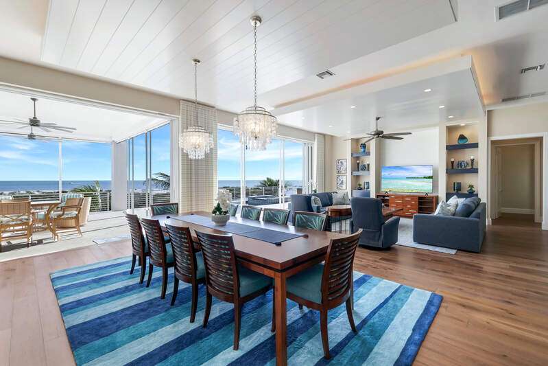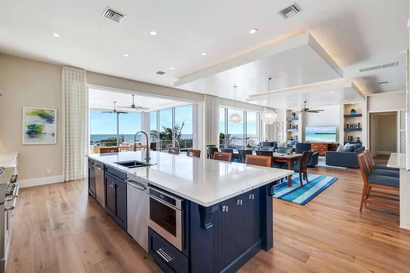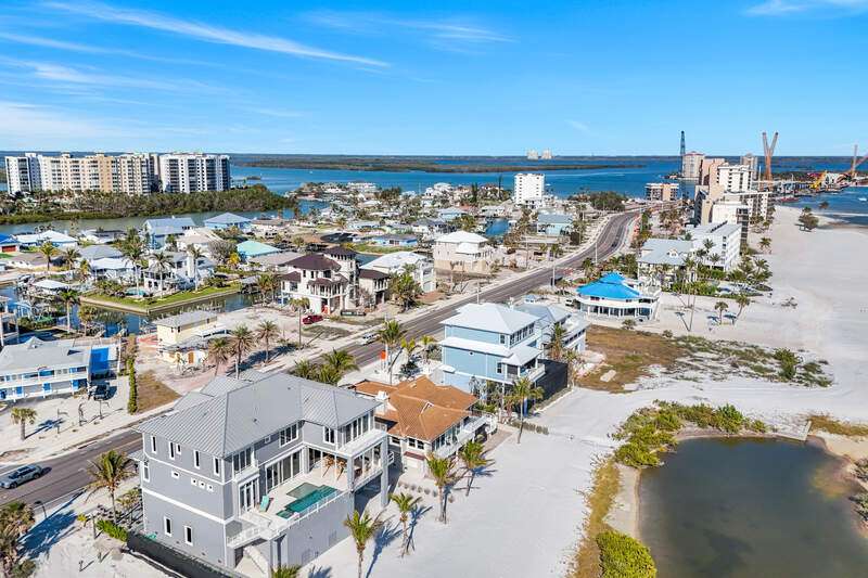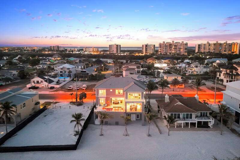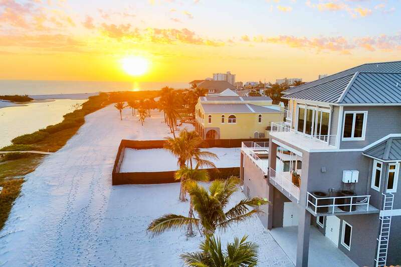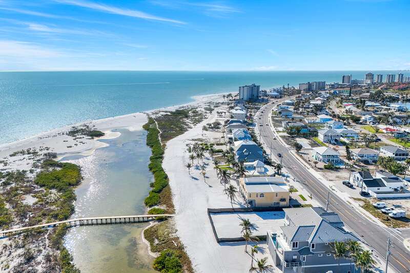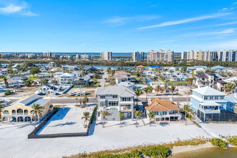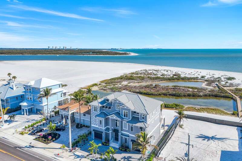 An exclusive & spectacular beachfront home located on the tranquil south end of Fort Myers Beach offers unrivaled panoramic gulf & beach front views stretching from Naples to Sanibel on clear days & evenings serving as a perfect backdrop of luxury & privacy. Positioned on a rare section of beach w/ultra-private backyard yet, from the home, you have direct access to the sandy beach & gulf waters. Featuring 6 spacious ensuite bedrooms or 5 ensuites & a den w/full bathroom, the residence boasts 10' to 15' high ceilings, stunning hardwood & tile flooring, fully color-coordinated accents, an open 3-tiered floorplan drawing in natural light throughout plus, an elevator that provides easy access to all levels, ensuring convenience throughout the home. The chef-inspired kitchen is equipped with top-tier appliances, dual ovens, dual dishwashers, large walk-in pantry, wet bar, multiple dining options from casual to formal both inside & outside, ideal for both everyday living, entertaining & those special gatherings. Step outside to the expansive patio, where you'll enjoy a full outdoor experience from lounging, sunbathing, dining & more. Complete outdoor kitchen, fireplace, infinity pool & spa, all designed for taking full advantage of the mesmerizing sunsets & living the ultimate beach front lifestyle. Designed with comfort, efficiency & luxury at top-of-mind, this home features high-impact windows & doors, electric Clear Choice Storm Shutters, motion-senor automated sliders that open up to the beach, a garage that follows the footprint of the home to accommodate 6+ cars, double laundries (main & upper level) & Lutron lighting system. Additional highlights include two new A/C systems (2024), on-demand gas water heaters, a 1,000-gallon underground propane tank, a MyQ WiFi-controlled garage & beautiful, irrigated landscaping. A short drive, bike ride or trolley connection can take you to Lovers Key State Park, a variety of local marinas, various local shopping & dining venues as well as easy access to a number of public boat launches. The trolley-stop is just across the street. This home is perfect for enjoying the finest in beachfront living as well as both current & future local attractions as investment in the community continues to unfold.