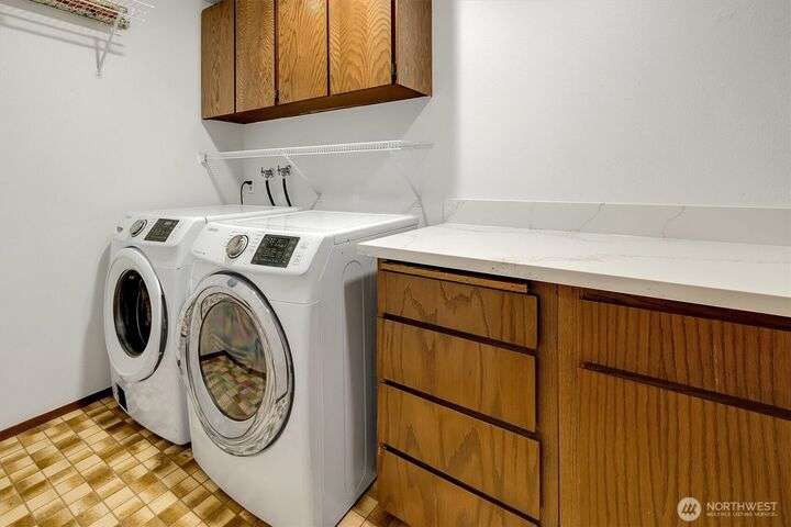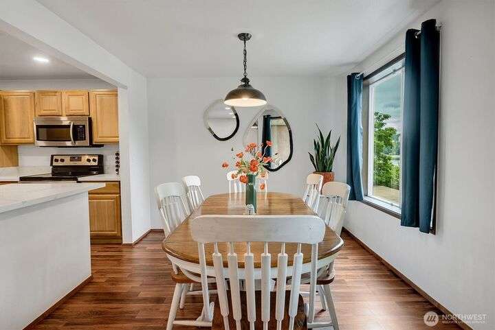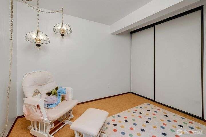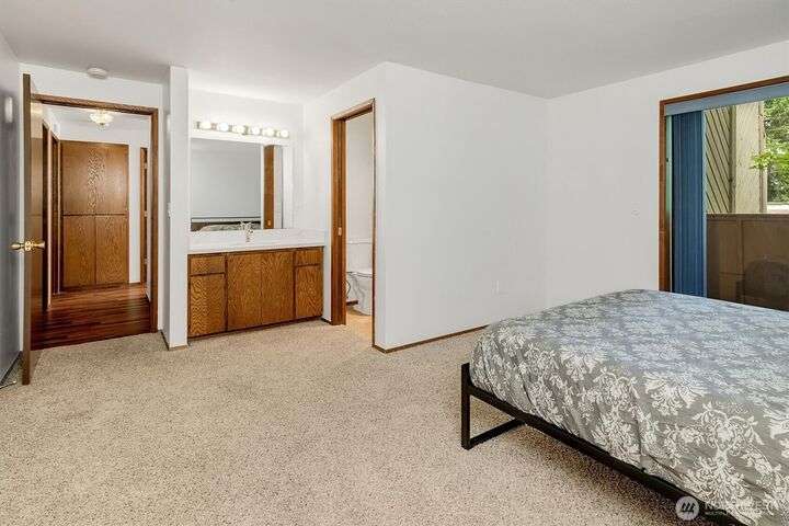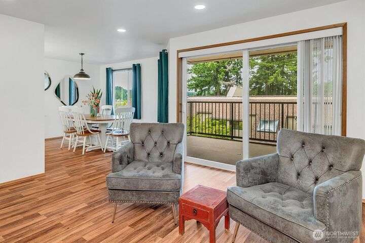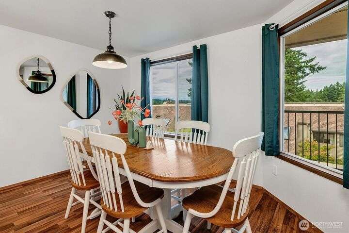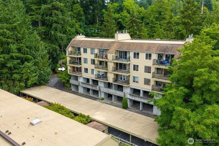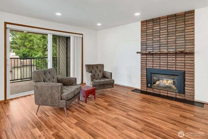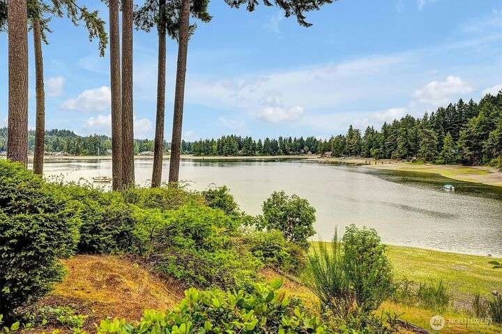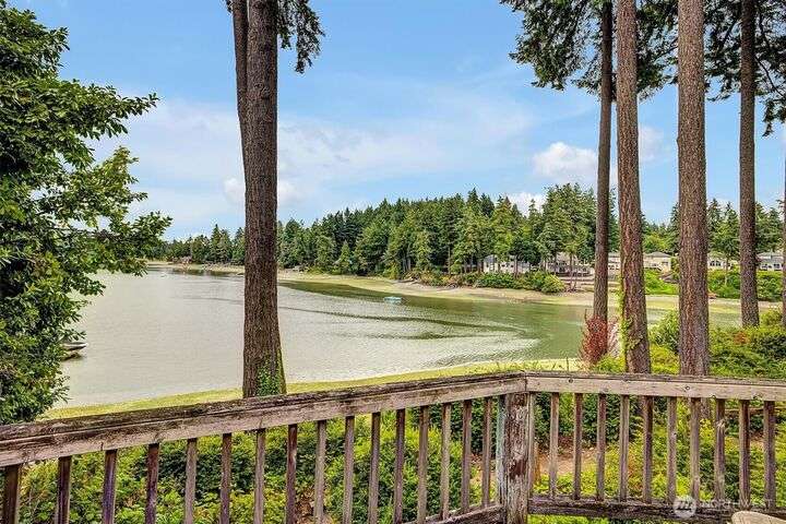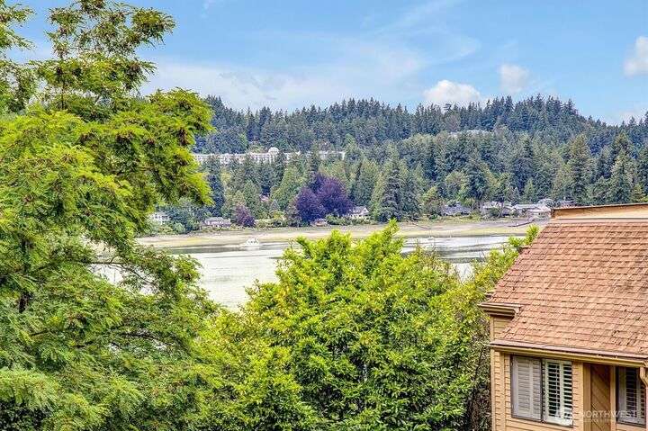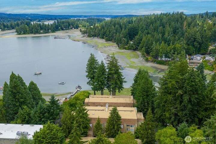 Waterfront living! Easy access to this first floor (no steps) spacious condo with its bright windows and updated lighting. Drop in your paddle board and experience the Puget Sound from your own backyard on Oyster Bay. Entertain, cook, and gather in a beautifully updated kitchen featuring white quartz countertops, wood cabinetry, and premium stainless-steel appliances, including a built-in oven and microwave. Enjoy the serene views of the mountains and the sound from balconies off the living room and the primary bedroom. Gather around the charming brick fireplace, the glowing heart of this spacious living room. Two assigned covered parking spots and additional storage in the parking garage. No Rental cap. Bring your Cash offer