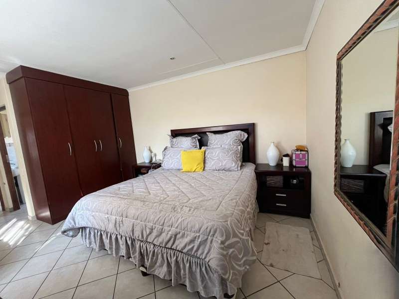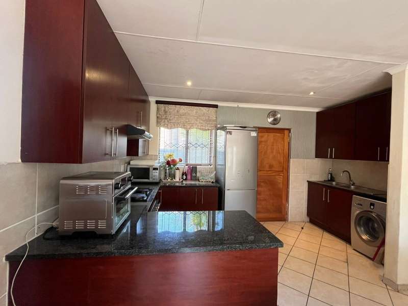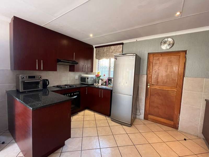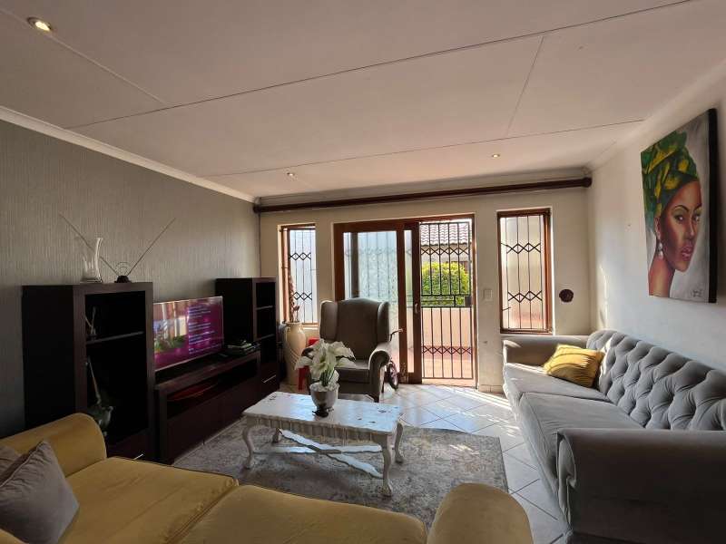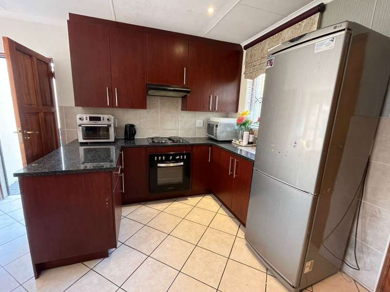 Modern 3-Bedroom Home in a Secure Estate Welcome to this beautifully designed 3-bedroom, 2-bathroom home nestled in a sought-after estate. Perfectly blending comfort and functionality, this residence offers spacious living areas ideal for both relaxation and entertaining. The open-plan layout flows seamlessly from the modern kitchen into the lounge and dining area, extending out to a private garden complete with a built-in braai – perfect for family gatherings and weekend entertaining. The three well-appointed bedrooms provide ample space, with the main bedroom featuring an en-suite bathroom for added convenience. A second bathroom serves the remaining bedrooms, ensuring comfort for family and guests alike. Additional features include a double garage with direct access to the home, ample storage, and the peace of mind that comes with living in a secure, well-maintained estate.