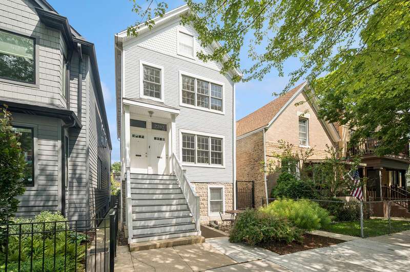 Exceptional 3-Unit Investment Opportunity in the Heart of Logan Square! Located just one block from the iconic Logan Boulevard, this well-maintained property offers the perfect blend of investment potential and owner-occupant comfort on a quite tree lined street. The spacious owner's duplex-up features tons of natural light, hardwood floors, 3 bedrooms, 1.5 baths, in-unit laundry, master suite, a generous living and dining space and an extra-large kitchen. The Kitchen features 42 inch oak cabinets, stainless steel appliances, Corian counters, slate backsplash and a large pantry. The top two units have oak hardwood floors, built-in oak hutch and enjoy large inviting private rear balconies with durable composite decking-perfect for outdoor entertaining. All units are equipped with high efficiency central heat and air conditioning. Unit #1 features insulated modern, sealed, concrete flooring with in-floor tubing for optional radiant heat (currently not connected), offering future value-add potential. Step outside to a beautifully landscaped backyard with a paver patio, raised cedar garden bed, and a mature Concord grape vine with arbor. Recent updates include new copper water service in 2024, new gas service with meters relocated outside, tuckpointing in 2025, sewer scoped in 2024, an extra-tall two car garage and additional insulation throughout the property reducing utility costs. Enjoy everything Logan Square has to offer: walkable in just minutes to the Sunday Farmers Market, trendy restaurants and coffee shops, vibrant shopping, the bus and the CTA Blue Line and close to expressway. This is a rare chance to own a turn-key property in one of Chicago's hottest neighborhoods!