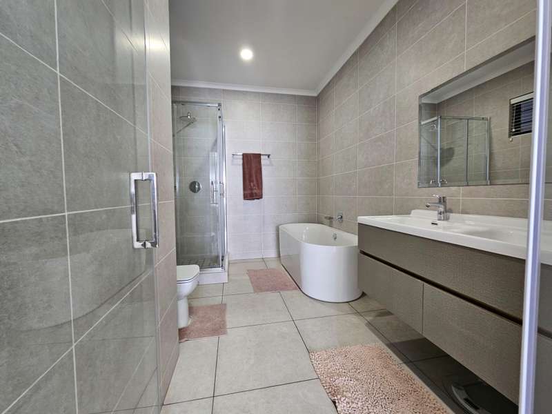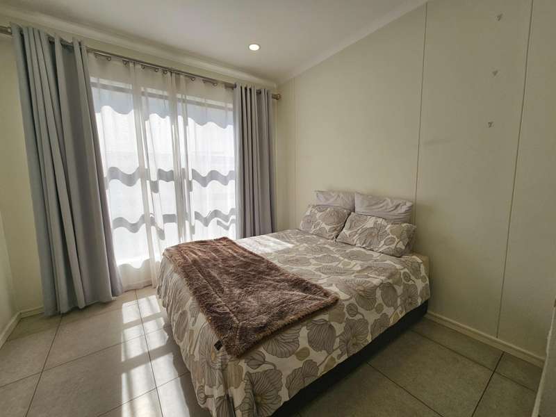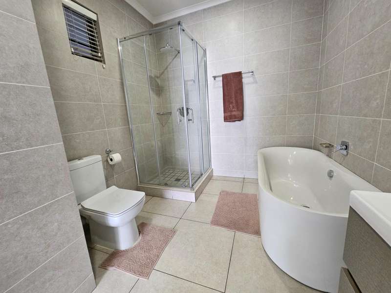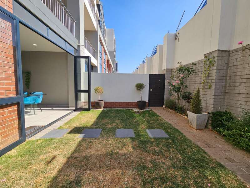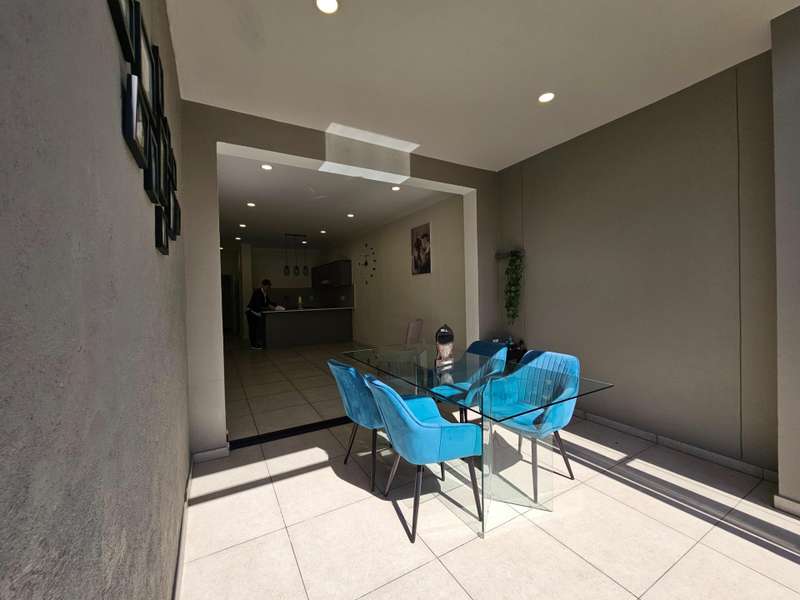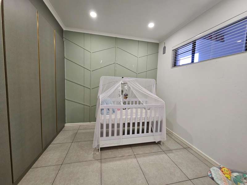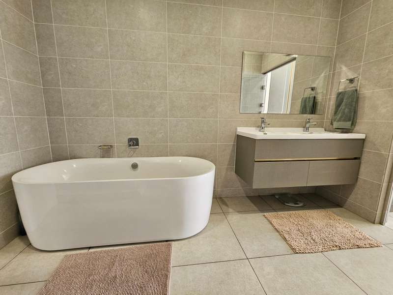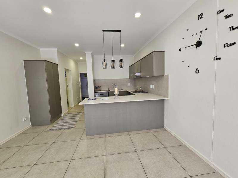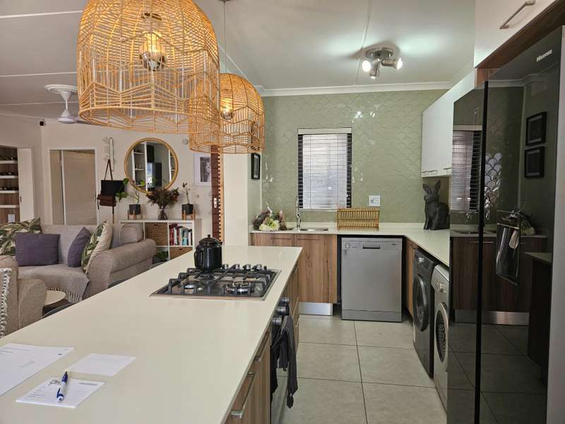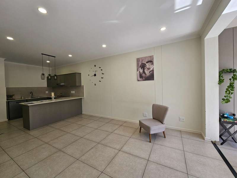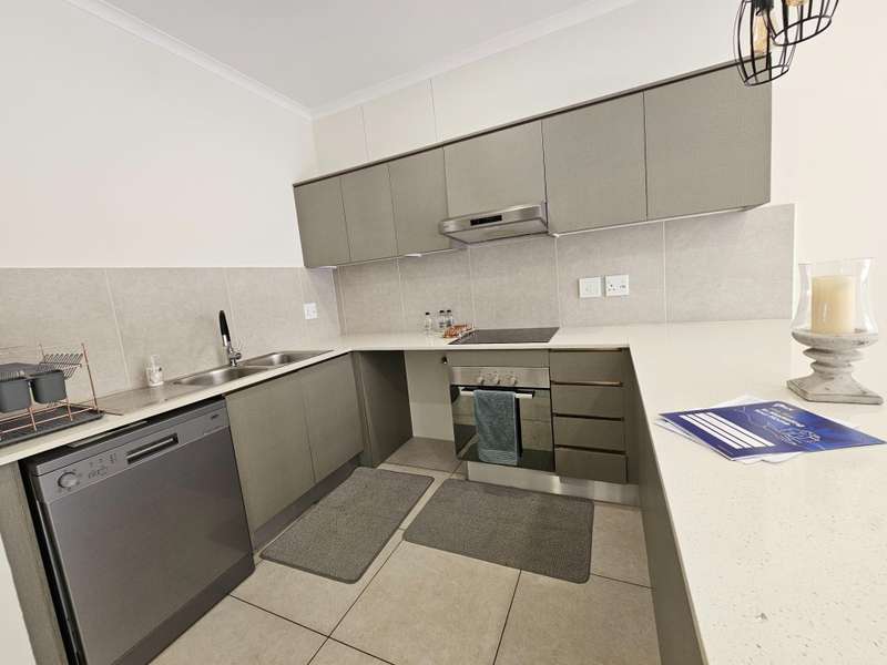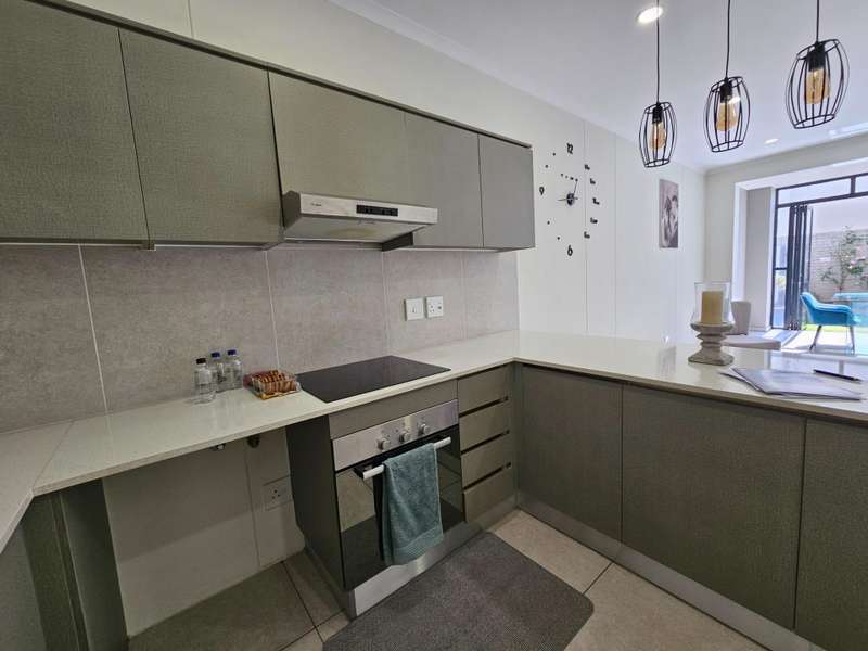 Be well received by a large open plan kitchen and living area that seamlessly flows to a well manicured garden. The kitchen is fitted with top of the range cabinetry, an electric hob and oven with quartz tops. The living area is spacious and accommodates a lounge and dining are with ease.
