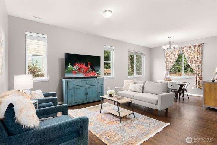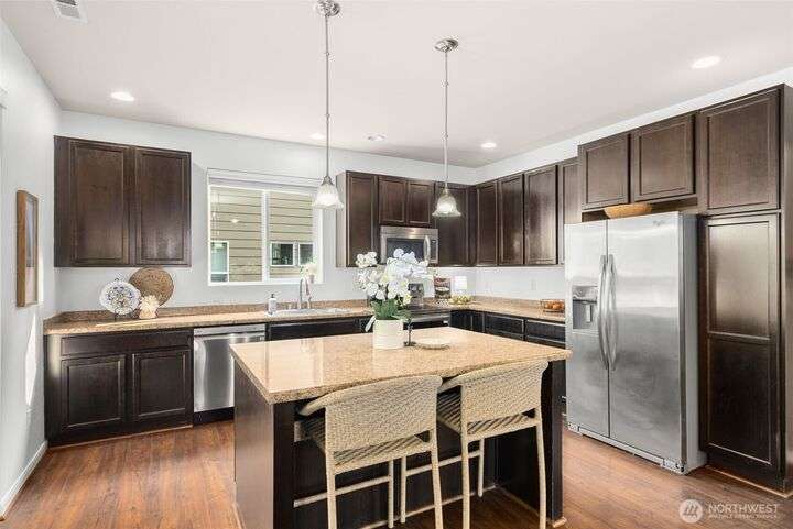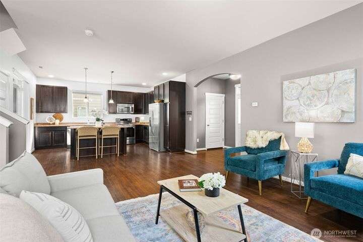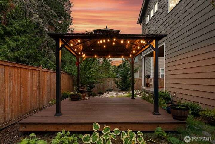 Welcome to your Liberty Hill retreat in beautiful Poulsbo! This move-in-ready 3-bed, 2.5-bath home offers 1,792 sq ft of comfort with durable LVP floors, a bright and inviting living area, and a freshly painted kitchen with brand-new stainless steel stove and dishwasher. Upstairs, enjoy a spacious primary suite with walk-in closet and private bath, plus two bedrooms, full bath, laundry, and a versatile loft. Outside, unwind in your fully fenced backyard oasis with mature landscaping, patio, and gazebo beside a peaceful greenbelt. Complete with an attached two-car garage and located near schools, parks, bases, shopping, and ferries—this Poulsbo home is the perfect Kitsap County retreat!