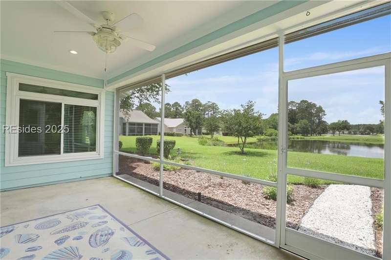 Don't miss this beautifully updated Hamilton/Jefferson model nestled in the desirable Historic Village of Sun City Hilton Head. Ideally situated on an oversized lot along a quiet circle, this 2-bedroom + den, 2-bath home offers 1,669 sq. ft. of comfortable, light-filled living space with breathtaking lagoon and golf course views. Enjoy peace of mind with major improvements already completed, including Exterior paint & 6" gutters, Hurricane-rated windows & doors, HVAC system and washer/dryer (2021),Garage door opener (2022), Water heater (2023) Step outside to a screened porch perfect for year-round Lowcountry living, where youll take in tranquil water views and resort-style scenery. Inside, you will find thoughtful upgrades, a spacious layout, and timeless charm at every turn. With its prime Southside location near all amenities and a serene setting, this home is truly a standout opportunity in Sun City Hilton Head.