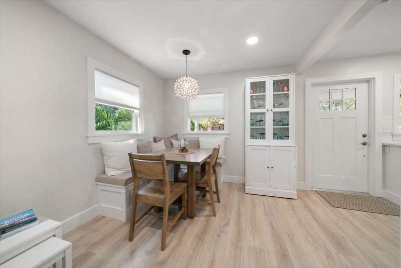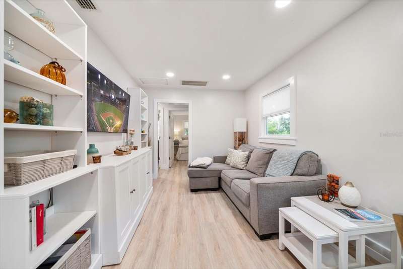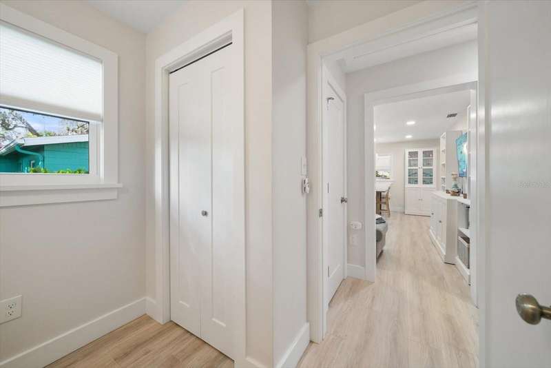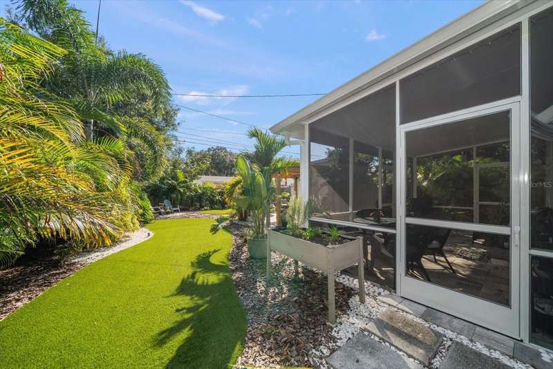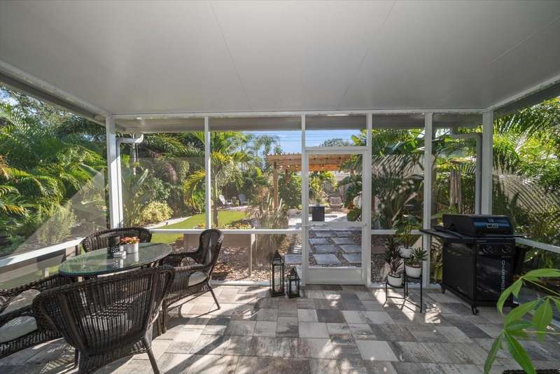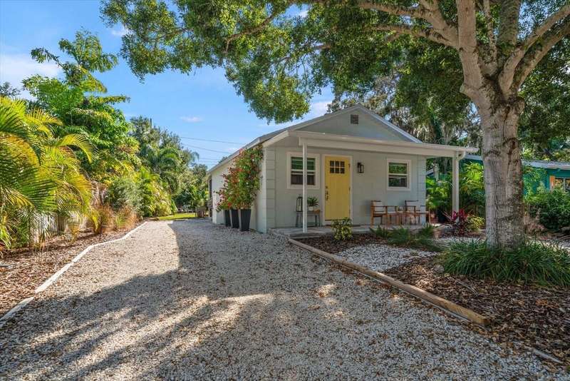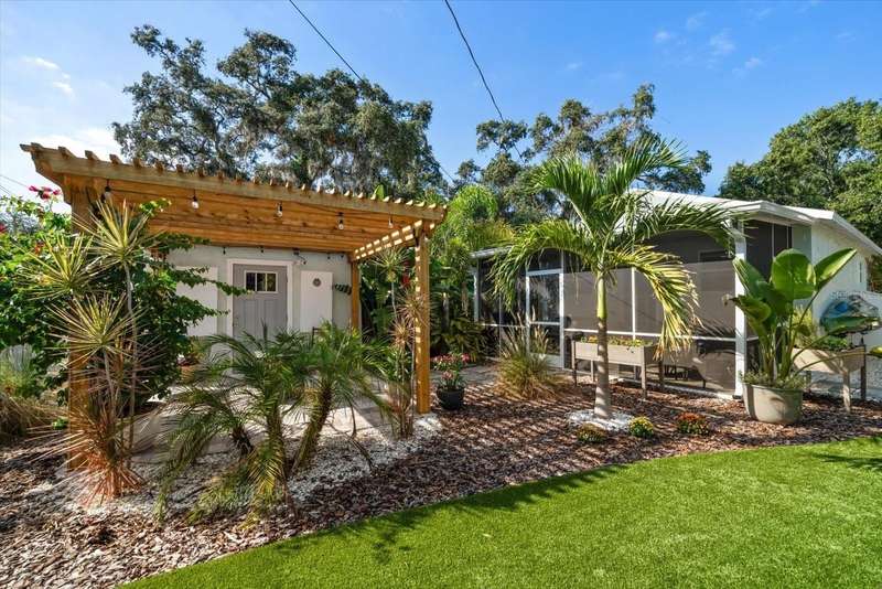Tucked away in the heart of Crystal Beach, this picture-perfect coastal bungalow combines modern luxury with relaxed beach-town charm. Completely reimagined from top to bottom over the past two years, this 2-bedroom, 1-bath retreat (approx. 700 sqft) offers stylish living in one of Pinellas County’s most sought-after seaside communities. Drink your coffee every morning on your adorable front porch, or step inside and fall in love with the light-filled open layout featuring all-new hurricane-rated windows and doors for peace of mind. The adorable coastal-inspired kitchen boasts GE stainless steel appliances, custom tile backsplash, all-new wood cabinetry, and stunning quartzite countertops that carry seamlessly into the bathroom. The spacious bathroom is beautifully updated and includes a convenient closet with washer and dryer, maximizing both form and function. Out back, your private tropical oasis awaits! Enjoy Florida living at its best with a screened-in porch, charming pergola, and maintenance-free artificial turf that stays green year-round. The lush landscaping, irrigation system, garden boxes, and storage shed make this backyard both beautiful and practical. This home is in an X FLOOD ZONE and had NO ISSUES WHATSOEVER during both of the 2024 hurricanes!! Offered furnished (with only a few personal exclusions), this turnkey retreat is ready for you to move right in and start living the laid-back Crystal Beach lifestyle, just minutes from the Gulf, Pinellas Trail, and all the coastal fun the area is known for.
