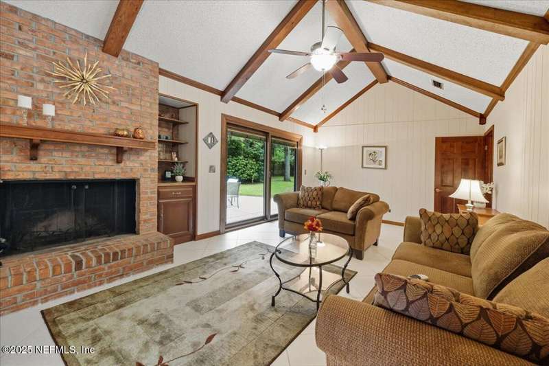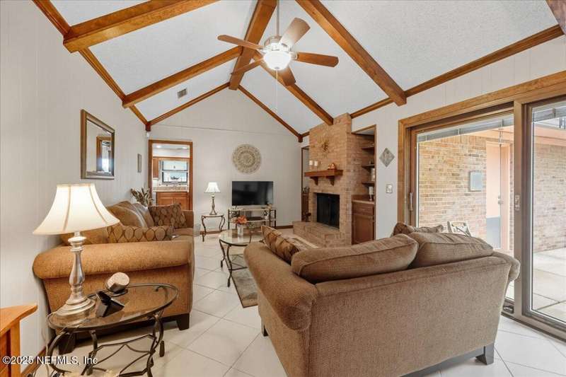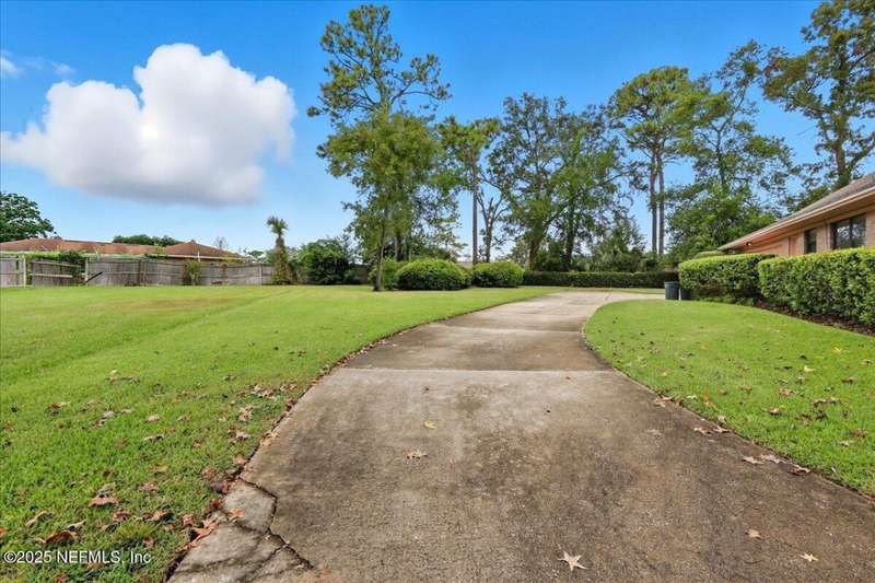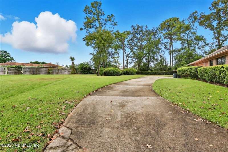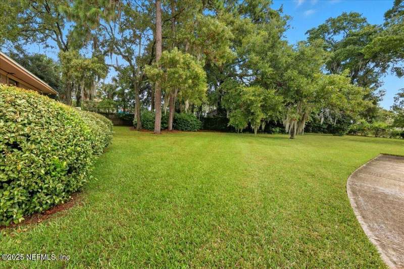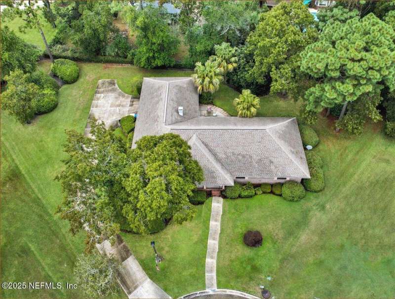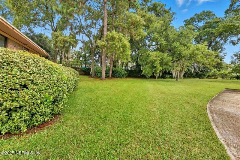 This midcentury ranch is gently loved and nicely updated. Situated on a cul-de-sac in the desirable community of Fairways Forest you are close to Downtown, Town Center, Beaches and a Public Boat Ramp. The home sits on a large lot with mature trees that can be enjoyed from your front porch or cozy patio. The home has high ceilings, Spacious Formal LIving and Dining Rooms, Updated Kitchen w/Custom Cabinets, Granite Counters, Stainless Steel Appliances Tile Backsplash, Breakfast Bar, Breakfast Nook, Powder Room and Laundry Area, There is a large Family Room w/Wood Burning Fireplace, Built-in's, Vaulted Ceilings and Tile Floors, There are 3 Spacious Secondary Bedrooms, along with a Primary Suite w/His-N-Hers Closets, Ensuite Bath w/updated Walk-in Shower & Raised Vanity, there is an oversized attached two car garage and expansive driveway for extra parking and vehicle storage. Features: HVAC 2023, WH 2021, Water Softener, All Appliances Convey, Walkable Attic Storage