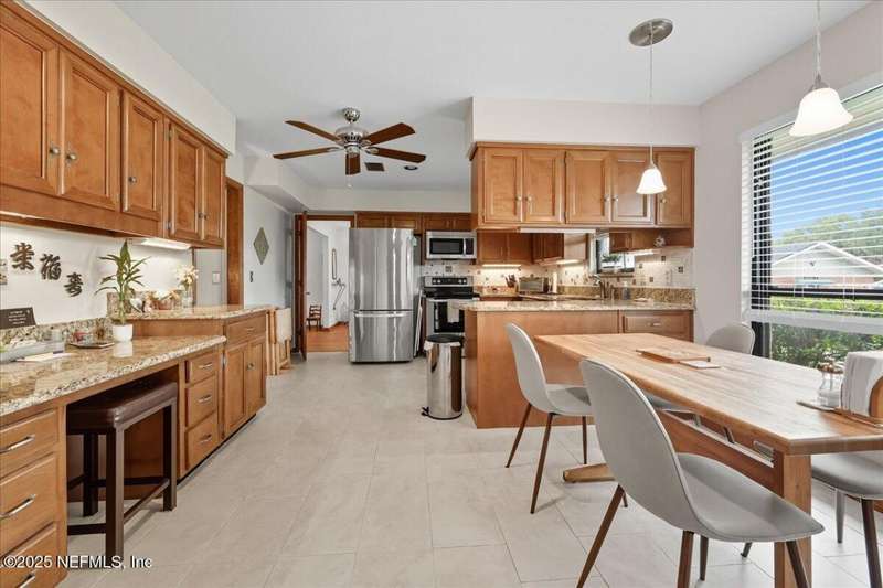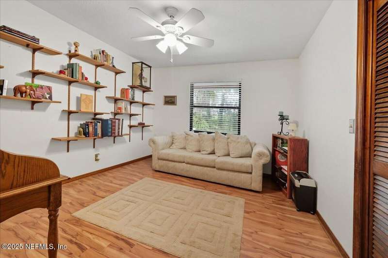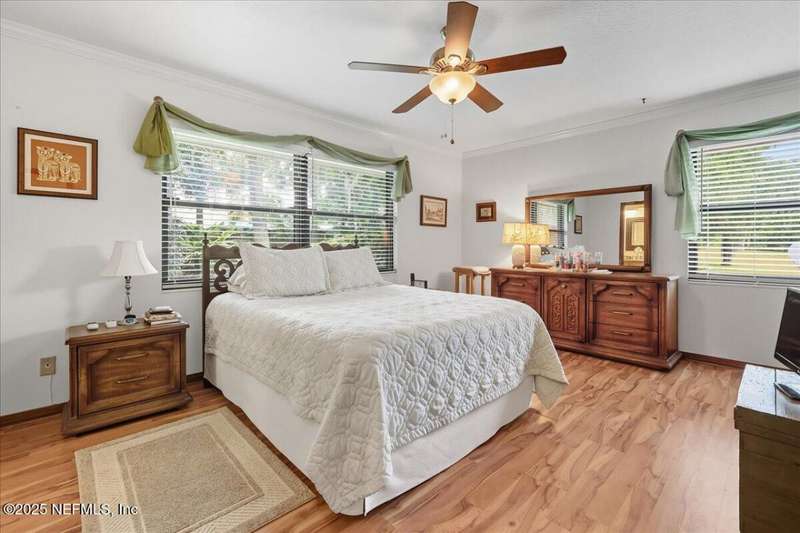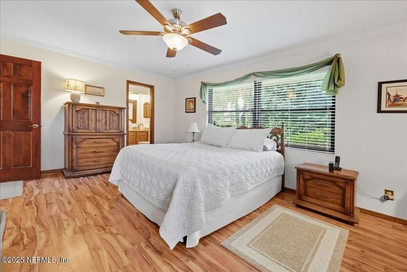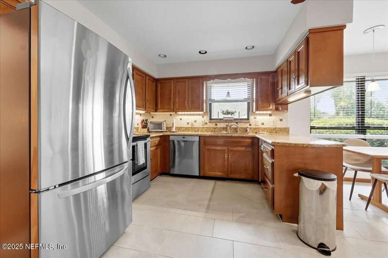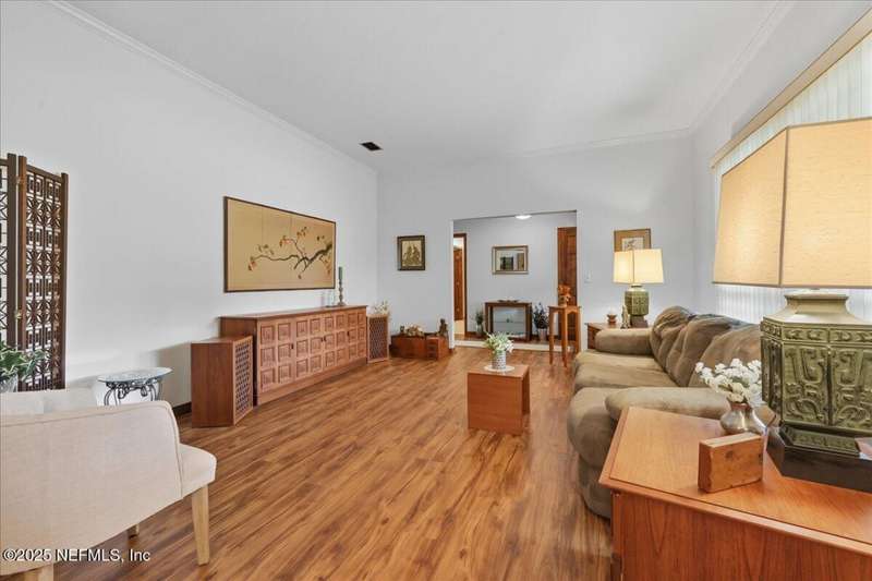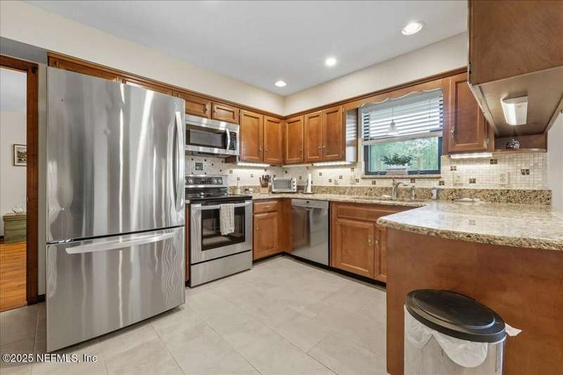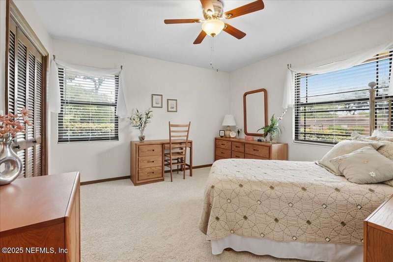 This midcentury ranch is gently loved and nicely updated. Situated on a cul-de-sac in the desirable community of Fairways Forest you are close to Downtown, Town Center, Beaches and a Public Boat Ramp. The home sits on a large lot with mature trees that can be enjoyed from your front porch or cozy patio. The home has high ceilings, Spacious Formal LIving and Dining Rooms, Updated Kitchen w/Custom Cabinets, Granite Counters, Stainless Steel Appliances Tile Backsplash, Breakfast Bar, Breakfast Nook, Powder Room and Laundry Area, There is a large Family Room w/Wood Burning Fireplace, Built-in's, Vaulted Ceilings and Tile Floors, There are 3 Spacious Secondary Bedrooms, along with a Primary Suite w/His-N-Hers Closets, Ensuite Bath w/updated Walk-in Shower & Raised Vanity, there is an oversized attached two car garage and expansive driveway for extra parking and vehicle storage. Features: HVAC 2023, WH 2021, Water Softener, All Appliances Convey, Walkable Attic Storage