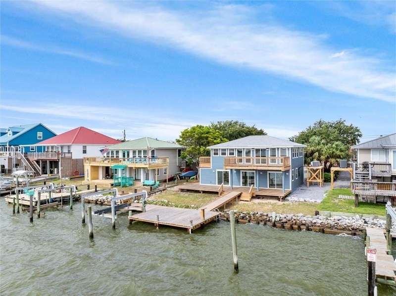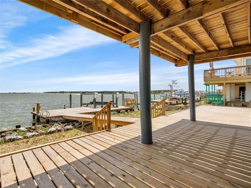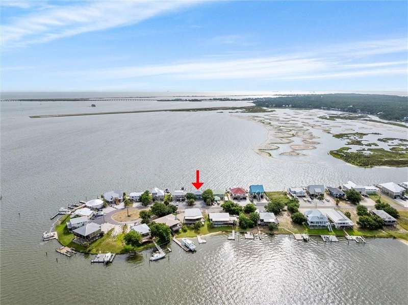 Welcome to your dream waterfront retreat! This stunning two-story, 4-bedroom, 2-bathroom home boasts unparalleled views of the Dauphin Island Bridge and Graveline Bay, offering breathtaking sunsets every evening.Perfectly positioned on the bay, the property provides incredible panoramic water views for savoring your morning coffee on the new upper deck. The upper level features numerous windows, allowing abundant natural light to flow into the home. Downstairs a spacious living/den/game room area opens directly onto the new lower deck, ideal to enjoy the waterfront amenities and lovely sights. The home has been completely updated with new Hardie-board siding with 30 year warranty, 2 new HVAC system and platform, new sliding doors, and freshly painted interiors. Additional highlights include stunning quartz countertops and all new modern appliances in the kitchen, along with fully remodeled bathrooms with new vanities, attractive tiled showers and fixtures. The prime location offers quick access to the Mississippi Sound and Gulf of Mexico, making it the perfect spot for fishing and boat lovers. The new dock is large enough for lounge chairs and a fish cleaning station for your daily catch. This property is excellent for those who want waterfront living and entertaining, with ample outdoor space and modern amenities. Don't miss the opportunity to own this incredible property with its stunning views and desirable location. Buyer or buyer's agent to verify all information, including any zoning or local regulations and deed restrictions. Listing brokerage and agent make no representation regarding the accuracy of the listing statements and description. All updates per seller.