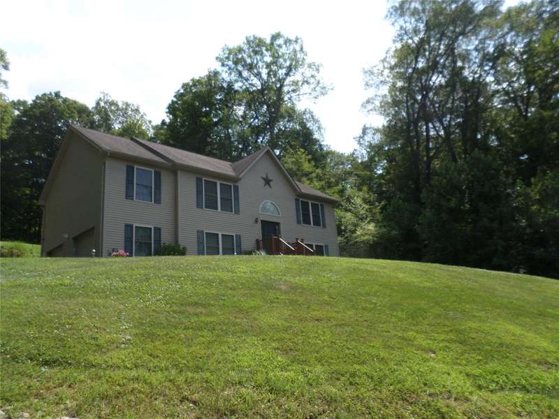 Built in 2013, move right into this newer raised ranch offering over 2000 square feet of interior space and set back on a 2.10-acres, surrounded by woods. The home features vaulted ceilings in the living room, tray ceilings in the primary bedroom with ensuite, gleaming hardwood floors, central air, wood stove and a modern kitchen with cherry cabinetry, black granite countertops, stainless steel appliances, a pantry closet and under-cabinet lighting. Smart features include a Wi-Fi thermostat, wireless ceiling fans, and LED recessed lighting The finished lower level includes a bright family room with a wood stove, a laundry area, and a lavatory. Outside, the attached two-car garage, gentle slopes and natural landscape offer both privacy and potential for outdoor enhancements. Located within the Cornwall Central School District, this home is minutes from highways, shops and restaurants, making it a well-rounded option for both comfort and lifestyle.