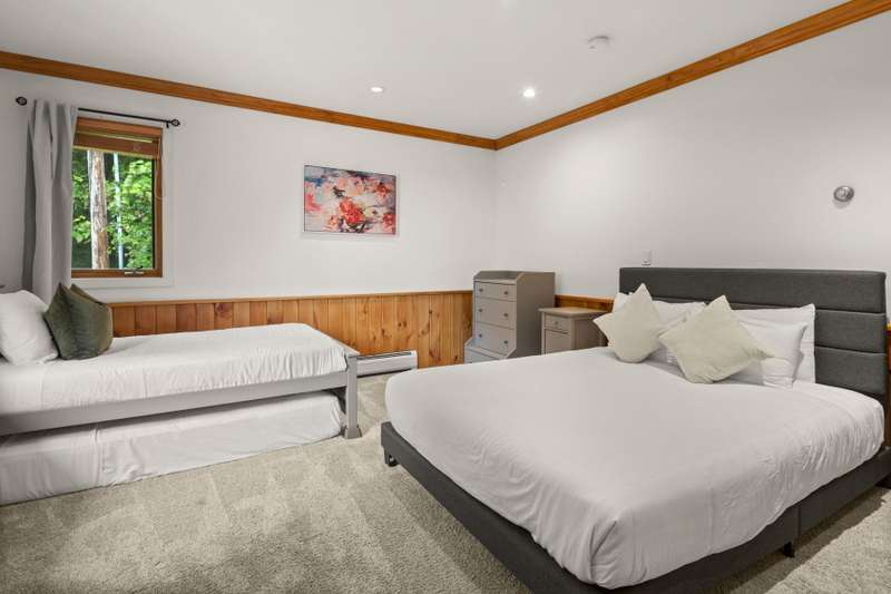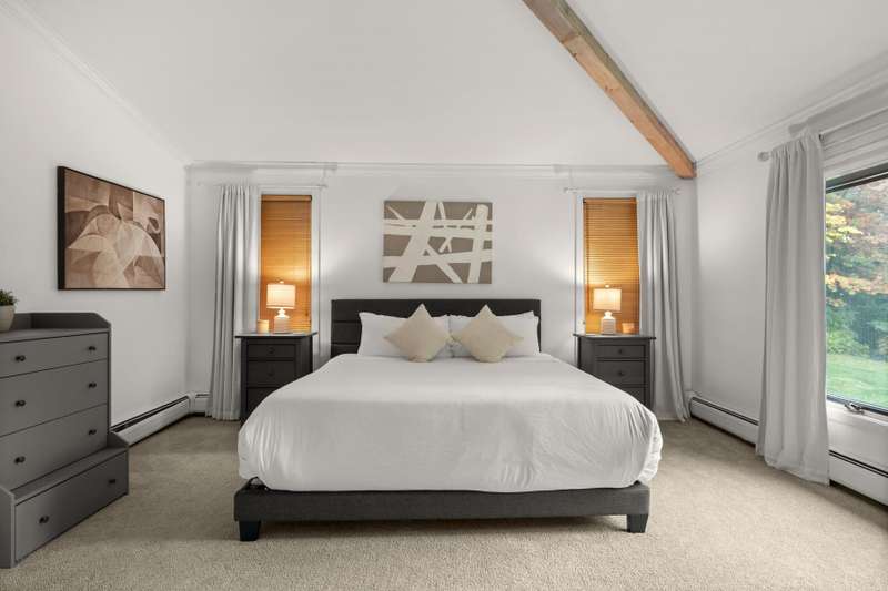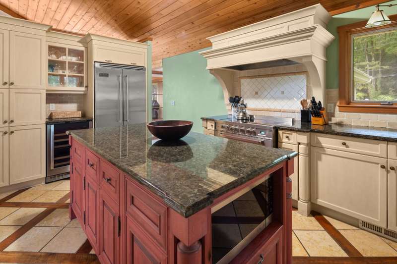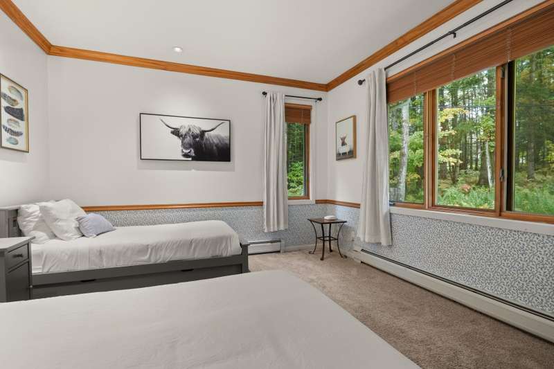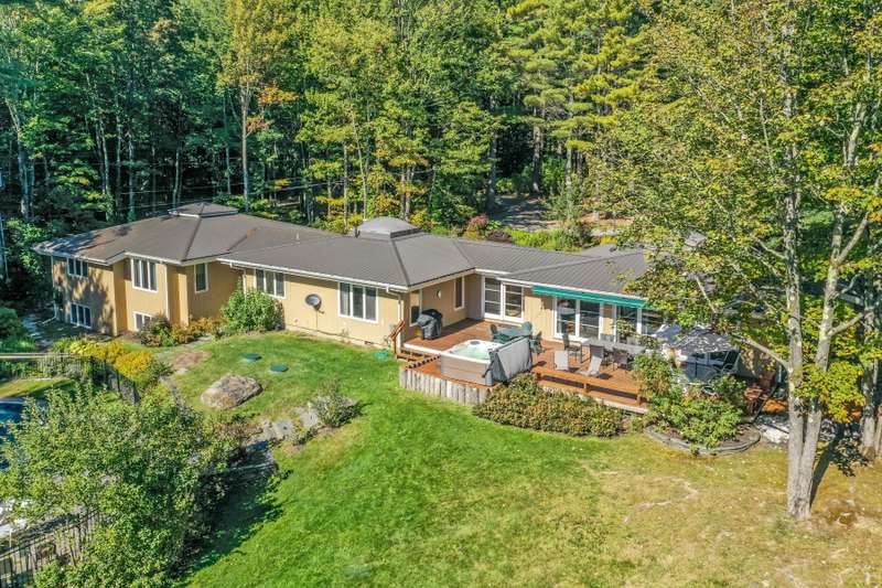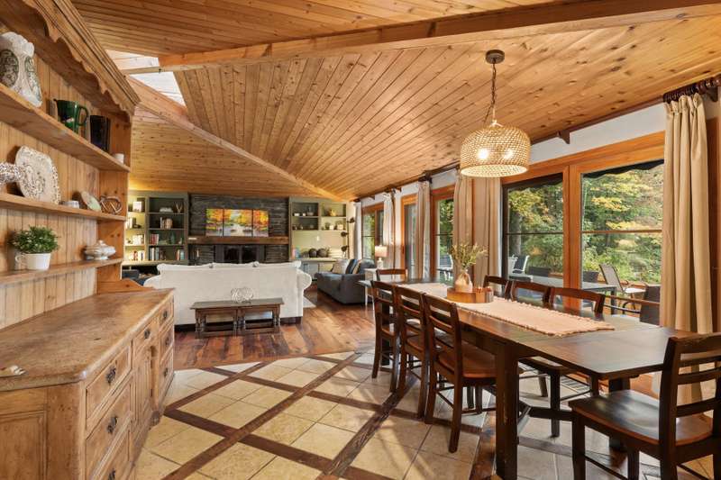 Set on over six acres of both wooded and open land, this exceptional property offers a rare combination of privacy, charm, and conveniencejust minutes from all of Stowes world-class amenities. At its heart lies a spacious home anchored by a striking stone fireplace and rich wood floors, with French doors opening to an expansive deck with a new hot tub that seamlessly blends indoor and outdoor living. Designed for gathering and entertaining, the dining area frames mountain views, while the thoughtfully planned kitchen strikes the perfect balance between privacy for cooking and connection to the main living space. Off the kitchen is an en suite bedroom while down the hall, the primary suite provides a tranquil retreat with an oversized shower and large soaking tub. In the guest wing you will find five additional bedrooms and four baths that ensure abundant accommodations for family and friends. On the lower level, a versatile entertainment areawith game room and kitchenetteoffers end