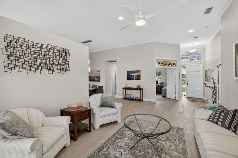Dont miss this Light, bright & tastefully updated home in the coveted Eagleton Estates neighborhood of PGA National. Features include, an open floor plan, ceramic tile floors, crown molding, impact sliders, accordion shutters, newer garage door, and a whole-house natural gas generator for peace of mind. Enjoy newer appliances, pool heater, and hot water heater. The spacious and private lanai and large pool are perfect for relaxing or entertaining. PGA National offers world-class golf and sports memberships, available but not mandatory. A beautifully upgraded home in one of Palm Beach Gardens most desirable gated communities!