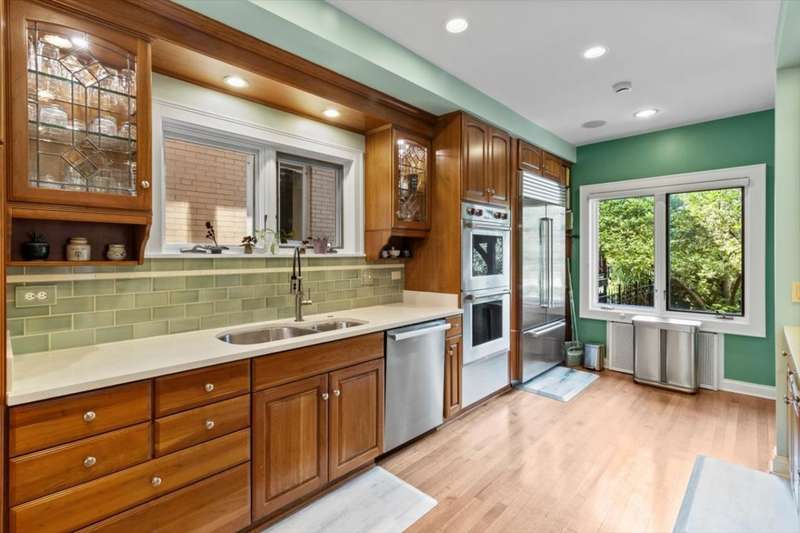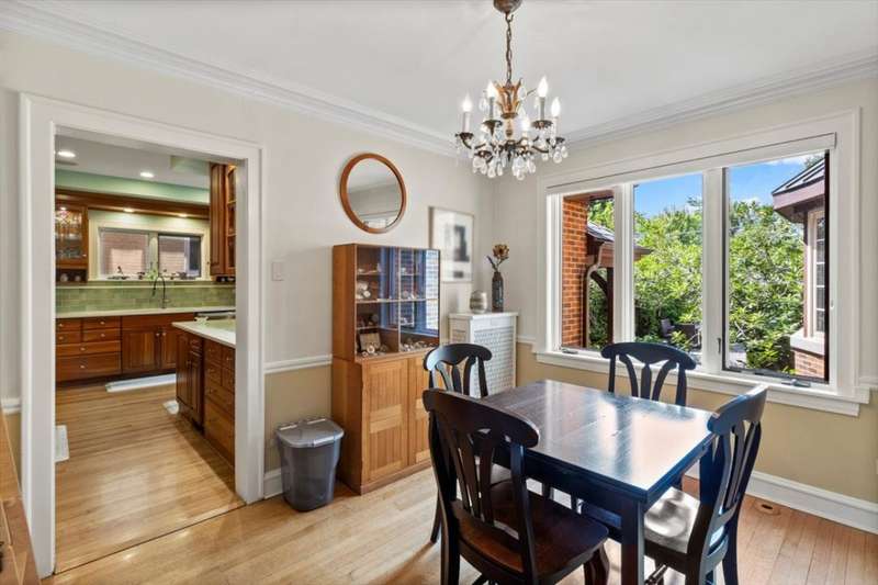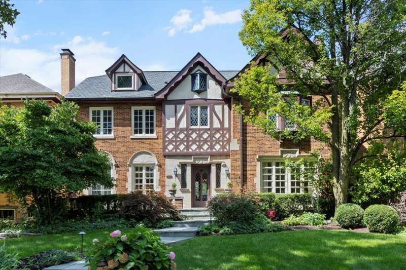 Welcome to this remarkable 4 bed, 3.2 bath Tudor featuring timeless elegance with thoughtful modern updates. Perfectly situated across from Lindberg Park and just two blocks from award-winning Mann School, this home delivers the ideal balance of luxury living and family comfort. Step inside to expansive, light-filled rooms with original chandeliers, leaded glass details, and classic moldings that highlight the home's rich character. The formal living and dining rooms are perfect for entertaining, while the Juliette windows in the dining area invite a refreshing summer breeze. The updated chef's kitchen combines function and style with quartz countertops, 42 maple cabinets with custom organizers, a Wolf range, Sub-Zero refrigerator, and Miele dishwasher. Enjoy relaxing and unwinding in the expanded family room that connects to the bluestone porch with sunshades-an inviting spot for morning coffee or evening gatherings. Upstairs, the luxurious primary wing offers a spacious bedroom, sitting area, private office, spa-like bath with soaking tub and walk-in shower, and brand-new California Closets. Additional bedrooms are generously sized, featuring hardwood floors. For convenience, laundry is located on the second floor. The finished lower level adds a versatile recreation room and ample storage, while the third floor is ready for your personal touch. Outside, the beautifully landscaped yard provides a private retreat with mature plantings, lush greenery, and ample space for play or relaxation. Recent updates ensure peace of mind, including most windows replaced in 2007, a roof just 4 years old, two new water heaters, dual-zone Nest thermostats, and Lutron lighting. Blending timeless Tudor craftsmanship with today's finest amenities, this home offers the space, style, and location families dream of-all in one of Oak Park's most desirable neighborhoods.