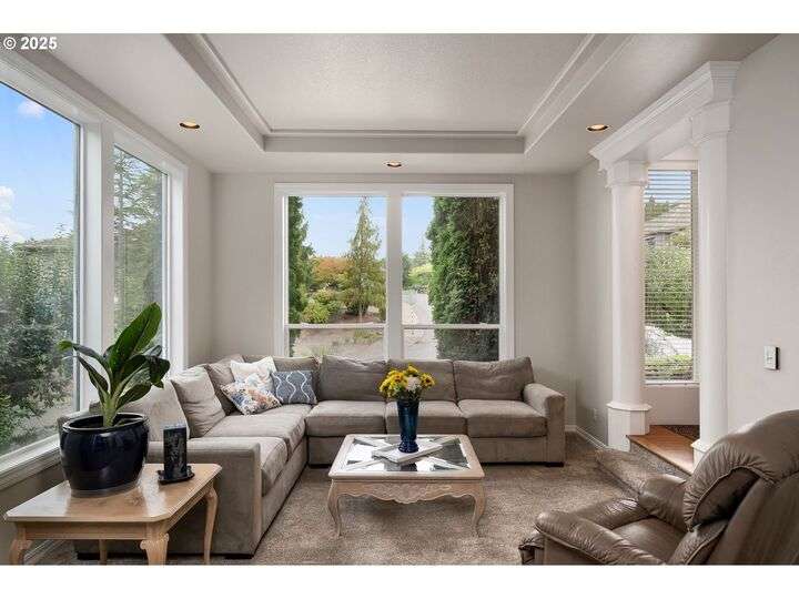 Stately brick & cedar traditional with vaulted entry and 9' ceilings. This classic design provides comfortable living with main floor living plus another huge area for entertaining or media downstairs. Formal living and dining rooms have large windows to enjoy the flowery view, and a large island kitchen with generous eating area flows to a huge deck and a family room with fireplace. Perfect mud room, and a large home office with french doors round out the main level. The primary suite is luxurious, with fireplace and bright bathroom with twin vanities and a huge skylight. Bonus room upstairs is great for exercise or play, with a laundry room attached. Two additional bedrooms and a bath round out the upstairs.In the lower level you'll find a huge party room with fireplace, bar, media set-up, deck, and spare bedroom, huge closet & bath. Plus oodles of storage! Let’s talk about the space—oh, the glorious space! There's room for separate living quarters here, with an outside entrance and room to add a mini-kitchen.This home is distinguished, yet warm - wonderful for entertaining or accommodating your brood. No HOA. Easy-care turf front & back yard. A greenspace extends down to little creek. A fabulous home for those seeing a chance to slow down, spread out, and spot a deer or visit a farm stand. On a Saturday morning, you can sip your coffee on the deck while listening to birds chirp—and by afternoon, conquer a hike on Morning Star Loop. You’ll feel very accomplished, even if you end the day with a thick shake at Sonic! The Farmer’s Market and Safeway are convenient for shopping and top notch schools are nearby.