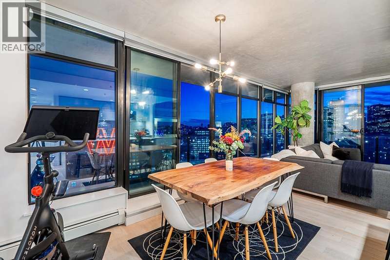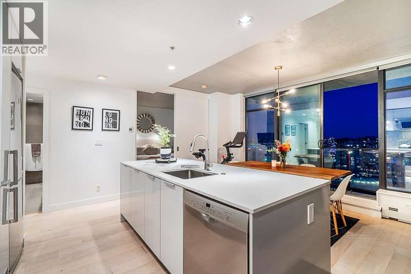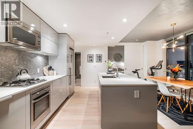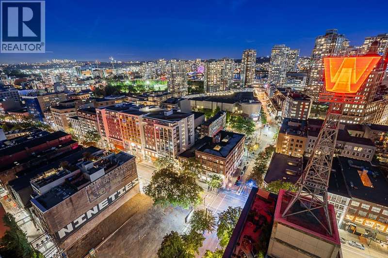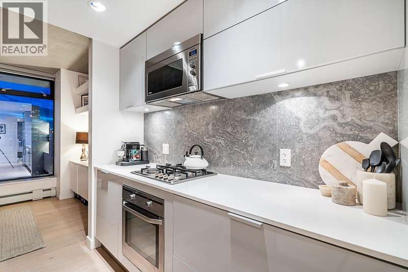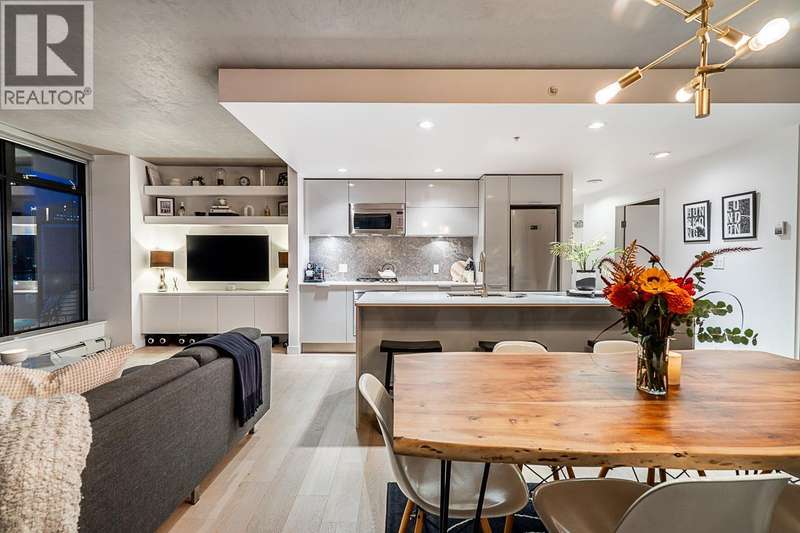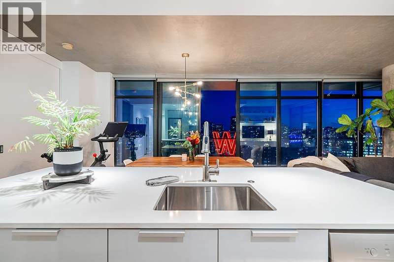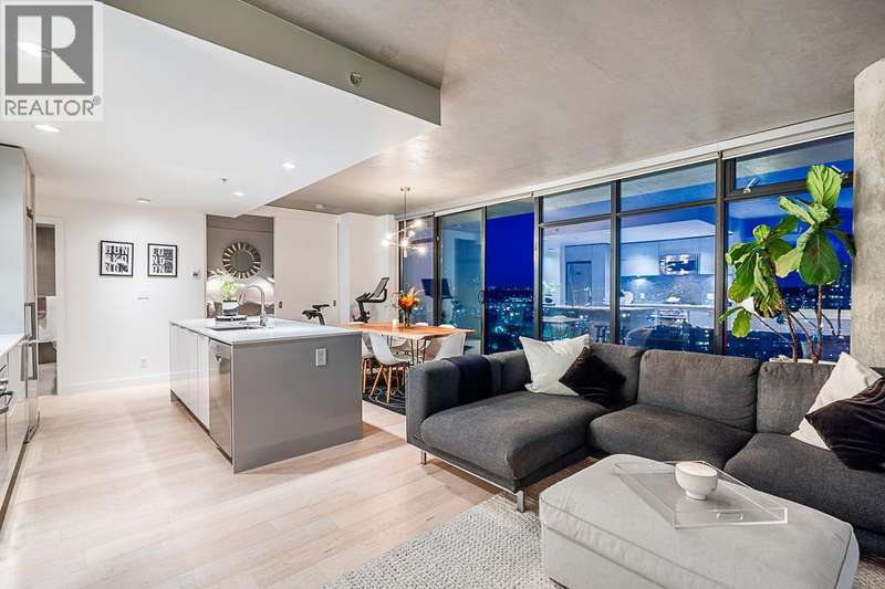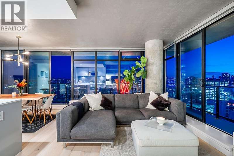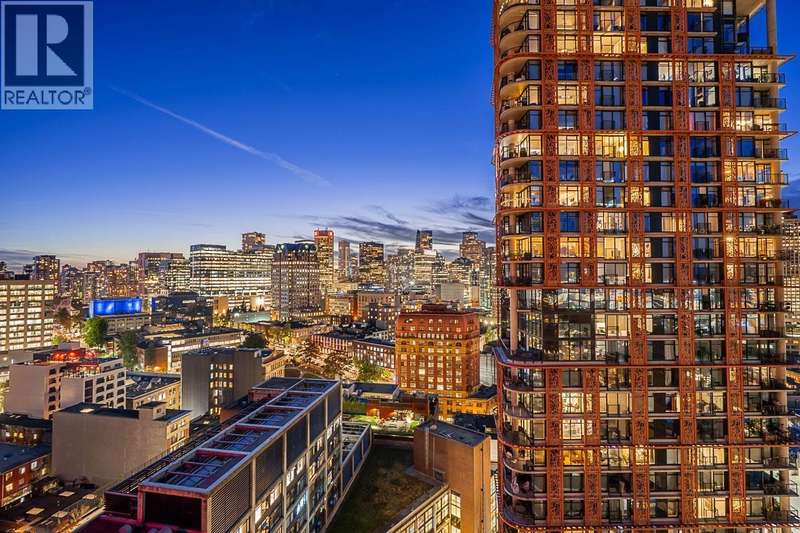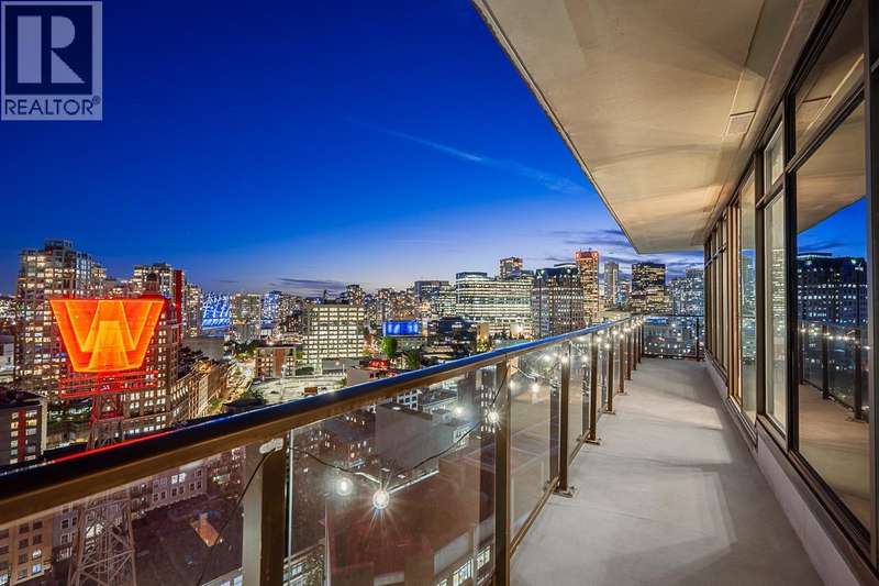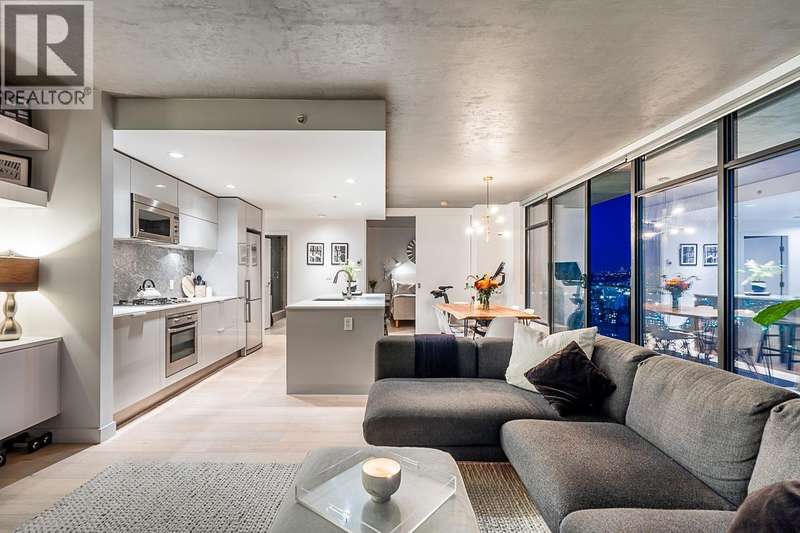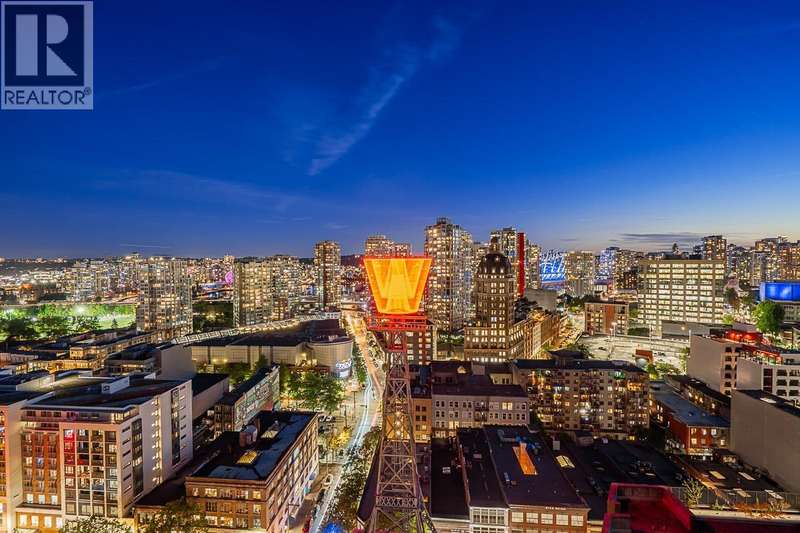 Step into one of Gastown´s hottest addresses; Woodward´s by Westbank & into a suite that´s pure modern allure. This coveted ´05 corner unit wraps you in nearly 1,000 sq/ft of elevated living, with 757 sq/ft inside & a massive 241 sq/ft. wraparound balcony that feels like your own private skylounge. Walls of glass stretch floor to ceiling, corner to corner, flooding the space with golden southern light & framing an unforgettable 270° panorama; Mount Baker at sunrise, city lights at night, Burrard Inlet & the North Shore in between. Every angle is a mood.Inside, sleek finishes meet effortless cool: Amarillo Oak hardwood floors, quartz counters, stone backsplash, custom lighting, Bauhaus sconces, built-in California closets. Don´t just live here own it. (id:58403)