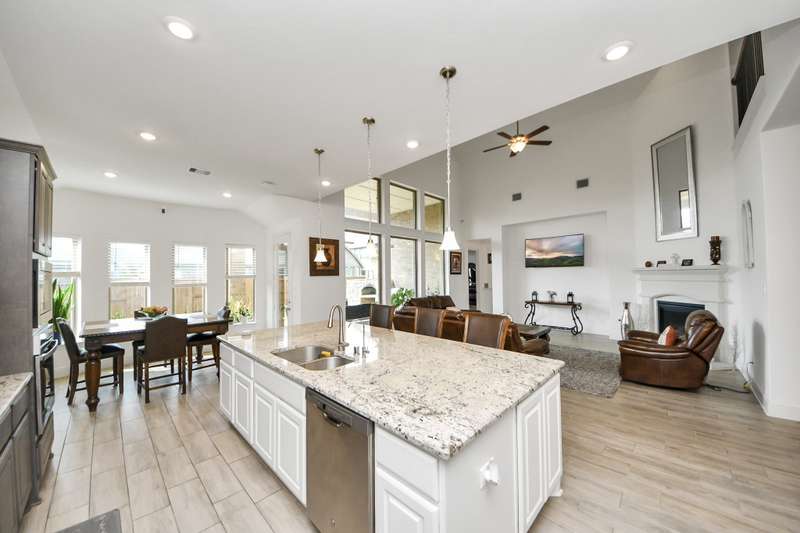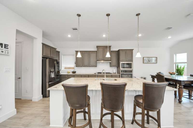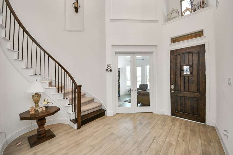 This gorgeous brick and stone home offers a stunning curb appeal. The foyer hosts a beautiful spiral staircase that is sure to impress. Continuing into the heart of the home, you are led past the dining room and wine room. The family room flows into the gourmet kitchen highlighted by a spacious island. Enjoy your morning coffee in the breakfast nook adorned with a bowed window. The master en-suite boasts a bowed window with ample natural lighting, dual vanities and two walk-in closets with access to the utility room from the closet. The mud room offers a powder bath. Secondary bedrooms and a large game room complete the second floor.