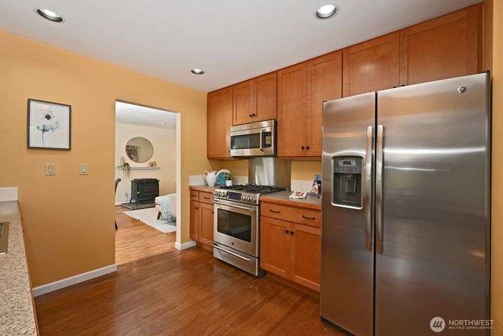 Welcome to this tranquil urban retreat, perched above street level & surrounded by mature gardens. Lovingly maintained by the same owners for 28 years, this 2BD/2BA home offers 2,105sq ft of warm, light-filled living space with hardwoods, tile & new carpet. Large windows & French doors bring in lots natural light. A flexible family room has served as both a bedroom & formal dining. The pellet stove adds cozy charm, while the oversized deck is perfect for entertaining. A fully permitted 528sq ft 1BD/1BA ADU with private entrance, parking & W/D, offers steady rental income or versatile use. Set on a lush ¼-acre lot alive with birds & butterflies, this home blends peace & privacy in a prime location. A rare find in the heart of the city.