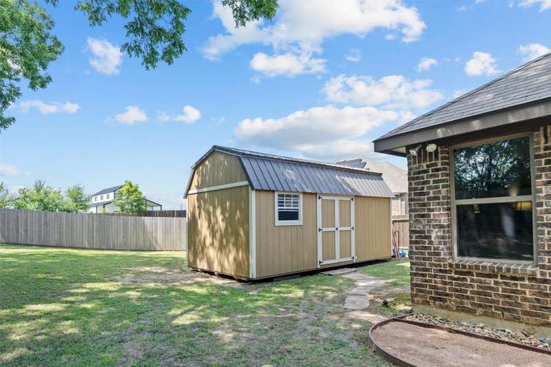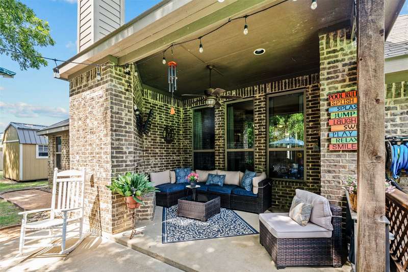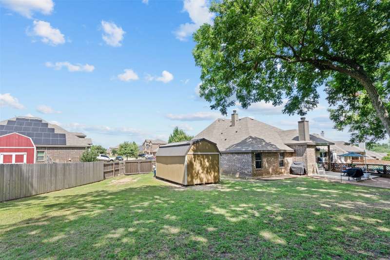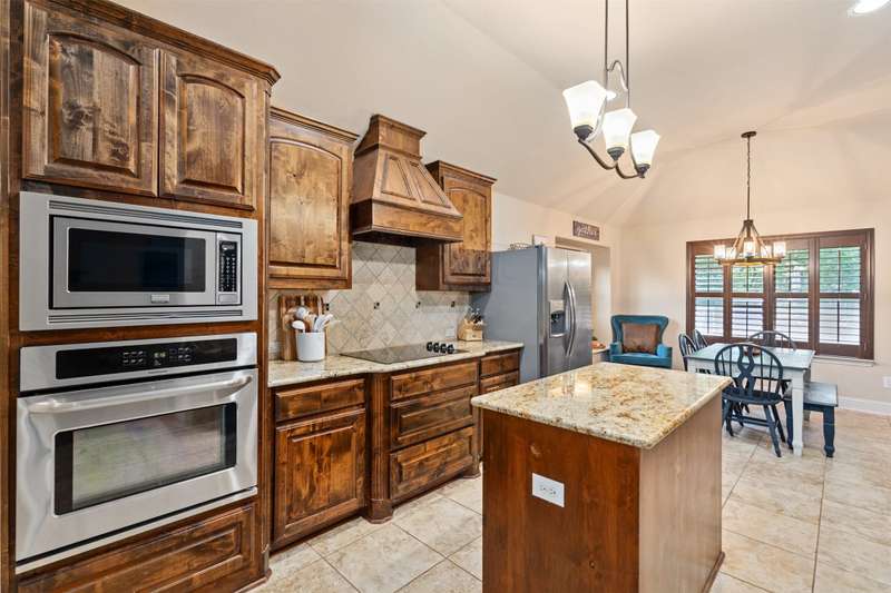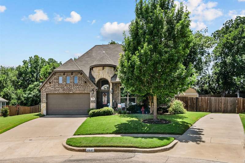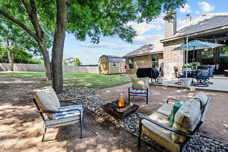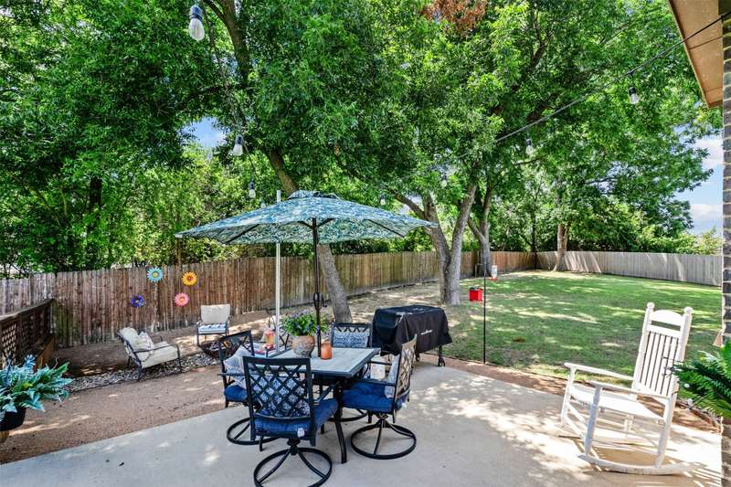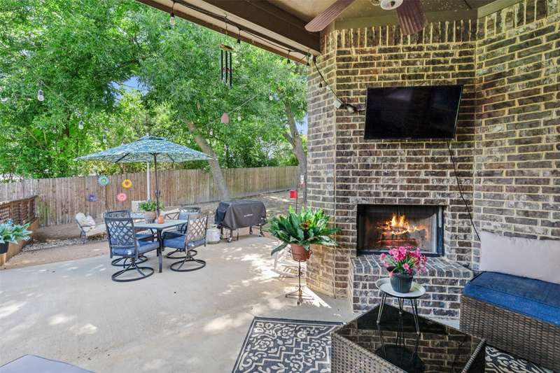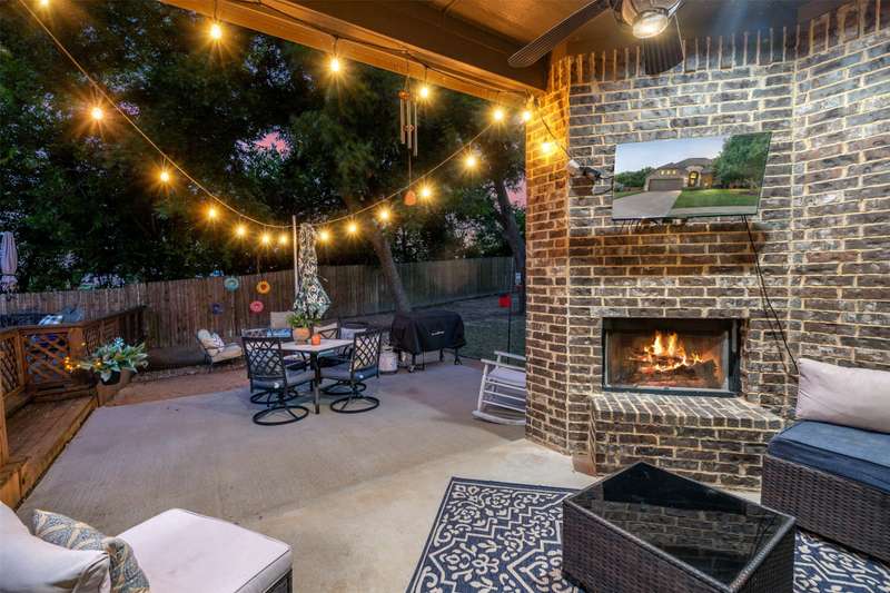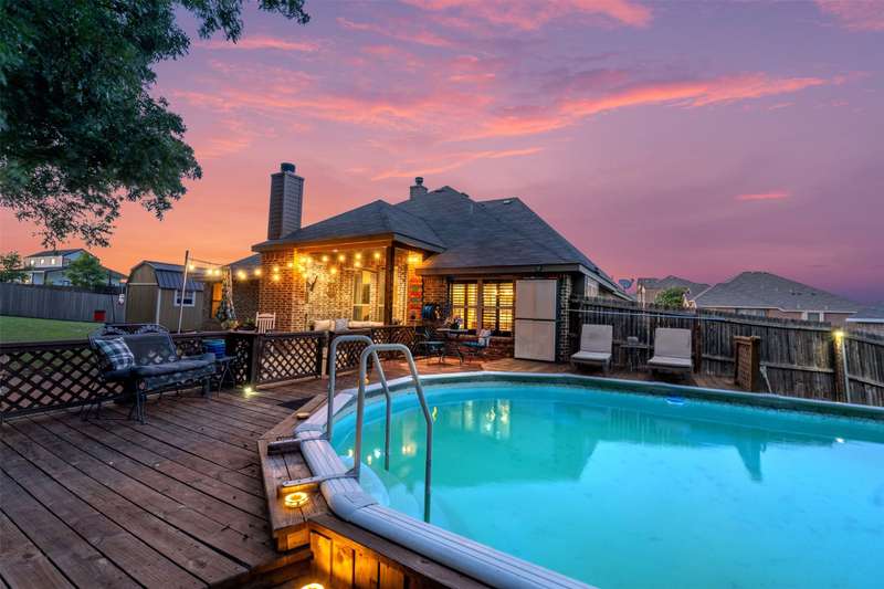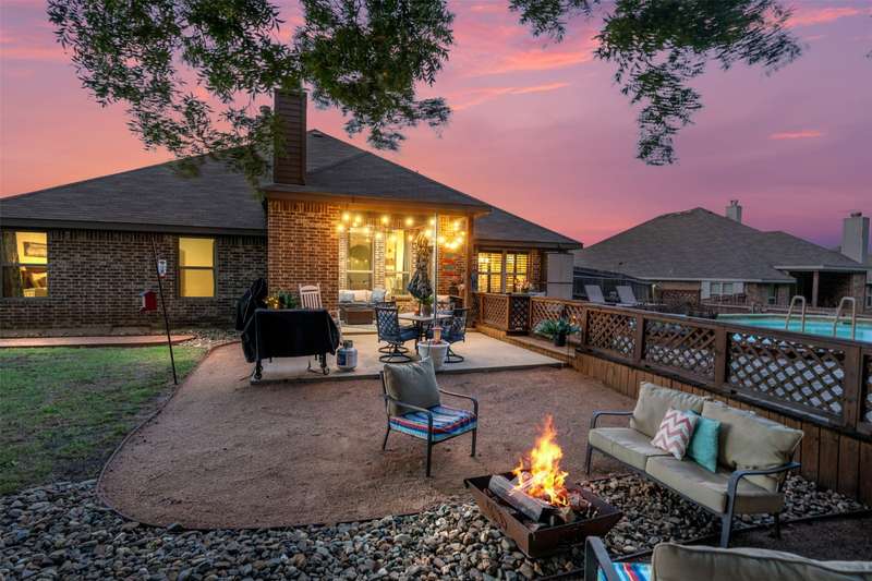 Beautiful 4-bedroom, 2-bath home situated on an oversized cul-de-sac lot offering exceptional curb appeal, mature trees, and meticulous landscaping. With over 2,000 square feet of living space, this home is designed for comfort, style, and functionality. The inviting backyard is a true retreat, featuring a covered patio with a built-in wood-burning fireplace, separate firepit area with rock-crushed granite, and an above-ground pool with expansive wood deckingperfect for entertaining or relaxing year round. Inside, you'll find elegant finishes throughout including rich hardwood floors, 18-inch ceramic tile, and a spacious living area with a stone wood-burning fireplace. The custom kitchen boasts granite countertops, a large island, custom cabinetry, oil-rubbed bronze fixtures, and beautiful wood shutters. The primary suite includes an ensuite bath with dual sinks, walk-in tiled shower, and a soaking tub. Three additional bedrooms offer great space, with one ideal for a home office. The full guest bath includes a tiled shower-tub combo.This move-in ready home offers peaceful living just far enough from the city to enjoy tranquility, yet within a short commute to Dallas. A must-see property combining space, charm, and convenience!