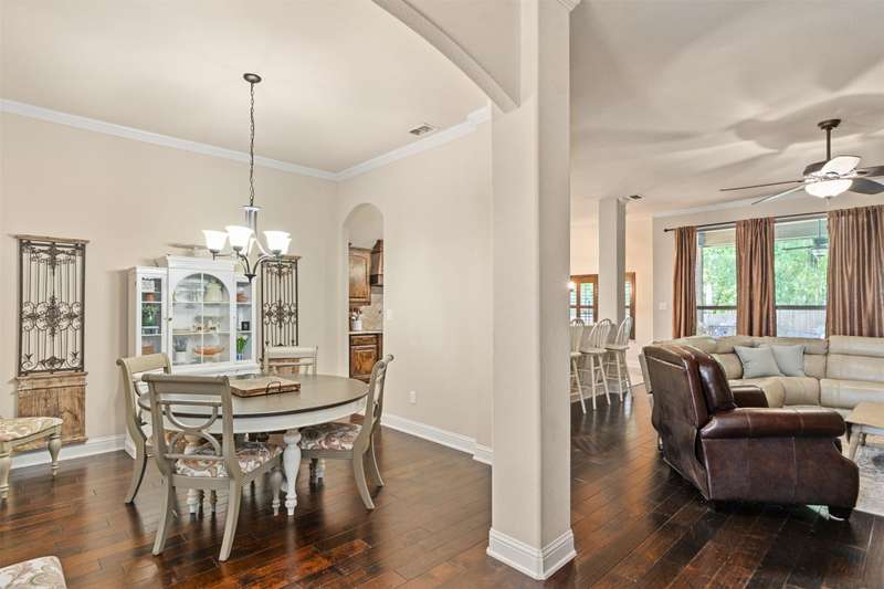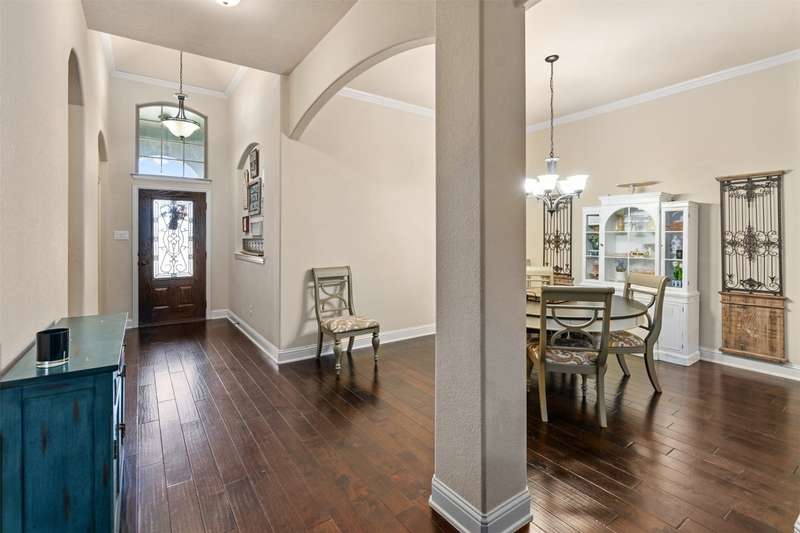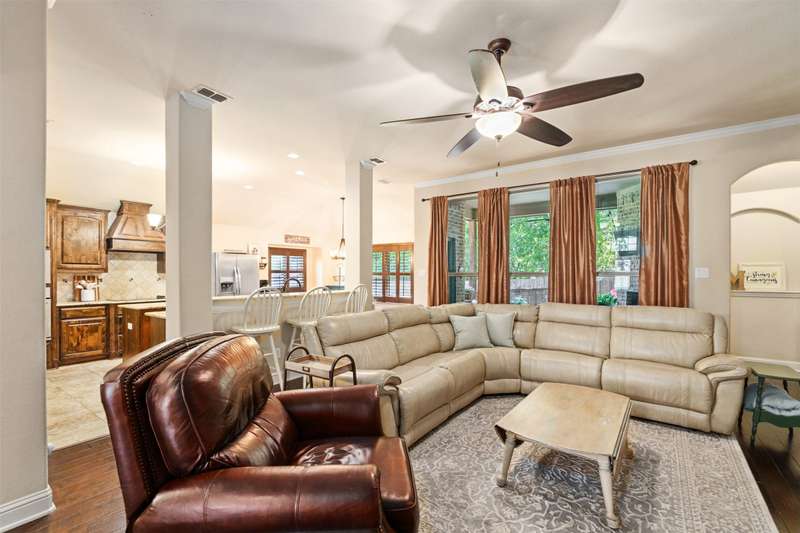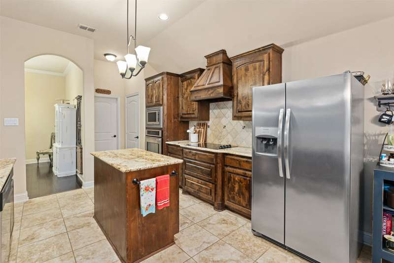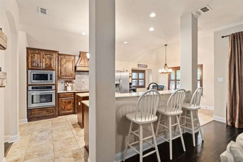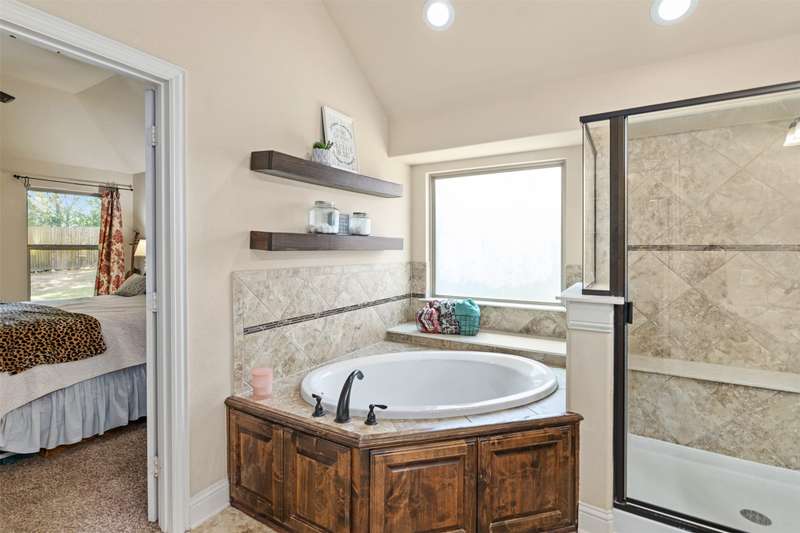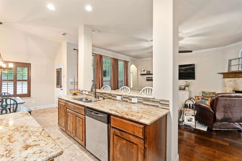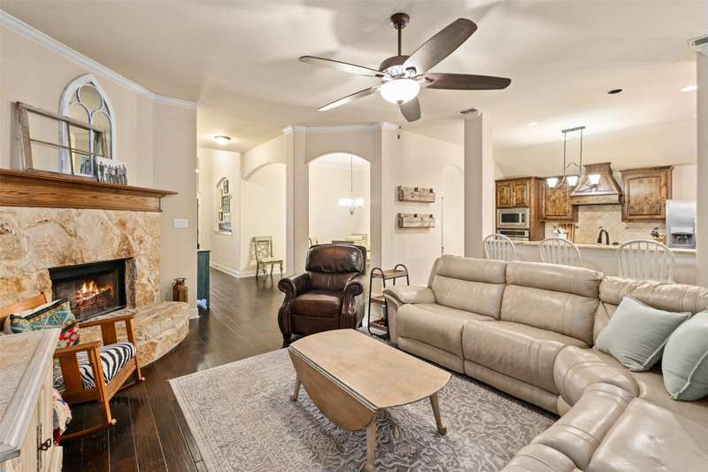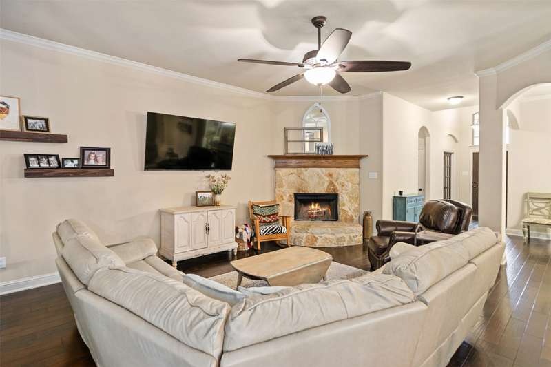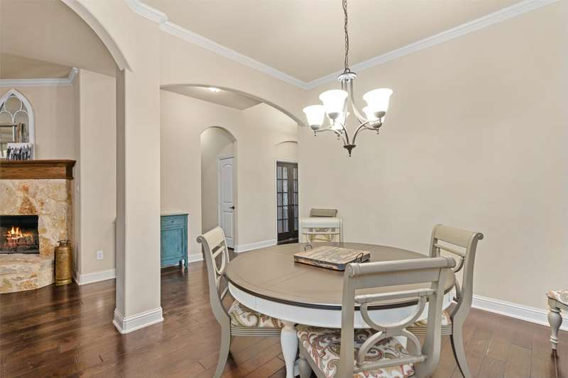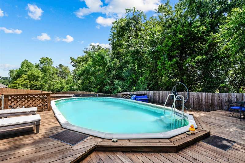 Beautiful 4-bedroom, 2-bath home situated on an oversized cul-de-sac lot offering exceptional curb appeal, mature trees, and meticulous landscaping. With over 2,000 square feet of living space, this home is designed for comfort, style, and functionality. The inviting backyard is a true retreat, featuring a covered patio with a built-in wood-burning fireplace, separate firepit area with rock-crushed granite, and an above-ground pool with expansive wood deckingperfect for entertaining or relaxing year round. Inside, you'll find elegant finishes throughout including rich hardwood floors, 18-inch ceramic tile, and a spacious living area with a stone wood-burning fireplace. The custom kitchen boasts granite countertops, a large island, custom cabinetry, oil-rubbed bronze fixtures, and beautiful wood shutters. The primary suite includes an ensuite bath with dual sinks, walk-in tiled shower, and a soaking tub. Three additional bedrooms offer great space, with one ideal for a home office. The full guest bath includes a tiled shower-tub combo.This move-in ready home offers peaceful living just far enough from the city to enjoy tranquility, yet within a short commute to Dallas. A must-see property combining space, charm, and convenience!