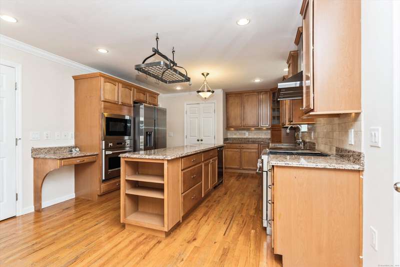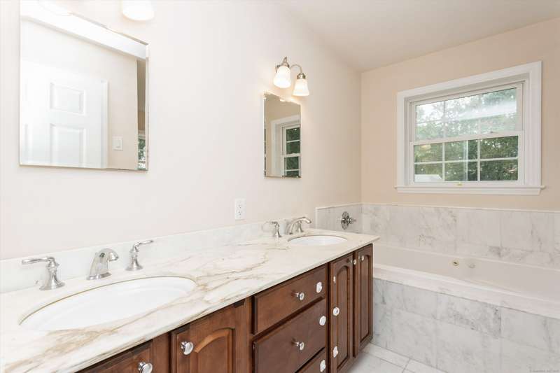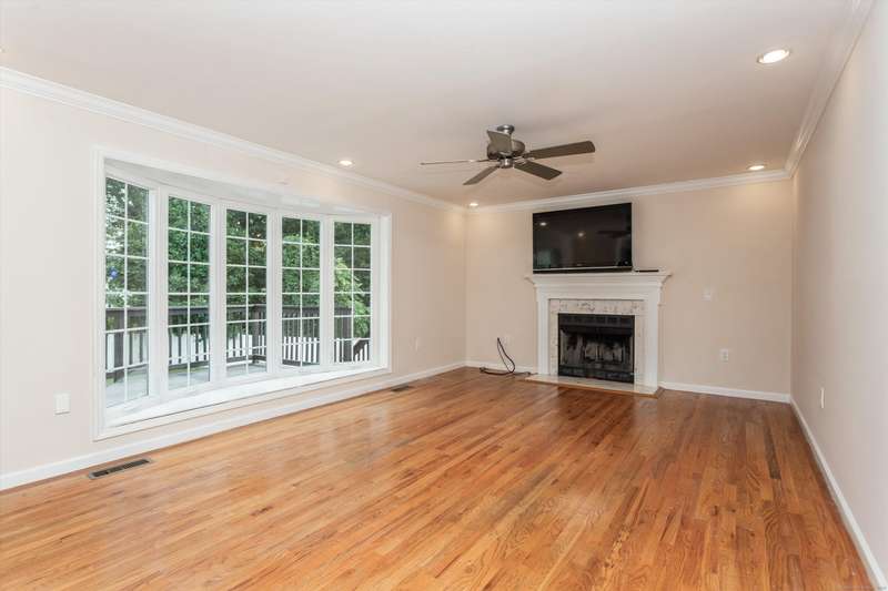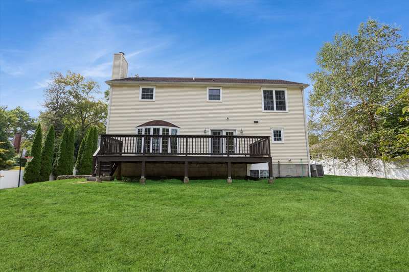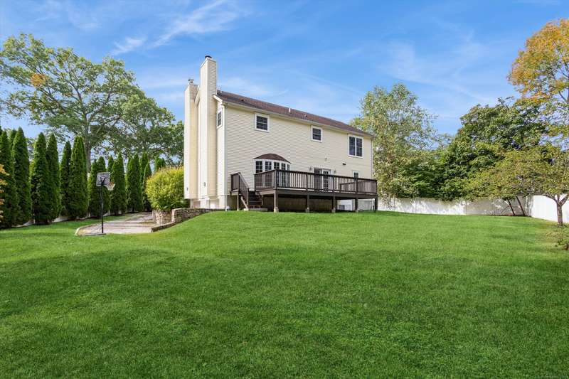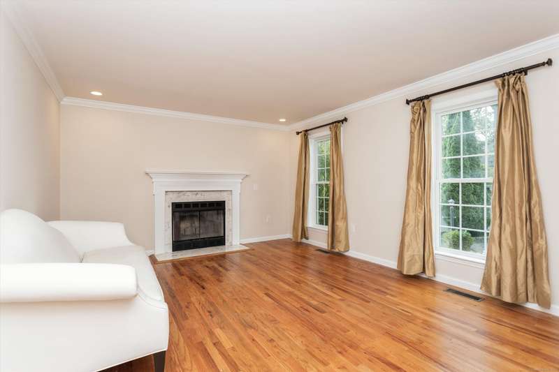 Welcome to this stunning 4-bedroom, 3.5-bath Colonial nestled on a desirable Riverside cul-de-sac. The main level boasts a spacious living room with a cozy fireplace, a formal dining room, a convenient powder room, a large family room with a second fireplace. The expansive eat-in kitchen features a center island and opens to a generous deck-perfect for entertaining and outdoor dining. Upstairs, you'll find a luxurious primary suite with a spa like bath and a gas fireplace Three additional well-sized bedrooms share a large hall bath, and a second-floor laundry room adds everyday convenience. The finished lower level offers a full bath and versatile living space ideal for a playroom, media room, or home office. A large two-car attached garage includes plenty of storage. Enjoy privacy and outdoor living in the fully fenced, oversized backyard perfect for gatherings, gardening, or simply relaxing. Pool site plans available. Enjoy all that living in Greenwich has to offer, easy NYC commute