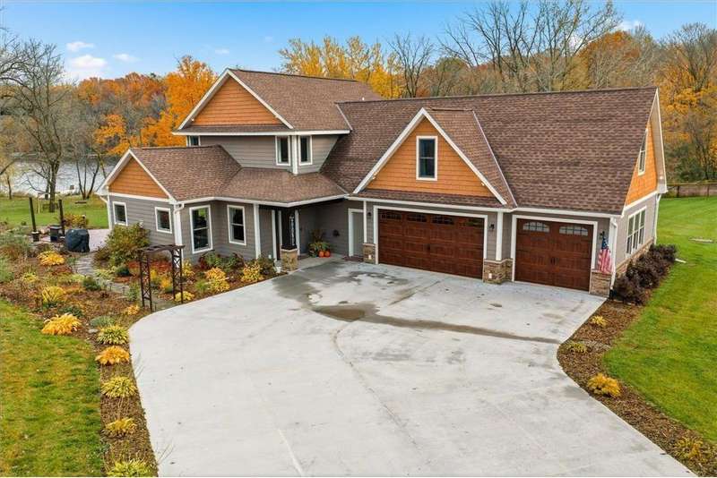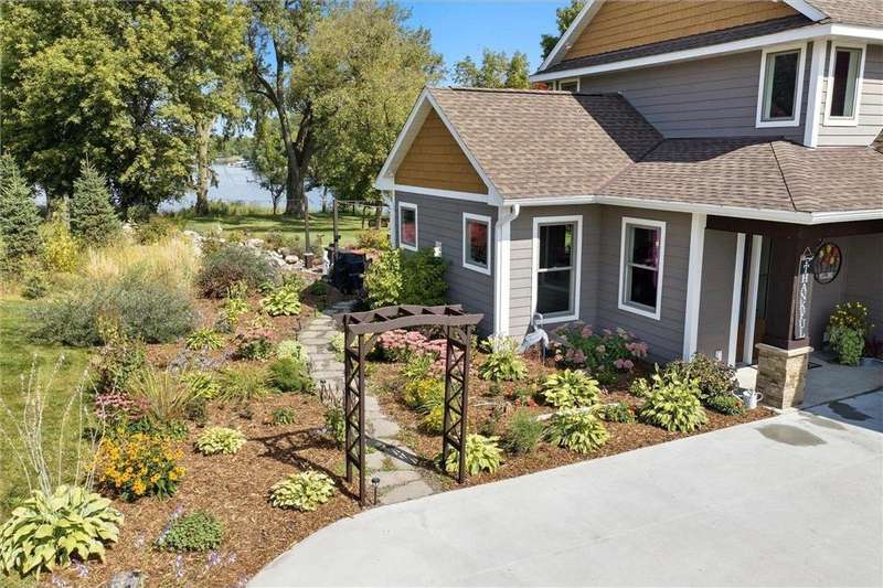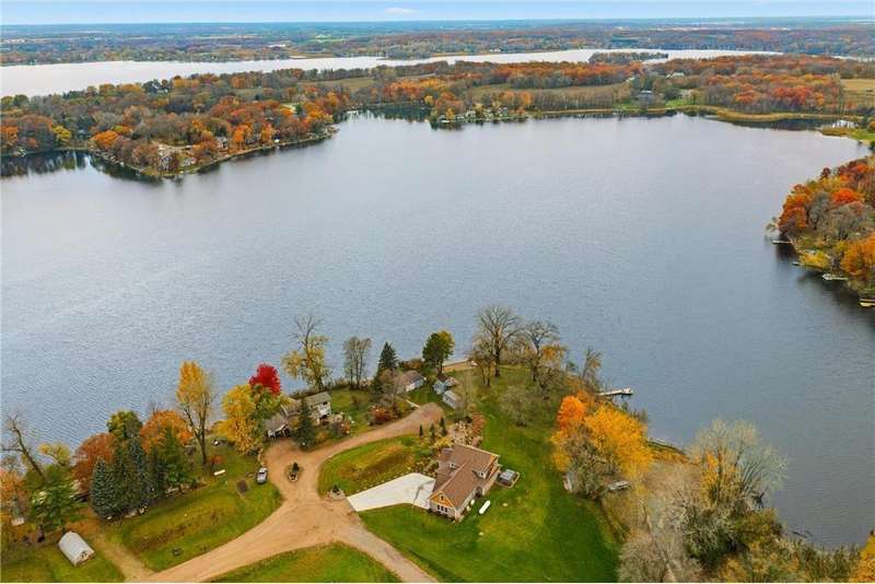Welcome to this extraordinary custom-built lake home on the shores of Indian Lake, offering 419 feet of pristine lakeshore and nearly two acres of privacy! Designed and built in 2022 by CAP Custom Homes, this beautiful home and property combines timeless craftsmanship with modern luxury. Inside, the main level is thoughtfully designed for comfort and elegance, featuring cathedral vaulted ceilings, large Marvin® windows framing sweeping lake views, and a striking gas fireplace with an 1890s reclaimed mantle. The open-concept layout includes a spacious dining area, a gourmet kitchen with Schlangen’s Custom black walnut and painted cabinetry, quartz countertops, a granite island, and professional-grade appliances including an eight-burner cooktop and Italian ILVE oven. A walk-in pantry, mudroom with lockers, and main-floor laundry with Samsung washer/dryer add convenience and functionality to the main level. The primary suite is a true retreat with lakeside views, direct patio access, and a luxury bathroom with a steam shower, double sinks, champagne gold fixtures, and a secure walk-in closet designed as a storm shelter with 9-inch concrete walls and a steel door. Step outside to the patio and enjoy the 11-person swim spa, new in 2024! Upstairs, you’ll find a cozy loft family room, two additional bedrooms, a full bath with jetted tub, and a spacious multi-purpose playroom with dual heat/air. Throughout the home, you’ll appreciate the warm LVP flooring, arched Tuscan-inspired accents, and soft-close cabinetry. This home is as functional as it is beautiful, offering in-floor heat on the main level, a whole-house water filtration system, a 22KW whole-home generator installed in 2023, and a 1,000-gallon propane tank (rented). The exterior showcases LP® SmartSide® siding and shakes, a concrete driveway, and an oversized heated/insulated three-stall garage with in-floor heat, a floor drain, and mini-split air conditioning. The outdoor setting is unmatched with professionally designed landscaping, gardens, fruit trees, pines, tranquil waterfalls, and more! The sandy beach leads to a seasonal cabin complete with a bathroom, shower, and sink, while a storage shed provides extra space for lake toys and equipment. Adding to its appeal, this home is conveniently located about 50 miles from the Twin Cities metro area. Maple Lake is only 10 minutes away and Buffalo approximately 20 minutes away, providing easy access to parks, retail, schools, and more! This Indian Lake retreat is truly one-of-a-kind as a nearly new executive lake home with timeless design, unmatched craftsmanship, and every detail carefully considered. One-year home warranty is included for added peace-of-mind!