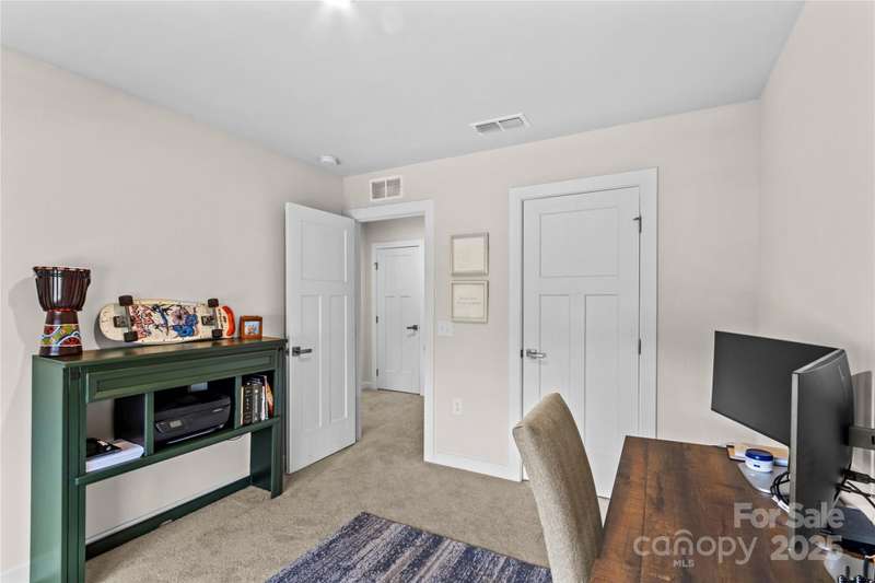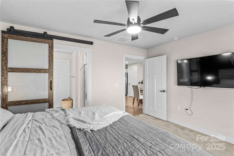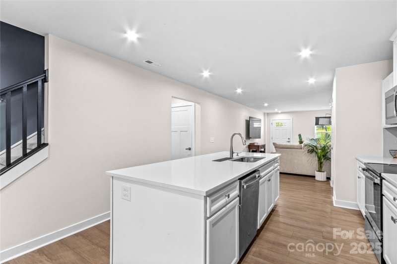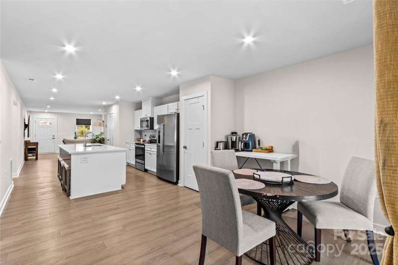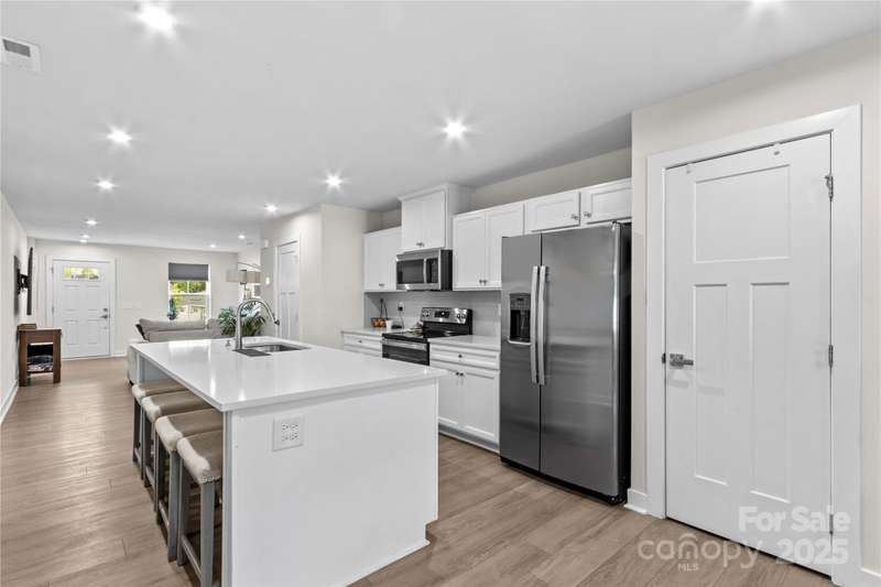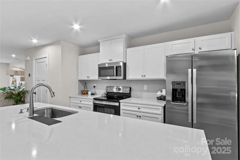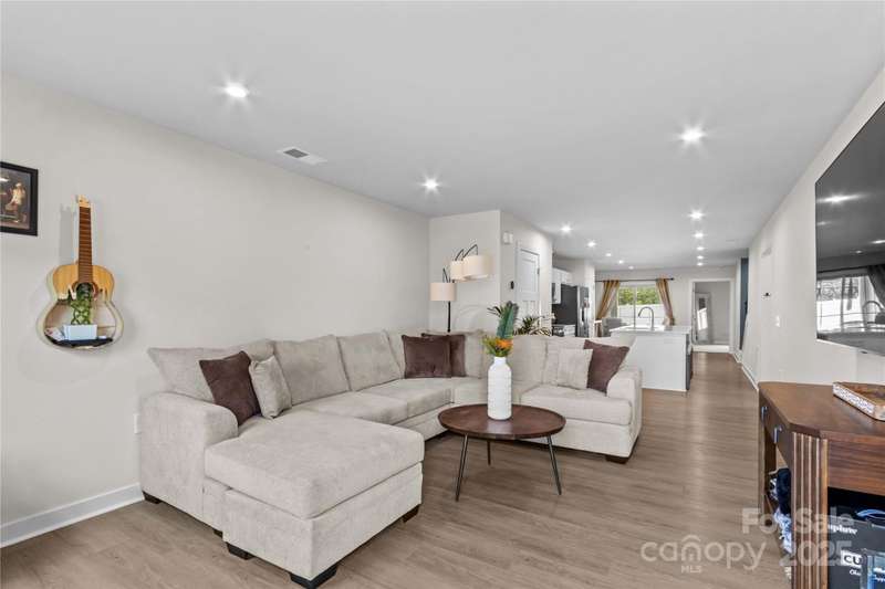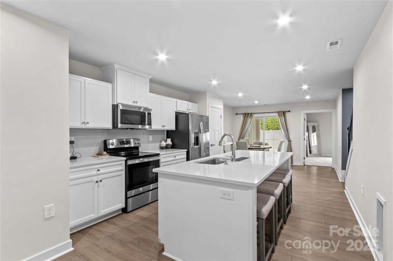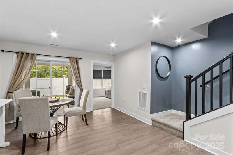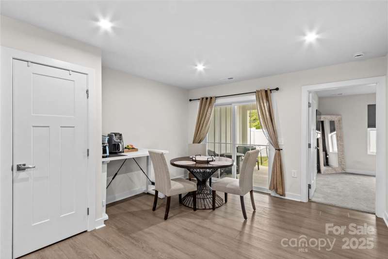 NEW Lowered Price, by $9,000! Better than New, and this Designer Townhome offers many Upgraded Features! Enter the light filled Great room and relax. All Luxury Plank Flooring throughout the Living areas. Windows with blinds give natural light. The Kitchen features quartz counters, and a large Kitchen Island. Clean, white subway Tile Backsplash and designer Cabinetry complete the look. All Stainless Appliances convey, including the Stainless Refrigerator. Washer and Dryer may be negotiable, if interested. Move through the Kitchen to the Dining area. A coveted Enclosed Patio is a 10K Upgrade, found here. Relax and watch TV on the enclosed Patio on starry evenings. The spacious Primary Bedroom and en suite Bath are on the Main Level! The Double sink Vanity is a thoughtful touch, as is the Walk in Tiled Glass Shower. Upstairs, there are two additional Bedrooms, and a second Full Bath. There's a walk in Attic for excellent storage space, and a Utility closet for easy access. A Must See!