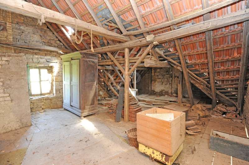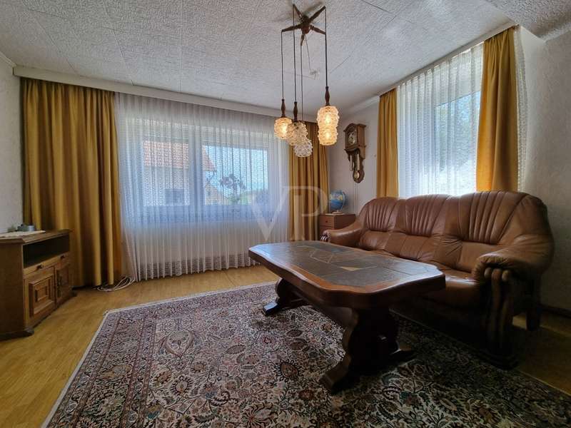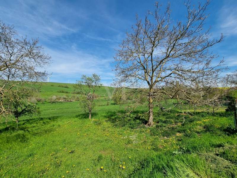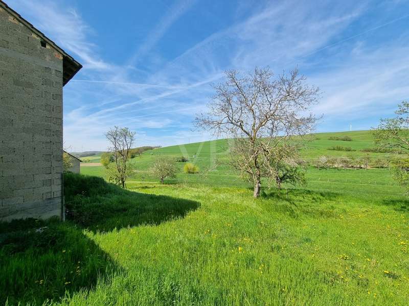 Live your dream in this beautiful property! Even the first impression of the large yard is more than inviting. Upon entering the residence, you will be greeted by a hallway with stairs leading to the attic. On the first floor, a living room awaits you, as well as a kitchen and dining room, a storage room, a bathroom with tub and shower, as well as a bedroom. In the attic there is another bedroom and an approx. 70 m² large attic which can be ideally used as a development reserve. In the whole house large plastic windows were installed, which realize a beautiful light influx. There is also a single garage and a double garage, as well as numerous parking spaces. A meadow property with a considerable size of about 24,224 m² can be leased to this great offer. This former farm offers with approx. 110 m² living space, an expandable attic with approx. 70 m², three outbuildings with a total of approx. 400 m² floor space, an old forge, barn and stable, as well as a second barn, from the year 1960 with approx. 260 m² floor space, plenty of space for your whole family. Whether for working from home, guest room, horse lover or even as a multi-generational house, there are no limits to the variety. The house was built in 1880 on a beautiful 5.396 m² large property and renovated in 1969. It has a cellar. It has four rooms and a bathroom. In 1990 all windows were renewed. In the annex directly to the residential house, there is an old forge from which you can get into the large garden with a wonderful view and meadow landscape. Adjacent to this you get into the former stable, as well as a barn. Via a staircase in the former cowshed you reach a large hayloft. Another detached large barn offers you incredible possibilities for your living space, work, vehicle fleet or your animal husbandry implement. The gas central heating is in operation since 2005. It is a rare property that offers you pure quality of life, exactly where others go on vacation. Do not hesitate, let yourself be convinced of the many possibilities of this property during a viewing. We are looking forward to your inquiry.