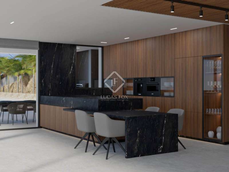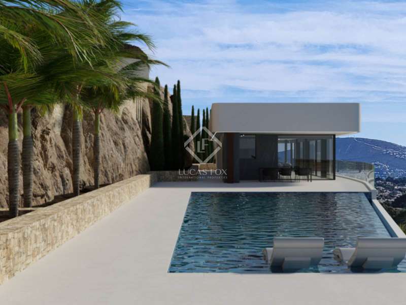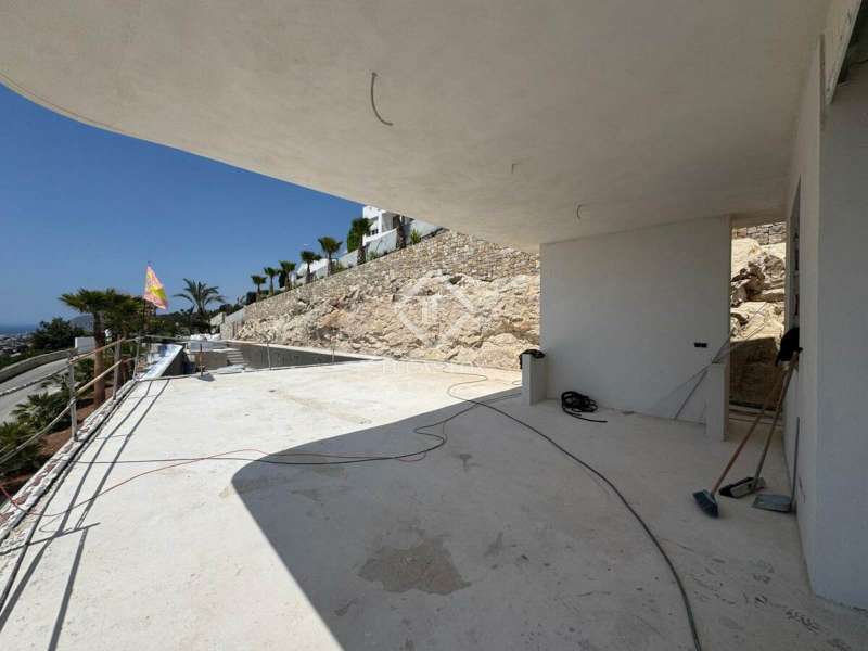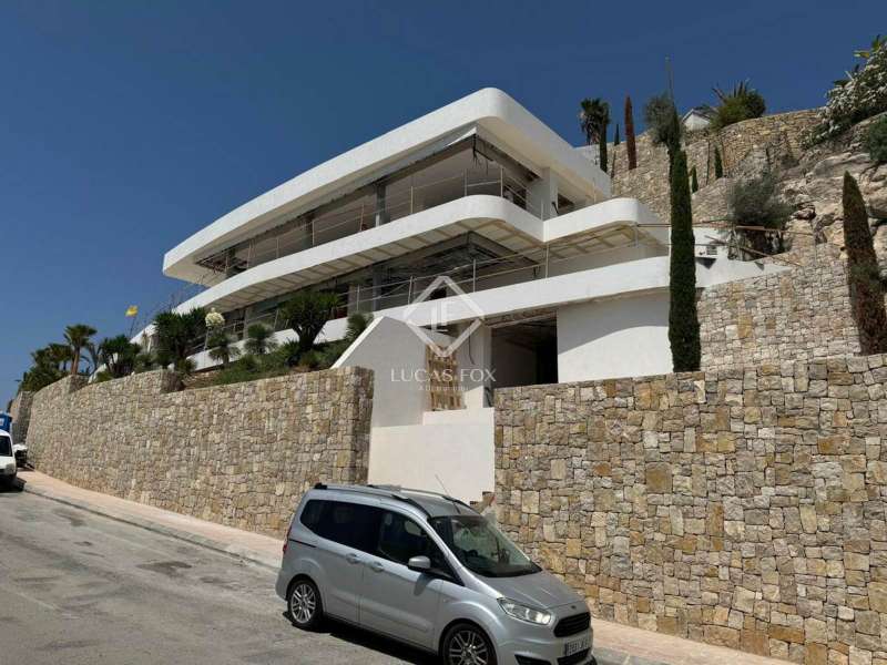 This stunning villa in Benissa (Costa Blanca) offers breathtaking panoramic views of the bay of Calpe and the iconic Peñon de Ifach. Its exquisite design and meticulous finishes make it appear as if the structure seamlessly merges with the hillside. The use of state-of-the-art materials and our construction experience ensure that this masterpiece meets the highest standards of quality. The extensive use of glass allows for an abundance of natural light. This transparency creates a serene atmosphere, as the boundaries between the home and its natural surroundings dissolve. Each room offers uninterrupted views of the coast and the Mediterranean sea, making nature an integral part of the living experience. This architectural masterpiece showcases modern forms that seamlessly blend with the surrounding terrain and nature. The structure's majestic long lines create a sense of harmony and flow, drawing the eye along its sleek contours. Natural stone elements add a touch of organic elegance, grounding the modern design in its environment. These materials not only provide a timeless aesthetic but also ensure the home harmonizes with the landscape. The villa boasts perfect south-facing orientation that floods the interiors with natural light and provides magnificent panoramic coastal vistas. The views are unparalleled. Wherever you look, the serene sea and majestic mountain vistas will immerse you in a haven of sensations. Completion by early 2025. If you gaze to the east, you'll be greeted by the stunning hues of the Moraira coast. To the west, the sight of Calpe and the magnificent Peñon bathed in the beautiful red colors of dusk awaits you. The neighborhood is quiet and exclusive, featuring residents from Germany, Belgium, Spain, and other Northern European countries.