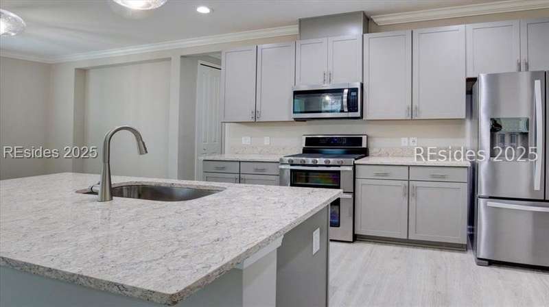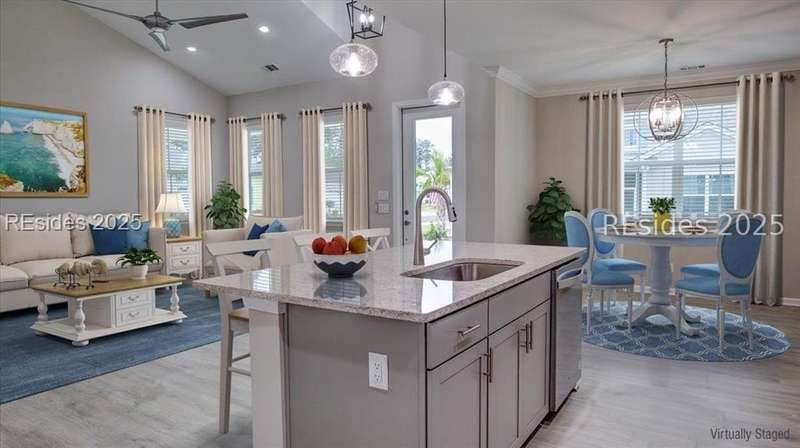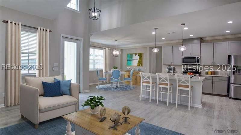 BEST DEAL IN MARGARITAVILLE! Soothing Neutral tones! NEWLY SCREEN PORCH! Popular 2023 "DREAMSICLE Model" Margaritaville cottage on an outside lot w/ green space! Desirable phase 5 location facility!! A short golf cart ride to both the town center and the lake house! A wrap around porch too! Cottage style home w/ many upgrades! Crown molding, natural gas range, refrigerator, Washer and Dryer included- a convenient plus! Elegant 8' doors & 42" soft close cabinets! Upgraded tile & hard surface floors throughout. Quartz countertops! Recessed lights! Exterior painting, landscaping, grass & irrigation included. Wonderful neighbors! Enjoy a vibrant 55+ community w/ a variety of activities & clubs. Experience a "vacation resort lifestyle" everyday.