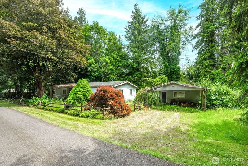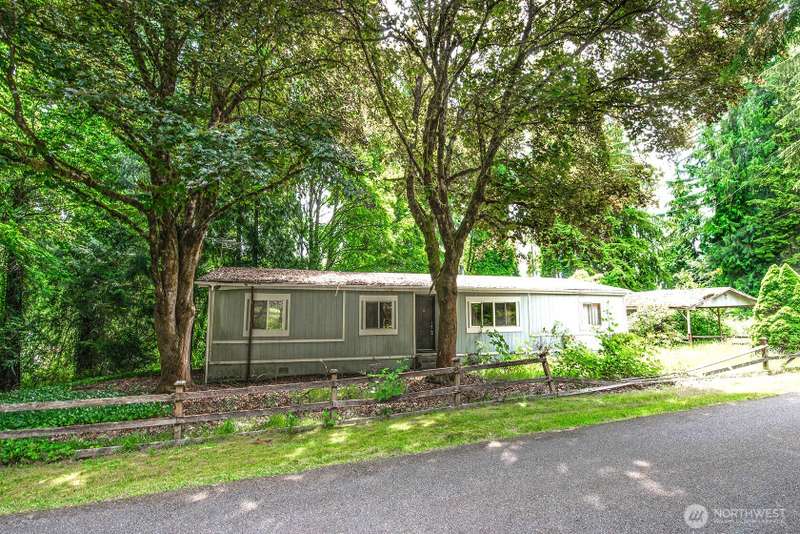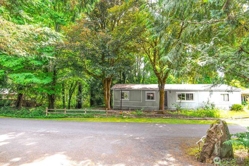 Quiet and private, yet close to town and top-rated schools. This 0.97-acre lot sits at the end of a dead-end street and includes a 1,720 sq ft manufactured home. Options abound, remove the existing home and build new, or renovate the current residence. It’s a great opportunity for a fix-and-flip, investment, or creating your own private retreat.The home features an en-suite primary bedroom, two spacious additional bedrooms, an open kitchen and dining area, and a large family room with vaulted ceilings. Conveniently located just minutes from Mill Creek, Bothell, and Woodinville, and within the highly sought-after Northshore School District. Ruby Bridges Elementary is just blocks away, and North Creek High School is a short drive. Sold as-is.