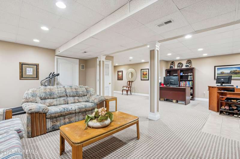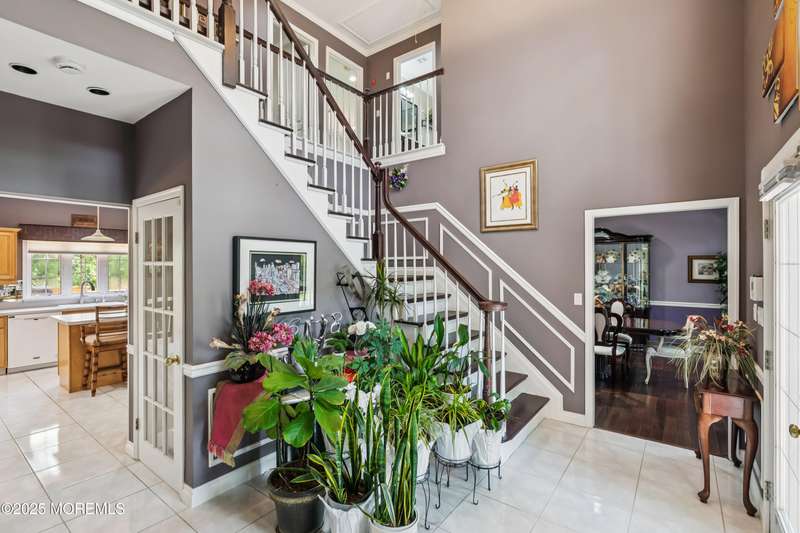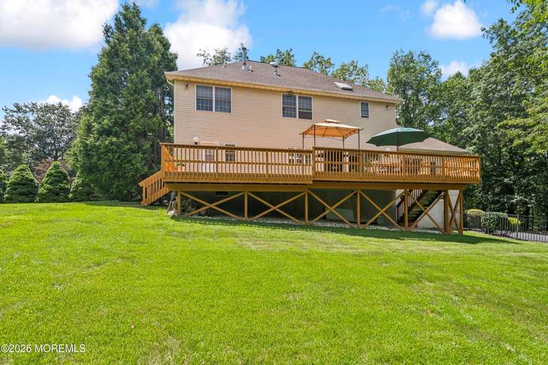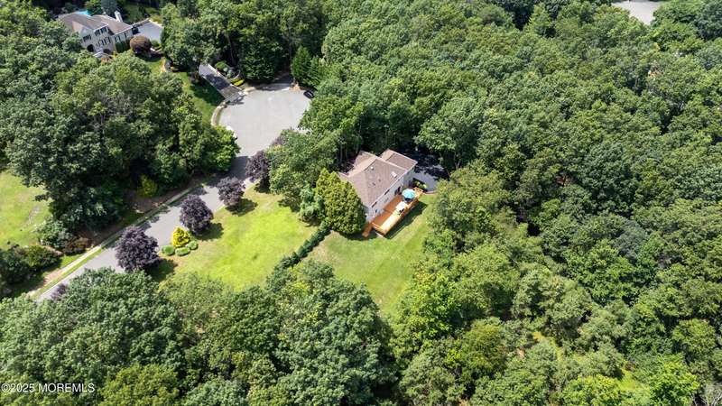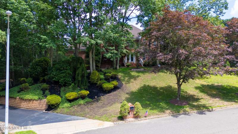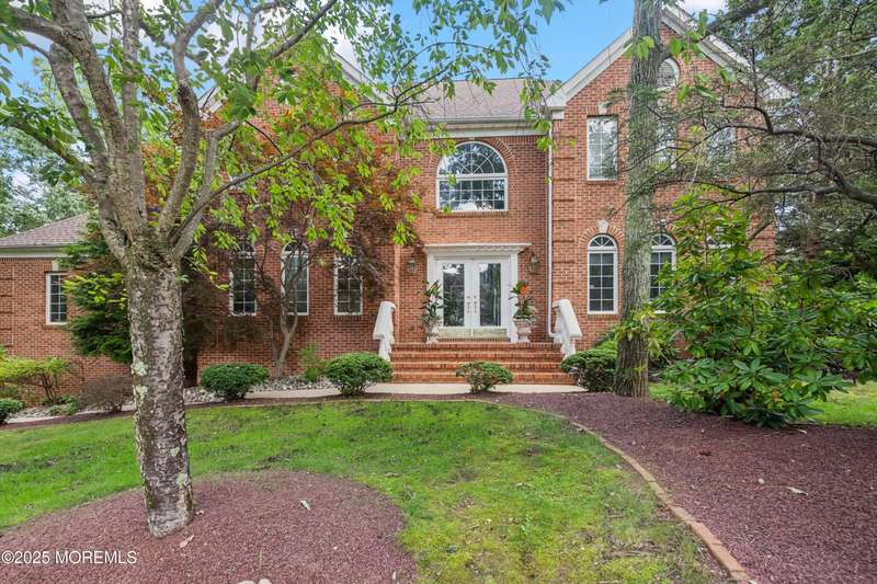 Beautiful full brick front center hall colonial located on a cul-de-sac, private lot, and professionally landscaped. Two story foyer and 9' ceilings on the first floor. Huge kitchen with maple cabinets, center island, and energy saving appliances. Spacious sunken great room with marble gas fireplace. Primary bedroom has sitting area, walk in closet and updated full bath with walk in shower and freestanding tub. All the bedrooms are good size with abundant closet space. Updated main bathroom. Full finished basement with storage area and half bathroom. 44x 13 deck that overlooks the private backyard. Roof replaced 12/2023. All this in a beautiful private development. Home Warranty included!