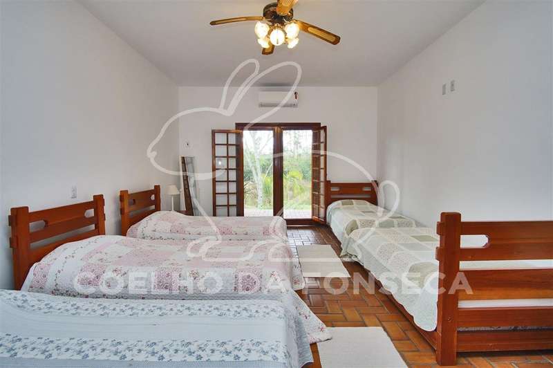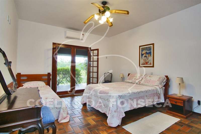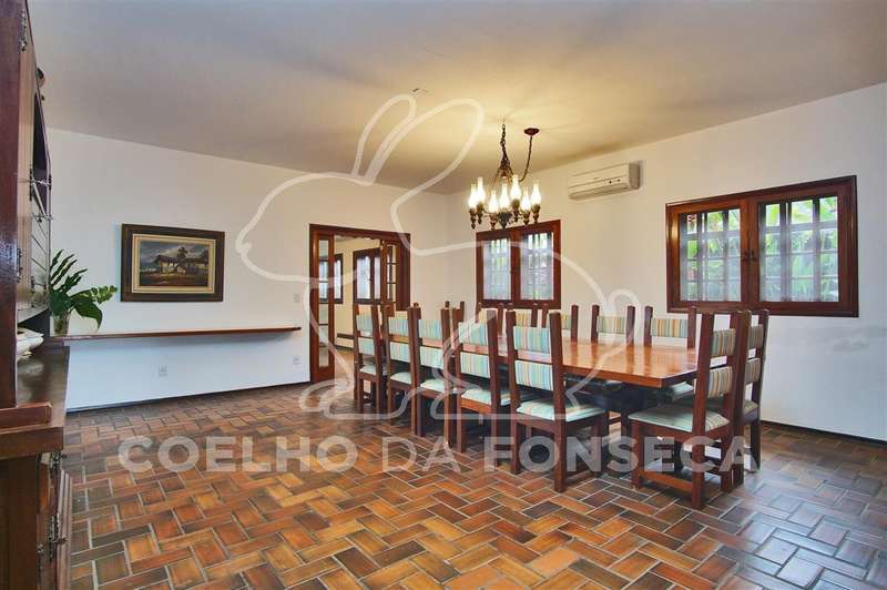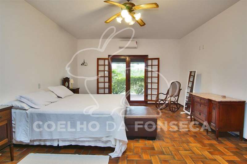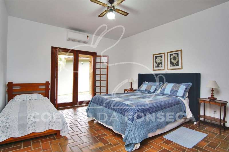 Casa principal com 6 suítes (todas com ar condicionado) e dependências de empregados (quarto e banheiro);