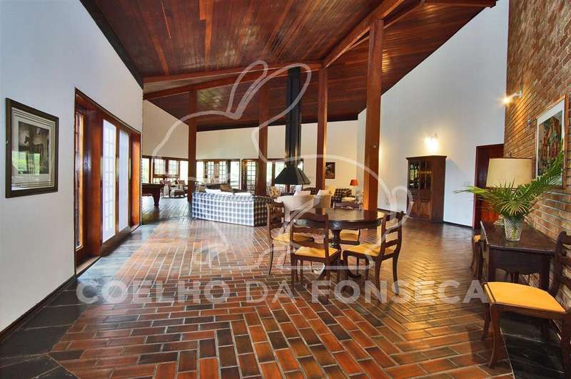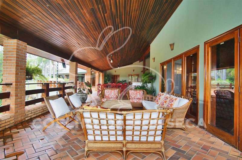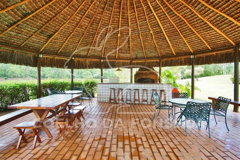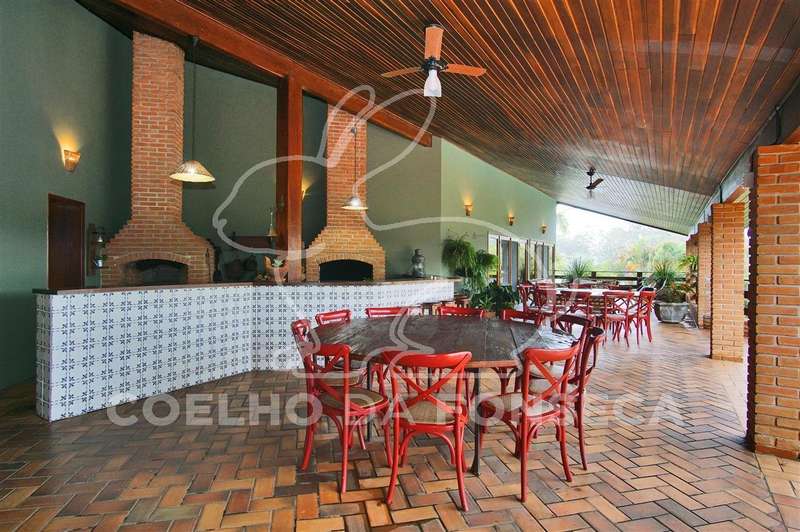 Casa principal conta com sala de estar ampla (com lareira), sala de almoço, sala de jantar, sala de TV, varanda com churrasqueira e forno de pizza, lavabo, cozinha e área de serviço;Áreas Comuns: piscina, vestiário/banheiro, sauna, quiosque na margem da represa privativa com churrasqueira, quadra de ténis reformada, campo de futebol, área para animais (cavalos, galinhas, etc.), pomar e uma área grande destinada ao plantio de eucaliptos (margem oposta da represa em relação à casa principal e demais áreas construídas).
