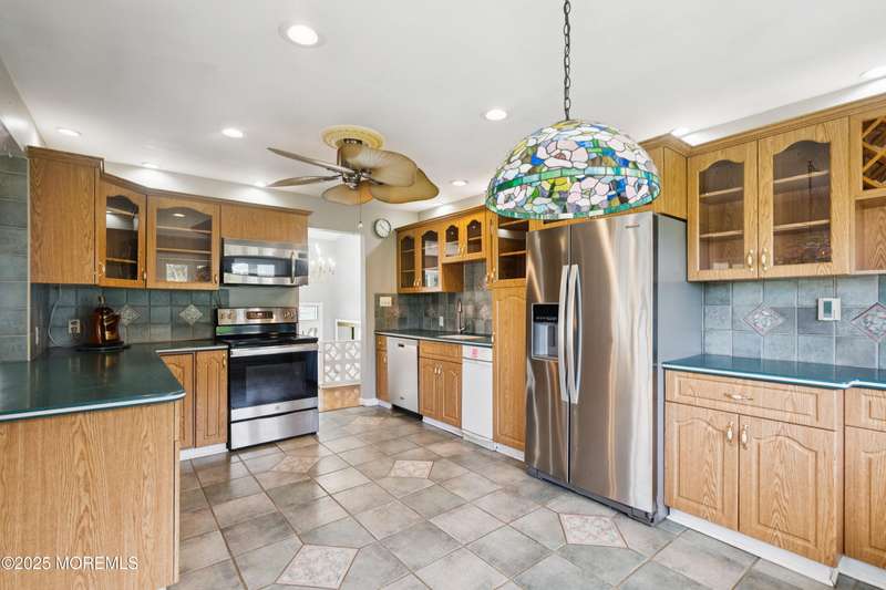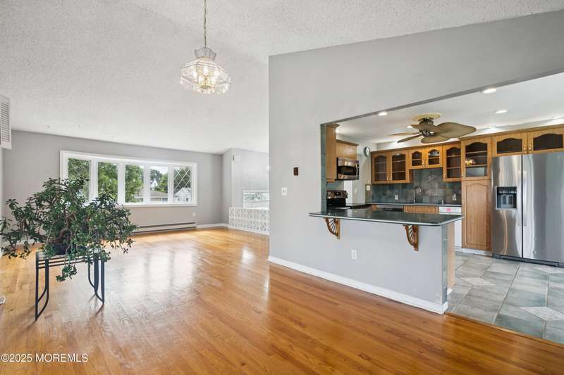 Charming Bi-Level in Point Pleasant Borough! Welcome to this fantastic home located on a quiet dead-end street in desirable Point Pleasant Borough! This property offers a versatile layout with endless possibilities. The upper level features an open living space with vaulted ceilings, wood floors, and stainless appliances, plus a bright sunroom/3-season room leading to the upper deck with water views. Downstairs includes a private mother-daughter/in-law suite with a newer kitchen and separate entrance. Outside, enjoy a large yard with mature trees, two sheds, side storage, outside shower, and beach access nearby! While the home offers so much potential, it's ready for your personal touch. Close to beaches, shopping, and major highways a rare find in an unbeatable location!