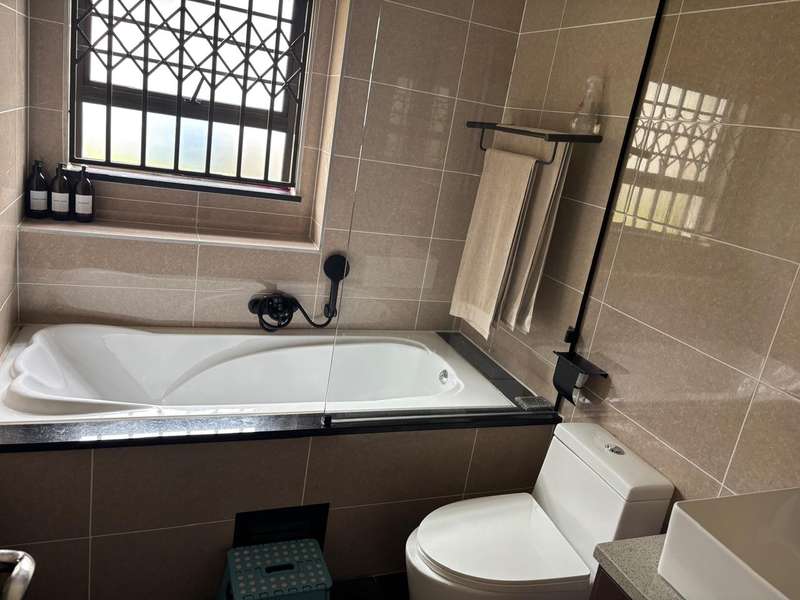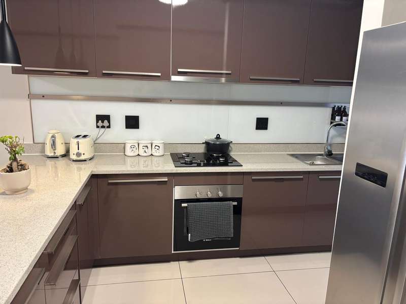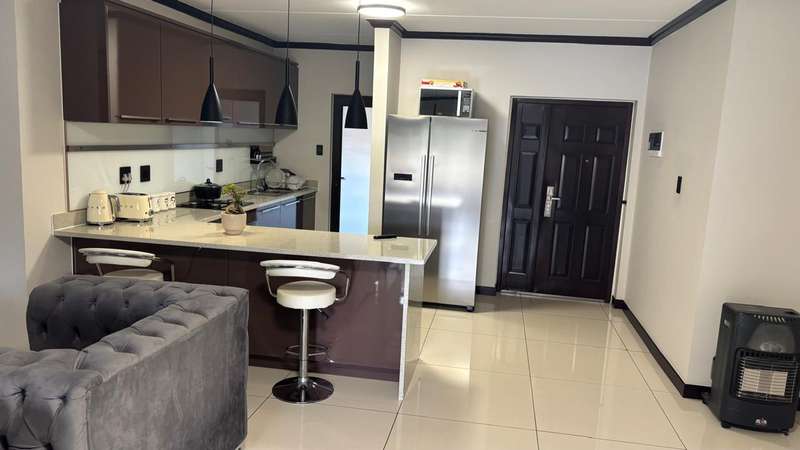 This immaculate ground floor apartment offers luxurious, spacious living in a highly sought-after, upmarket complex. Boasting elegant finishes and a thoughtfully designed layout, this home is ideal for discerning buyers seeking comfort, style, and convenience. Step into a sprawling open-plan lounge, dining area, and kitchen, all seamlessly flowing together over beautiful large-format porcelain tiles. A sliding door opens to a generous covered patio, complete with a built-in braai, sink, and cupboards – perfect for effortless entertaining. The patio overlooks an expansive, private garden with enough space to add a pool, offering rare outdoor freedom in a secure apartment setting. The gourmet kitchen features granite countertops, a gas hob, under-counter oven, space for a double-door fridge, a built-in dishwasher, and a separate laundry area – combining functionality with sophisticated design. Accommodation includes four generously sized bedrooms, all with ample built-in cupboards. The main bedroom is en-suite, with a modern, high-end bathroom, while the second full bathroom is equally well-appointed and shared by the other bedrooms. Every detail has been carefully considered, with classy finishings that elevate the entire space. Located in a pristine complex with a stylish clubhouse and sparkling communal pool, this apartment delivers both luxury and community. The location is unbeatable – perfectly situated close to major routes, top schools, shopping centres, and medical facilities. With its flawless condition, high-end features, and expansive garden, this property offers a rare opportunity to enjoy the best of both apartment convenience and private outdoor space. Move-in ready and ideal for families, professionals, or those seeking to scale down in style. Don’t miss this exceptional home – schedule your viewing today!