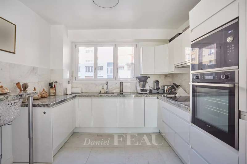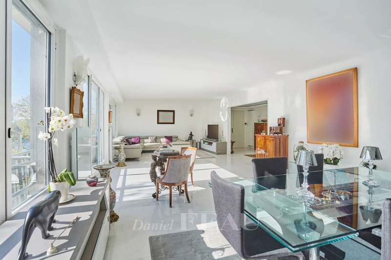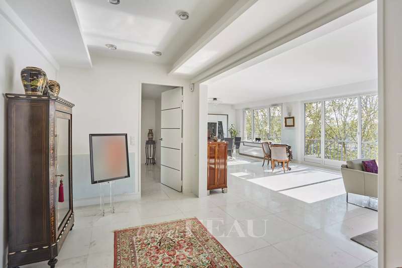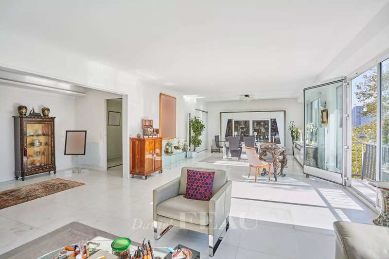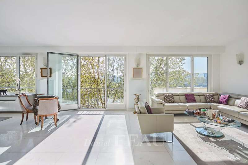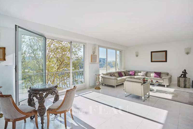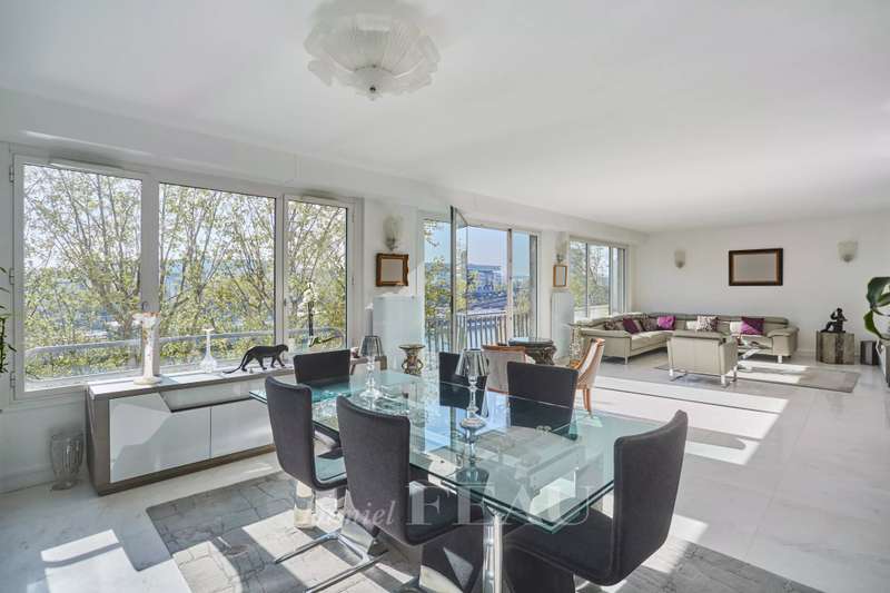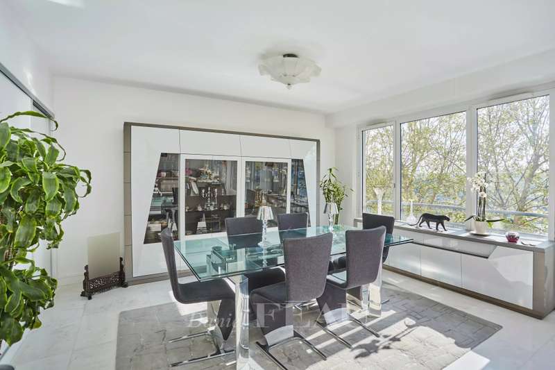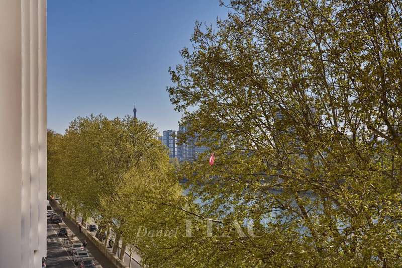 This superb 5-room apartment offering 136.23 sqm of renovated living space is on the 4th floor of a luxurious mid 20th century building set on the banks of the Seine. Bathed in sunshine and commanding an open view of the river and the Eiffel Tower, it includes an entrance hall, a triple living/reception room opening onto a 5 sqm continuous balcony, a fully fitted kitchen with dining facilities, a master suite with a shower room, a second bedroom, a bathroom and a guest wc. Ample fitted storage space. With a cellar and a compact lock-up garage Jean-Baptiste Say catchment area.