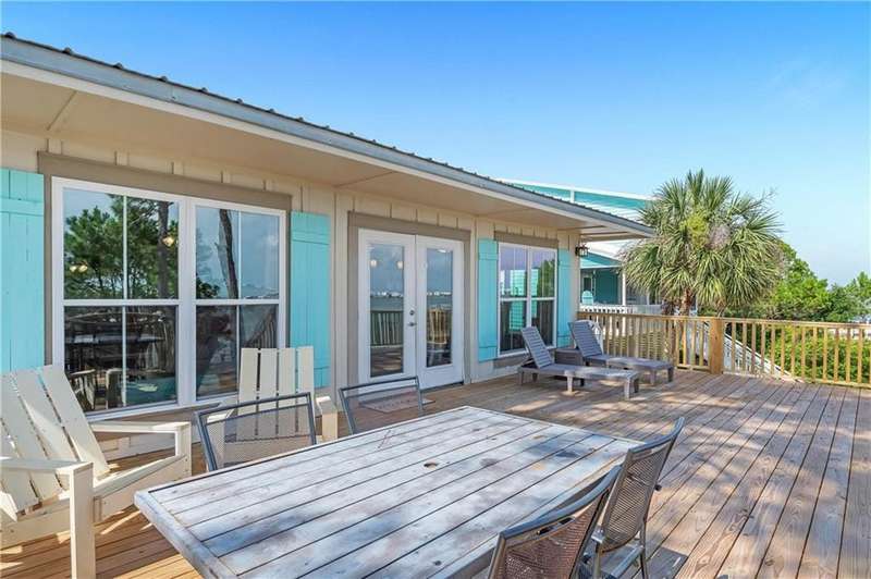 Welcome to Paradise on Little Lagoon! 14752 State Highway 180, Gulf Shores (The Last Resort)Discover coastal living at its finest with this charming raised-beach home nestled along the tranquil northern shores of Little Lagoon. Boasting 50 feet of prime waterfront, this 4-bedroom, 2-bath single-family retreat offers the perfect blend of comfort, recreation, and natural beauty. Enjoy effortless boating and water activities from your newly constructed covered dock, complete with a private boat slip and deep water access! An ideal setup for fishing, swimming, kayaking, or simply soaking in the serene surroundings. Inside, the open-concept kitchen, dining, and living areas showcase stunning water views, making every meal and moment unforgettable. Step outside to your screened-in Tiki Bar! A true outdoor bonus space designed for entertaining, relaxing, and taking in Gulf Coast sunsets. Located directly across from The Peninsula Golf and Racquet Club and the Fort Morgan biking and walking trail, this property offers easy access to tennis, golf, and scenic outdoor adventures. You're also just a short drive from the secluded Mobile Street Beach and the birding trails of the Bon Secour Wildlife Refuge. Historic Fort Morgan and the Dauphin Island Ferry are nearby, opening the door to even more coastal exploration. Whether you're seeking a serene getaway, a boater's dream, or a lively family retreat, this is where the best of Gulf Shores living begins. Buyer to verify all information during due diligence.