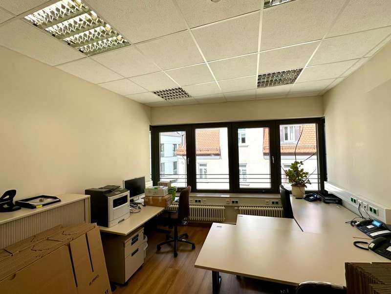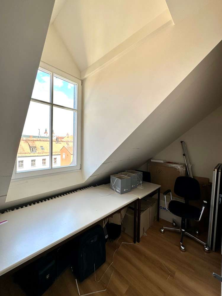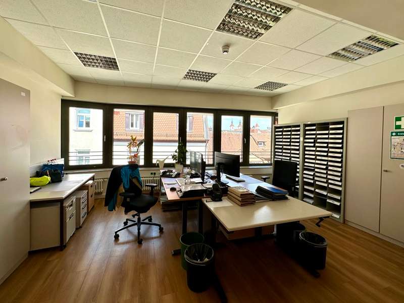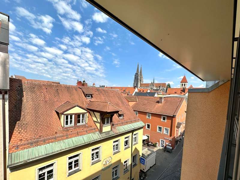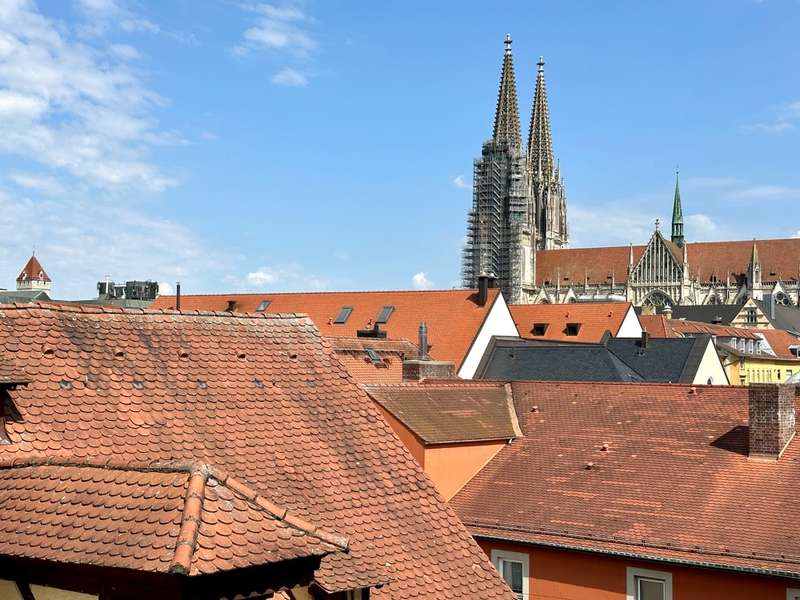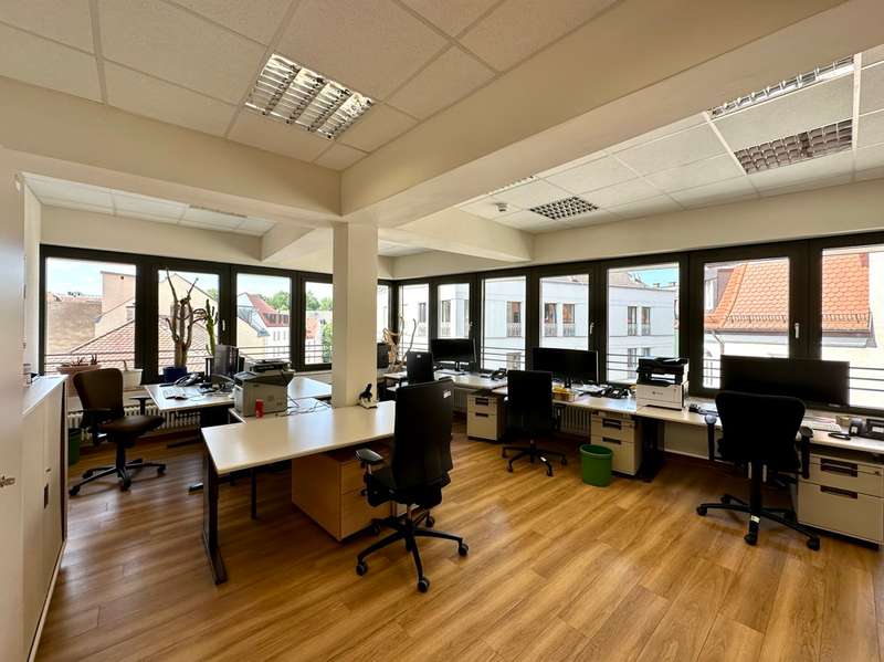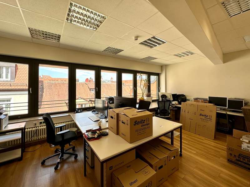 The offered office space is located in an outstanding 1a shopping location in the pedestrian zone of the historic Königsstraße in Regensburg. This location is characterized by its central connection and excellent accessibility. Surrounded by renowned stores, restaurants and cafés, Königsstraße is the heart of the city and a magnetic attraction for business people and customers alike. The office space is part of a modern architect-designed building that has already been chosen as a tenant by well-known companies, such as H&M. The building exudes elegance and professionalism, making it a prestigious location for companies looking for a unique and prestigious working environment. The office space is conveniently and barrier-free accessible via an elevator on the 5th floor, ensuring smooth access for all employees and visitors. The total office space of approx. 395 sqm impresses with its optimal room layout. Eight generously sized rooms offer sufficient space for efficient work areas and provide the flexibility to accommodate different teams and departments. The office space is characterized by first-class room furnishings. The parquet floors lend the rooms a warm and stylish atmosphere, while the panoramic windows with integrated Venetian blinds not only provide sufficient daylight, but also offer a breathtaking view of the picturesque rooftop landscape and the imposing Regensburg Cathedral. An absolute highlight of the office space is the spacious roof terrace of approx. 65 sqm. This area can not only be used as a place of relaxation and recreation for the staff, but also offers space for informal meetings and company events under the open sky. The office space has a practical staff kitchen with high-quality built-in appliances and ample dining facilities. In addition, three WC units are available to meet the needs of employees and visitors. With an outstanding location directly in the busy pedestrian zone and close to the train station, this office space provides an ideal base for companies looking for a central location to benefit from high pedestrian traffic and optimal connections. This exclusive office space at Königsstraße 5, Regensburg, offers companies a unique opportunity to set up shop in a modern architectural building with prominent neighbors such as H&M. With high-quality furnishings, optimal room layout and an unbeatable location, this space is an ideal home for innovative business activities. Take advantage of the opportunity to establish your corporate presence in this prime location. Please do not hesitate to contact us for further information and a personal viewing.