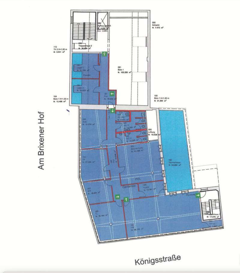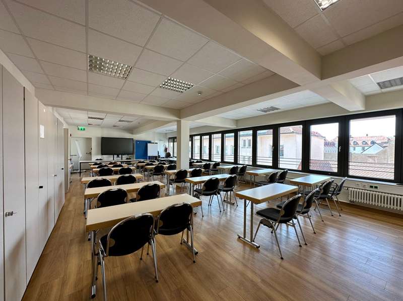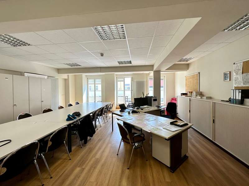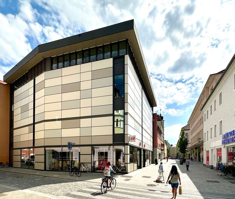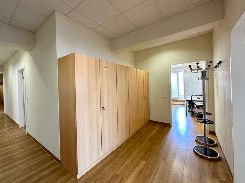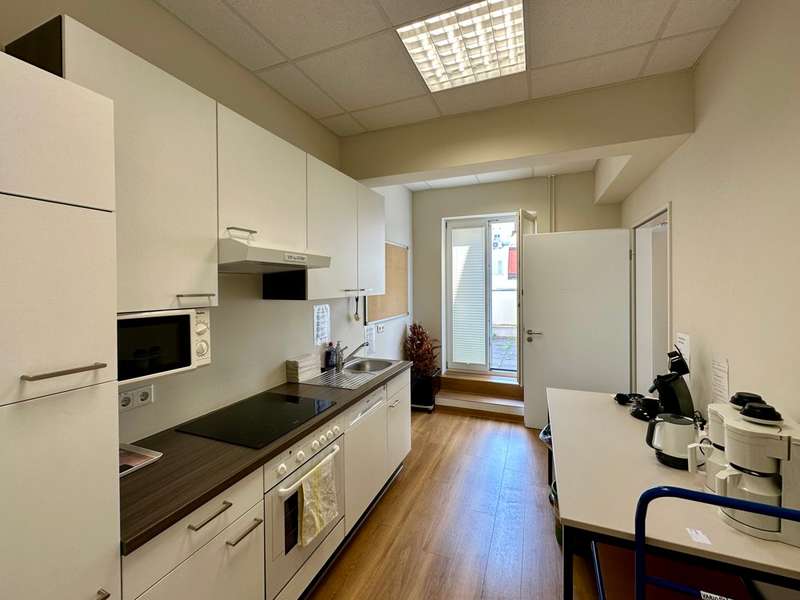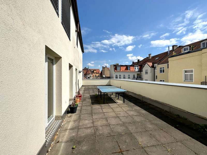 The offered office space is located in an outstanding 1a shopping location in the pedestrian zone of the historic Königsstraße in Regensburg. This location is characterized by its central connection and excellent accessibility. Surrounded by renowned stores, restaurants and cafés, Königsstraße is the heart of the city and a magnetic attraction for business people and customers alike. The office space is part of a modern architect-designed building that has already been chosen as a tenant by well-known companies, such as H&M. The building exudes elegance and professionalism, making it a prestigious location for companies looking for a unique and prestigious working environment. The office space is conveniently and barrier-free accessible via an elevator on the 5th floor, ensuring smooth access for all employees and visitors. The total office space of approx. 395 sqm impresses with its optimal room layout. Eight generously sized rooms offer sufficient space for efficient work areas and provide the flexibility to accommodate different teams and departments. The office space is characterized by first-class room furnishings. The parquet floors lend the rooms a warm and stylish atmosphere, while the panoramic windows with integrated Venetian blinds not only provide sufficient daylight, but also offer a breathtaking view of the picturesque rooftop landscape and the imposing Regensburg Cathedral. An absolute highlight of the office space is the spacious roof terrace of approx. 65 sqm. This area can not only be used as a place of relaxation and recreation for the staff, but also offers space for informal meetings and company events under the open sky. The office space has a practical staff kitchen with high-quality built-in appliances and ample dining facilities. In addition, three WC units are available to meet the needs of employees and visitors. With an outstanding location directly in the busy pedestrian zone and close to the train station, this office space provides an ideal base for companies looking for a central location to benefit from high pedestrian traffic and optimal connections. This exclusive office space at Königsstraße 5, Regensburg, offers companies a unique opportunity to set up shop in a modern architectural building with prominent neighbors such as H&M. With high-quality furnishings, optimal room layout and an unbeatable location, this space is an ideal home for innovative business activities. Take advantage of the opportunity to establish your corporate presence in this prime location. Please do not hesitate to contact us for further information and a personal viewing.