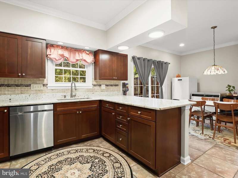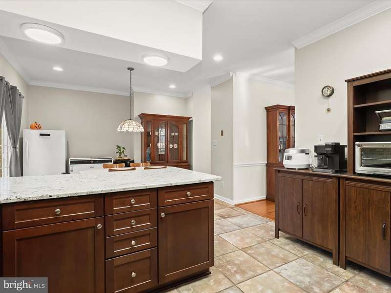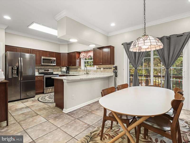 Welcome to the sought-after Chapelgate community of Lutherville-Timonium! This beautifully maintained end-unit brick townhome offers three levels of exceptional living space with elegant updates and timeless charm. Step inside to find a bright and open main level featuring a spacious living room with gorgeous hardwood floors, crown molding, and high ceilings that seamlessly flow into the dining area adorned with chair railing and a large picture window showcasing serene views of mature trees. The chef's kitchen is a true highlight, boasting granite counters, stainless steel appliances, soft-close drawers, a decorative backsplash, a breakfast bar, a pantry, and a sunlit breakfast area with access to the spacious deck overlooking landscaped grounds, perfect for entertaining or relaxing outdoors. Retreat upstairs to the luxurious primary suite, complete with a vaulted ceiling, double closets, and a versatile loft area ideal for an office or private sitting space. The en-suite bath offers a jetted soaking tub, walk-in shower, and expansive vanity. Two additional bedrooms and a full hall bath complete the upper level. The fully finished lower level provides endless possibilities, featuring a bedroom with chair ledge detailing, a powder room, and a cozy family room enhanced by custom wallpaper, a gas fireplace with a brick surround, remote, and wood mantle, and walkout access to the patio and flower beds. Additional highlights include assigned parking for two vehicles and major recent updates: The entire roof, water heater, HVAC (lower level), sliding doors in the kitchen and family rooms, all windows, a fully renovated kitchen including granite counters and newly installed cabinetry and sink, installed new exterior siding using durable, low-maintenance permanent materials around the window openings on the loft area, and water service line. Enjoy peaceful living in a prime location with easy access to I-95, I-695, and I-83, plus the shopping, dining, and charm of Lutherville-Timonium just minutes away!