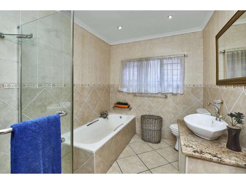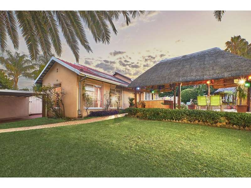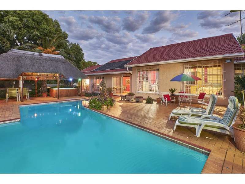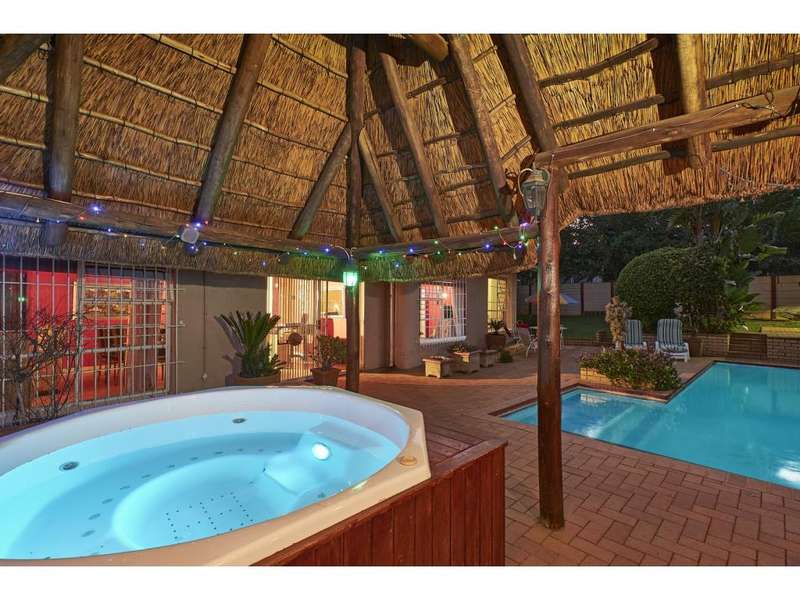 Entertainers Delight! This inviting family home is nestled in a quiet location, close to all amenities. As you step inside, you?ÇÖll be greeted by a formal lounge and dining area that seamlessly flow out to a large thatch lapa. This outdoor entertainment space features a jacuzzi, a built- in braai, and a second thatch lapa designed for more intimate gatherings. Both areas offer stunning views of the solar- heated pool, promising endless relaxation and fun-filled moments. The heart of the home is its open-plan kitchen, centered around a central island hob and complemented by a well-equipped scullery capable of accommodating all your appliances comfortably. The residence boasts three- north facing bedrooms, with the expansive master suite stealing the spotlight. Featuring a slider that opens to the beautifully landscaped garden, this suite offers a tranquil retreat. Additionally, there are three bathrooms, including a spacious en-suite with a luxurious jacuzzi bath, perfect for unwinding after a long day. Outside, the property includes an outbuilding comprising a lock-up garage, ample staff accommodation, and a double carport, ensuring convenience and space for all your needs Security is a paramount, with a linked alarm system and electric fencing providing peace of mind and safeguarding your loved ones. This home is an invitation to a lifestyle of comfort, relaxation, and joyful gatherings. Don?ÇÖt miss out on this opportunity! Seller negotiating from R1 749 000