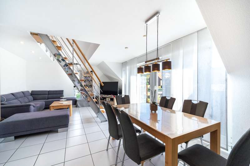 This property is presented to you by: Luca Böckstiegel & Jan-Phillip Adam Office: 05201 - 15 88 02 1 Duplex apartment with roof terrace on a south-facing slope | 71 m² living space + 10 m² usable space | double carport This extraordinary maisonette apartment on the southern slope of the Teutoburg Forest offers approx. 71 m² of living space as well as approx. 10 m² of usable space in the attic and impresses with its fantastic roof terrace with a fantastic view of the Teutoburg Forest. The house was built in 1995 and is in a well-kept condition. The floor plan impresses with its clear room layout: the bright living area forms the heart of the apartment. Generous window areas provide plenty of light throughout the day and create a pleasant living atmosphere - from here you have direct access to the balcony with a great view of the Teutoburg Forest. The open-plan kitchen is equipped with a practical and timeless fitted kitchen that offers plenty of storage space and work surfaces for preparing daily meals. From the hallway, which is separated from the living, cooking and dining area by a chic glass door, you can reach the spacious daylight bathroom with bath and shower, the bedroom and a practical storage room. The absolute highlight of this apartment is the roof terrace with a sweeping view of the Teutoburg Forest. A staircase from the living room takes you to the gallery in the top floor - here you will find another storage room and additional space that can be used as a home office or guest area. From here, you can access your personal outdoor retreat through a fantastic floor-to-ceiling gable window. Completely sheltered from view, you can switch off from everyday life here and enjoy great summer evenings with friends. Further features include an allocated double carport and an additional cellar room for storage. Please note that the double carport must be purchased for an additional €10,000.00. Do you like what you see? We look forward to meeting you in person! Please understand that only written inquiries with a full address and telephone number can be processed. A viewing can only take place with a financing confirmation. Should you require further assistance in this regard, we will be happy to put you in touch with our colleagues at VON POLL FINANCE.