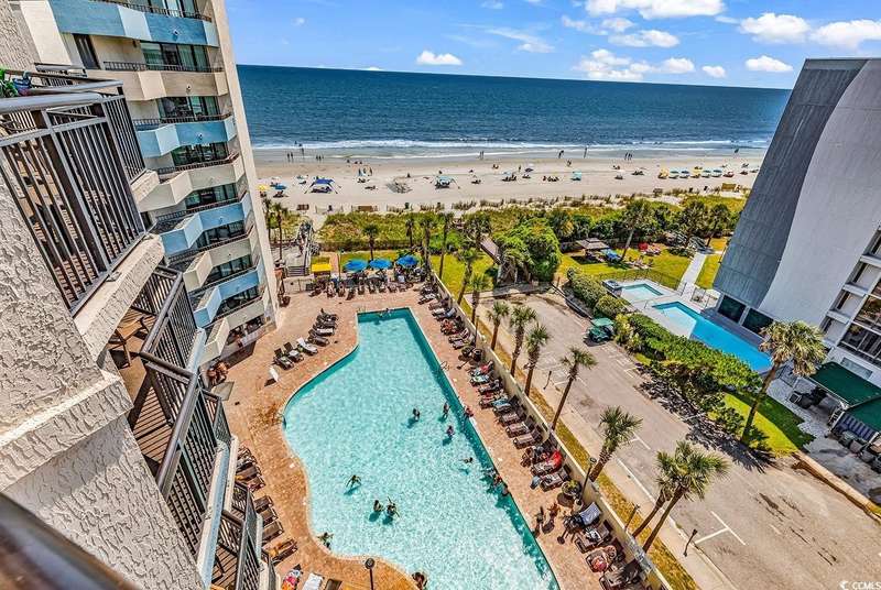 The View from this 8th floor Ocean Front Condo at Ocean Reef Resort is a MUST SEE! Welcome to your own slice of Paradise at the highly desirable Ocean Reef Resort! This Unit is a Rental Income Machine - Turnkey and Fully Furnished - meticulously maintained, 3-bedroom, 2-bath condo offering breathtaking ocean and pool views along with unparalleled resort-style amenities ... and all this, just steps from the beach. This split-floorplan Unit boasts a Primary Suite with spectacular views of the Atlantic Ocean, and two additional bedrooms on the opposite end of the condo, providing plenty of space, privacy, and comfort for your Family and/or Guests. The main living space is open concept - Kitchen, Dining, and Living Room spaces - which allow for inclusive entertaining, dining, and relaxation. The Kitchen is fully stocked and ready for meal preparation; the living room opens up to an oversized balcony with unobstructed ocean views - providing a perfect pick-me-up to start your day or a relaxing end-of-day treat. This unit includes a variety of updates throughout: including various furnishings, kitchen updates, new washer/dryer (2004), and new dishwasher (2025). Don't forget about the pet-friendly policy for owners. Ocean Reef Resort offers an amazing amenity package: Indoor & outdoor pools; Hot tubs; Lazy River & Waterslide Park; Fitness Center & Game Room; Pool Bar; Onsite restaurant; and a convenience store. Located in the heart of Myrtle Beach, you're just minutes from all the top attractions that the area has to offer: Dunes Golf & Beach Club, Broadway At The Beach, the SkyWheel, Carolina Opry, Tanger Outlets, and tons of other golf courses, shopping, restaurants, and entertainment! This condo has it all! So don't miss your opportunity to be a part of everything that the Grand Strand has to offer!!