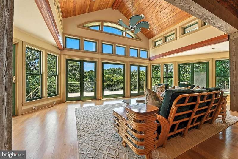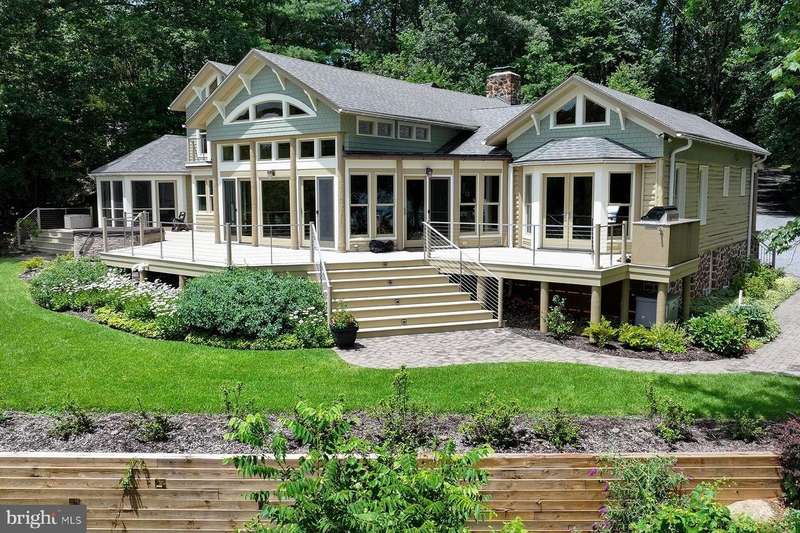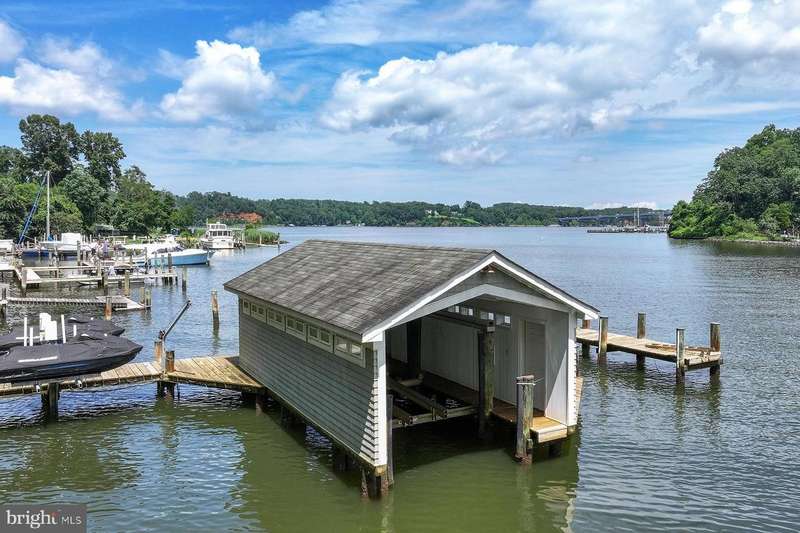 Ideally situated on the banks of Luce Creek with sweeping views down the Severn River, 1715 Porters Hill Road is a unique heritage property with over a century of history. Set on a 1.7 acre lot with 265 ft of waterfrontage, the property includes a large, hard-to-find boathouse that provides both charm and utility for all your waterfront adventures. The private pier has 7+ ft water depth and can accommodate a large vessel as well as an assortment of smaller boats. The tram makes access to the water effortless, and the entire property enjoys an exceptional privacy. Steeped in its storied past yet thoughtfully updated for modern living, this retreat captures the perfect balance of historic charm and casual elegance. The heart of the home is a sunlit great room with original log walls and quarried stone fireplace, a vaulted ceiling, and expansive windows which frame water views at every turn. An adjoining den, with separate entrance option, is a perfect place to relax. This could easily become another main level bedroom with ensuite bathroom. The kitchen is striking under its vaulted ceiling accented by exposed beams. The custom cabinetry, GE Monogram stainless steel appliances and generous island give the space so much functionality while maintaining the artisanal character. The kitchen opens to the dining area overlooking the water. The table is anchored by a craftsman-style light fixture, and the entire first and second floors have beautiful wood floors. Step outside and you're embraced by nature: multiple porches and decks overlook lush, manicured grounds that lead down to the water's edge. The main-level primary suite is a true sanctuary, designed for privacy and tranquility. The bedroom, with a vaulted ceiling, has a screened porch overlooking the water. Two expansive walk-in closets offer custom organization systems that would make a clothing connoisseur smile. The spa-like bathroom gets lots of natural light from the windows that frame the water, and the freestanding soaking tub is situated to enjoy this view. A dual-sink vanity, heated floors, generous walk-in shower with a built-in bench, and a spacious cosmetic area with dedicated seating make getting ready feel effortless and luxurious. A dedicated laundry area just off the hallway makes day-to-day living very easy. Part of the primary suite is a gracious office with gas fireplace and outdoor access. This is a totally flexible space: install a wall of bookshelves and you'd have a lovely library. Upstairs, there are two generously sized bedrooms. One has water views and a waterside balcony; the other overlooks the lush landscaping out front. There is a hall bathroom. A separate guest bedroom suite above the garage, complete with its own living area and luxe bathroom, is ideal for visiting friends and family who desire more privacy. The Historical Context: Originally built in the 1880s, this log house was one of three identical structures used as hunting lodges. It is the only one that remains. The construction of the log house is one of great craftmanship, including sizing each log to be approximately the same diameter as others. Lore has it that around the turn of the 20th century, the Naval academy wanted to acquire more land by the academy and traded this peninsula for land across from College Creek. The Naval Academy superintendent, Admiral David Porter, could be where the name Porter's Hill derived from. In the 1920's, the Whitehead family - three brothers known for running bootleg liquor to Baltimore and Washington during Prohibition - used the property as a place to entertain and stop on the way to Baltimore. In the 1940s, the brothers' exploits caught up with them, and the State of Maryland confiscated the Porters Hill peninsula. Through a unique trade involving the Jones family's gravel pit (now the site of the 895 Tunnel), this private waterfront enclave found its next chapter.