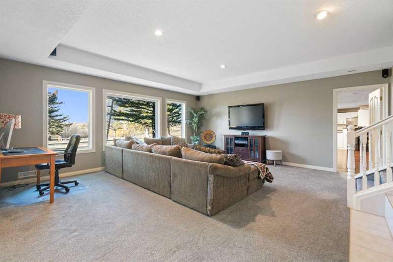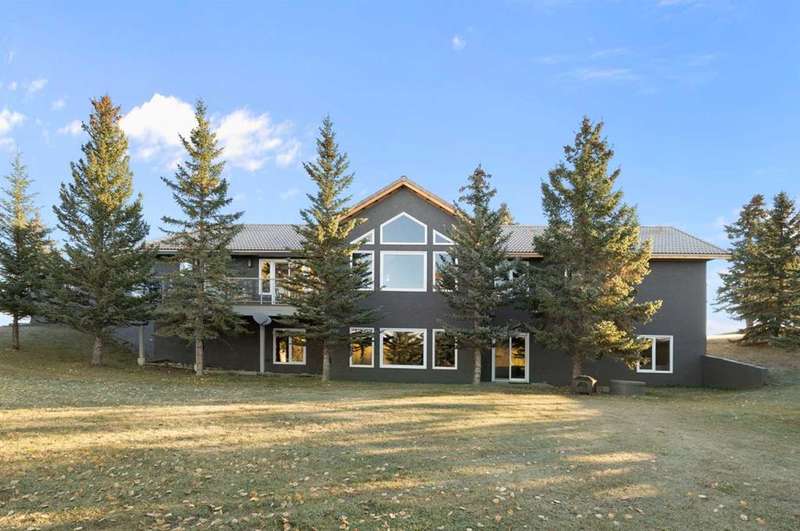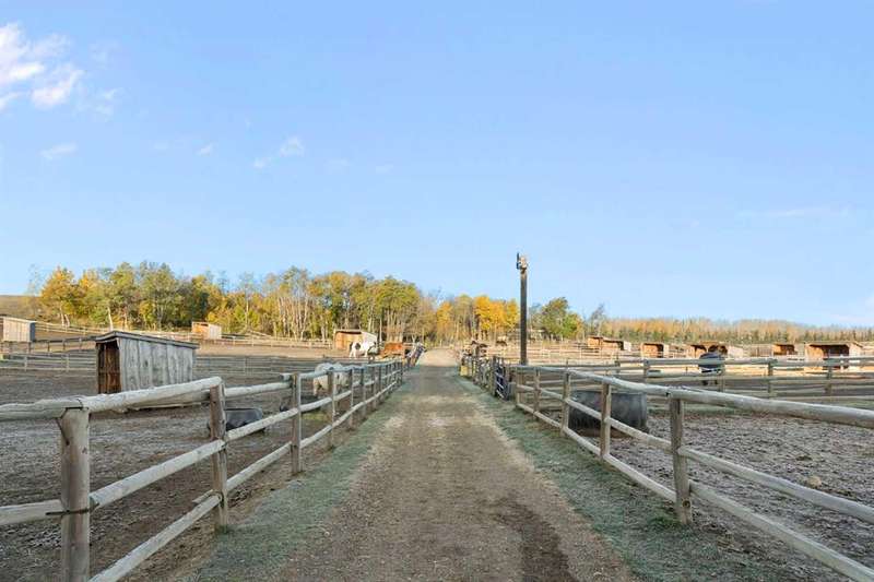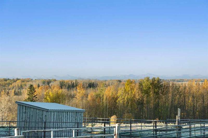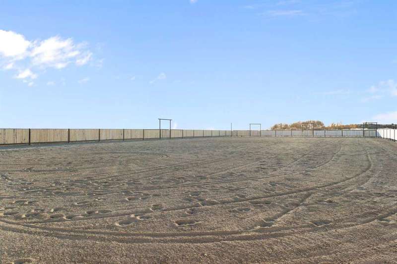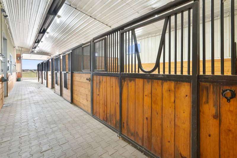 You can let the horses out of the barn—but you can’t take the passion out of a property like this. Thoughtfully designed for serious horse enthusiasts, this 107-acre equestrian facility just north of Calgary offers an exceptional blend of functionality, efficiency, and comfort. Every element has been designed with purpose, making daily operations smoother and the lifestyle truly rewarding. Step into a meticulously planned barn and arena complex that combines practicality with modern efficiency. Features include: heated indoor arena (80’ x 175’) with freshly releveled sand footing; two outdoor arenas (100’ x 210’ and 120’ x 140’); 65-ft, 8-ft-high round pen; hot walker; infrared solarium in the wash rack for year-round conditioning; auto waterers to all stalls; 17 paddocks and 24 shelters across the property; three ~10-acre pastures with excellent grass; insulated lean-to with bobcat bay; Energy Regulation System currently saving up to 28% on utilities; and three shipping containers (one fully converted for blanket storage with racks). The back 70+ acres is ready for the new year with a custom horse hay-blend, previously producing 200-280 round bales per season. Set on 107 private acres, this property offers space, seclusion, and natural beauty. The land is quiet and private, with neighbours rarely around, yet still benefits from school bus service with priority snow clearance and proximity to schools in Cochrane. The main residence is impeccably maintained and showcases a mountain view out of your living room windows. This bungalow has a walkout basement with illegal suite, and newer windows, electrical panel, furnace and hot water tank. A triple-car garage with 220V power adds versatility for tools or trailers, while a concrete parking pad out front adds even more practicality. This is not your average acreage — it’s a turnkey, intelligently designed equestrian operation with proven systems, established supplier relationships, and the perfect blend of form and function. If you’re looking for a facility that works as smart as you do, with the peace and privacy of Alberta’s countryside, this property delivers on every level. **See iGuide of House and Barn)