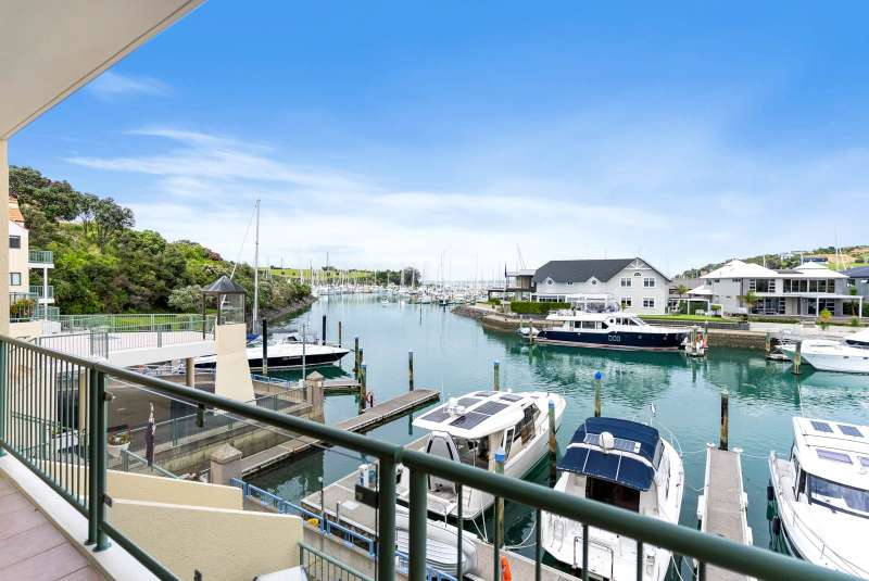 A setting that's both rare and unique within New Zealand, as well as an affordable way into a waterfront lifestyle. Canal side living with one of the best views in the complex, looking over the Gulf Harbour Marina. At around 100sqm and showing in very good, well maintained condition. An ideal lock up and leave home, in a secure gated community with a private residents boat ramp and secure boat parking. Avoid the queues at the public ramps! Featuring 2 large bedrooms, 2 full bathrooms, walk in wardrobe and an open-plan living/dining/kitchen area opening up to the deck. Copious amounts of storage including large hallway cupboards and private, external lockup. This apartment comes with one allocated trailer boat park (currently rented out, partially offsetting the body corp. fees) and the use of the appending boat-ramp. Straight into the canal and out to the Hauraki Gulf in minutes. Also featuring 2 other secure, car parking spaces, one covered and additional, external lockup storage space. Constructed in concrete tilt slab, the building is as solid as they come. All exterior maintenance is undertaken by the body-corporate and the property and grounds are kept in well-maintained condition. All you have to do is come home, put your feet up and enjoy the view! With a great community feel and friendly vibe, plus shops, cafes and restaurants just out your back door. Easy access to the ferry to Auckland City, and with the Whangaparaoa Shops, Manly Village, local beaches and Shakespear Park just a quick drive away. Call us for more information or a private viewing.
