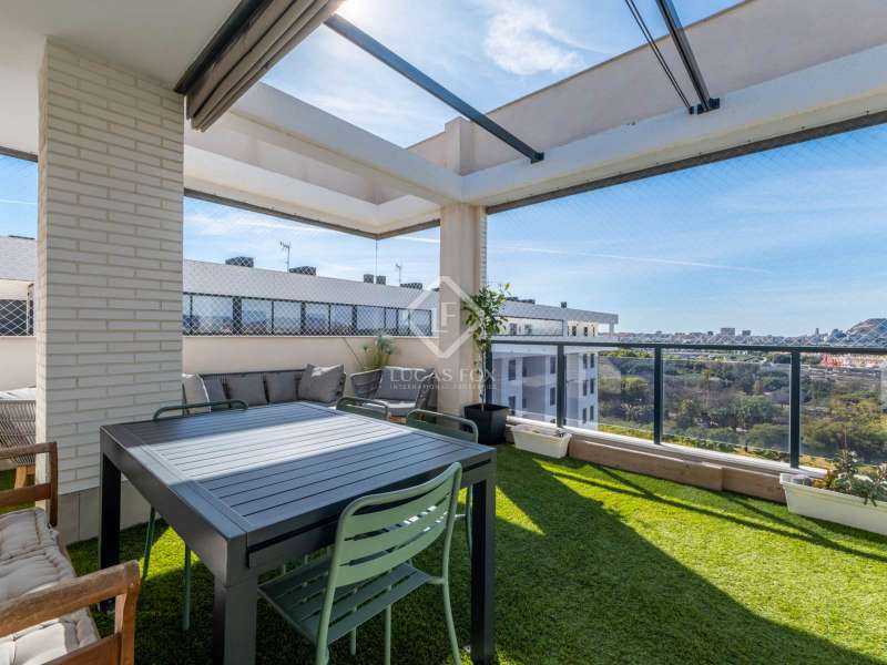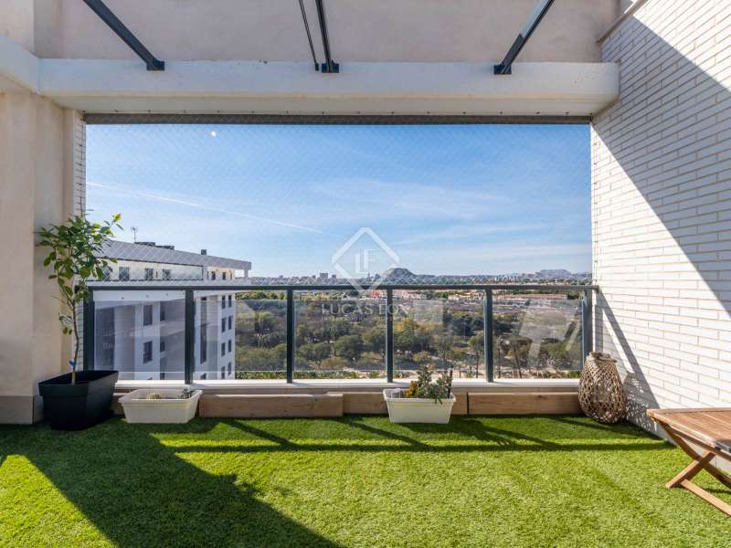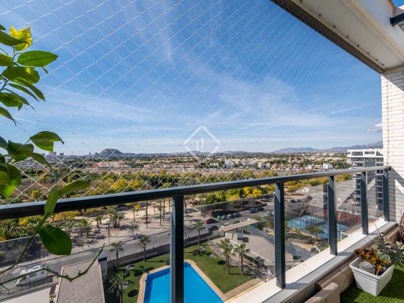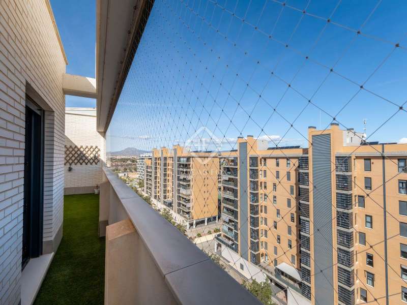 Discover this breathtaking 233 m² penthouse, a true gem in the vibrant neighbourhood of Pau 5. With arguably the best views of the serene Park Marjal and the spectacular Alicante sunset, this property offers a living experience like no other. Thoughtfully designed, the layout of the penthouse maximizes comfort and functionality. On one side, we find the kitchen and spacious living area, perfect for entertaining or relaxing, while the sleeping section is discreetly tucked away on the opposite side, ensuring privacy and tranquility. One of the most remarkable features of this home is the expansive terrace, which feels like an additional living room. Connecting seamlessly to both the kitchen and indoor living area, the terrace provides ample space to dine, lounge, and enjoy the Mediterranean climate. With outdoor space surrounding the apartment, you can choose the perfect spot to soak up the sun or savour a meal in different spots throughout the day. The interior of the penthouse boasts spacious rooms, all equipped with large built-in wardrobes and high-quality finishes. Every detail has been carefully considered to provide comfort and style, making it an ideal place to call home. Located just a 7-minute walk from the beautiful San Juan Playa and a 5-minute stroll from the tram station, this property offers unparalleled convenience. Alicante’s bustling city centre can be reached in just 20 minutes via tram, and Alicante airport is just a 20-minute drive away. The penthouse also includes two indoor parking spaces and a storage room, adding to its exceptional practicality. This is a rare opportunity to own a luxurious penthouse in one of the most sought-after areas of Alicante. Please contact us for further information.