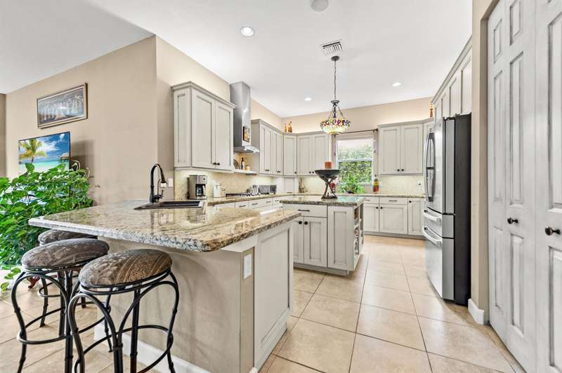 Majestically situated in The Estates section of the highly sought-after Tradition Community, this exquisite 4-bedroom, 3-bath Mediterranean-style home offers 3,888 sq ft of luxurious living space, designed to impress at every turn.From the moment you enter, you'll be captivated by volume ceilings, elegant architectural details, and a flowing layout that blends comfort and sophistication. The home features a remodeled gourmet chef's dream kitchen with premium appliances, custom cabinetry, stone countertops, and an expansive island -- perfect for entertaining and culinary adventures.The opulent primary suite is a serene retreat complete with a spa-inspired ensuite bath and two generous walk-in closets.