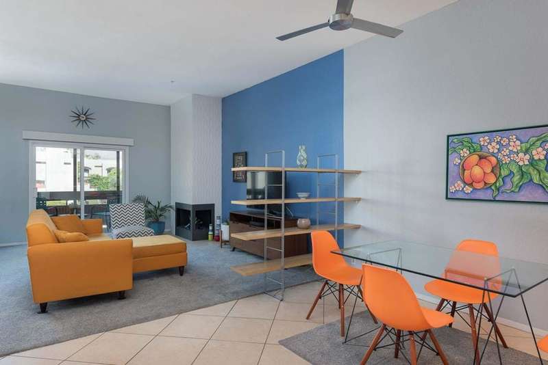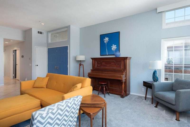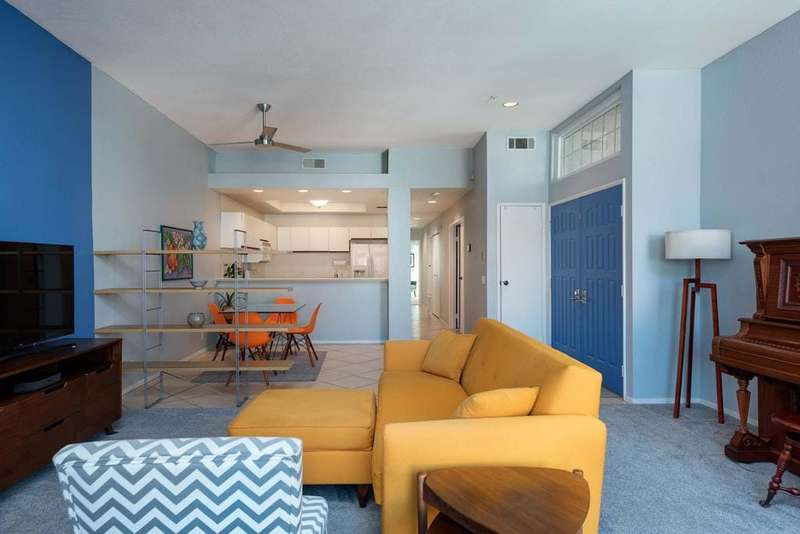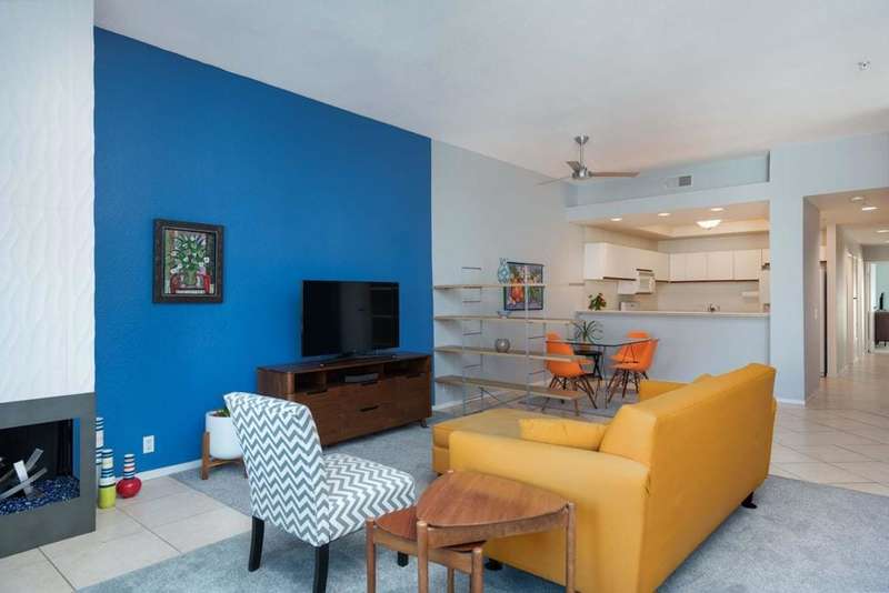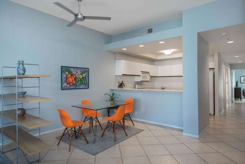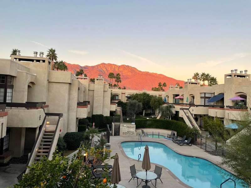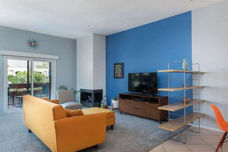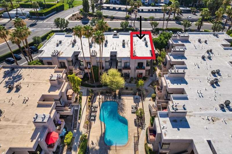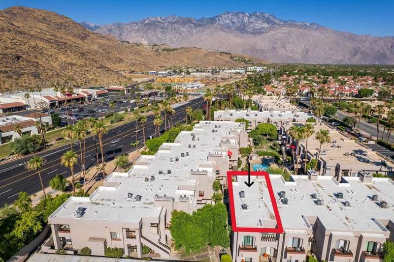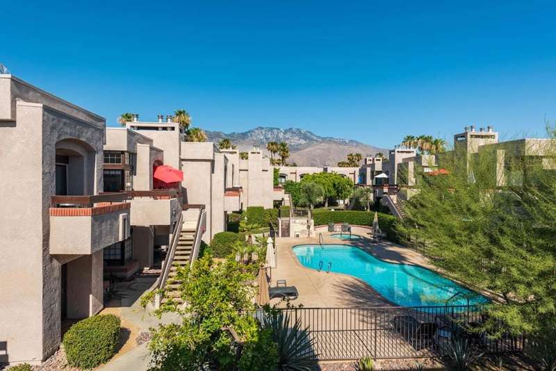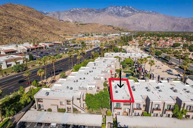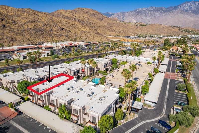 New price! If you've been longing for an affordable, well-priced home with spectacular views of the San Jacinto Mountains from your living room and front balcony, look no further! This 3-bedroom, 2-bath corner condo offers 1,417 sq ft in the desirable Tahquitz Creek Golf neighborhood in south Palm Springs. Located on the second floor with its own staircase, this light-filled unit has an open floor plan with 10-foot ceilings. Upgrades include Milgard dual-pane windows and doors throughout with custom window treatments (2021), a top-of-the-line Lennox HVAC system (2023), and an updated gas fireplace (2024). The primary suite offers a fully renovated bathroom (2022), walk-in closet, and rear balcony. The spacious kitchen provides plenty of counter and cabinet space as well as a convenient breakfast bar. The unit also includes a full-sized washer and dryer. The Summerset Springs community features two pools and spas, one just a few feet from the unit. This quiet, well-maintained, gated community with friendly neighbors is located on fee land a short distance from Vons, Trader Joe's, Target, and Starbucks. Welcome to your scenic desert retreat!