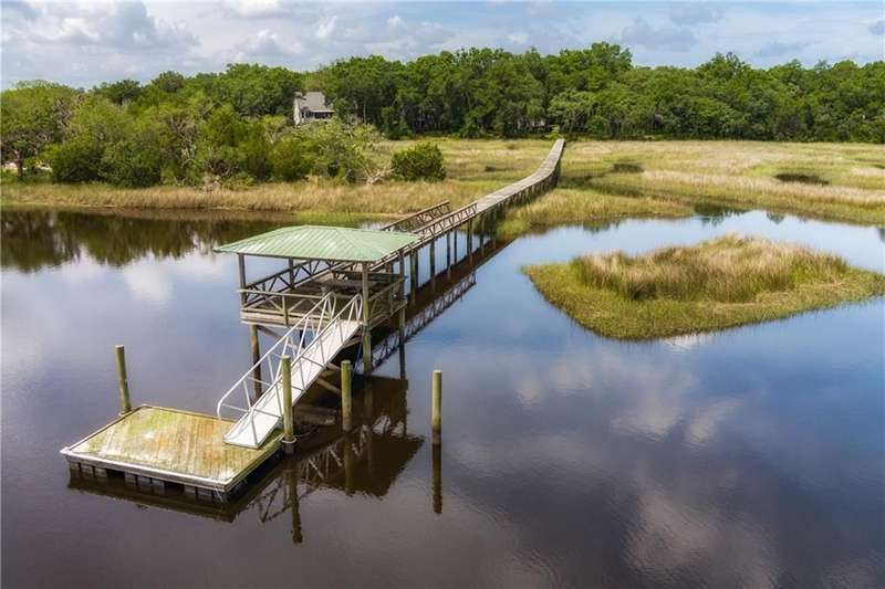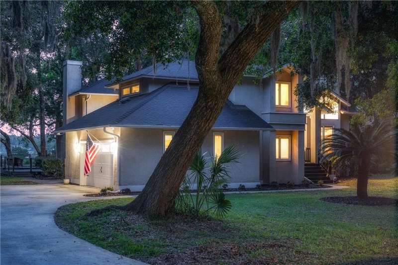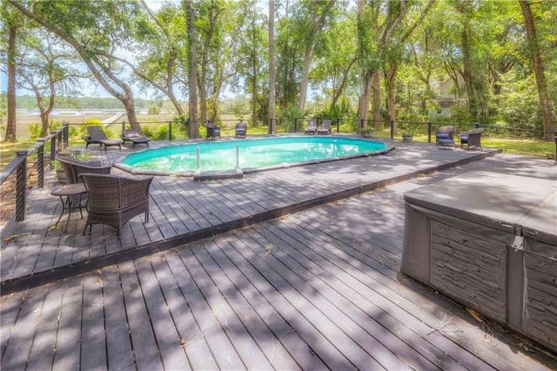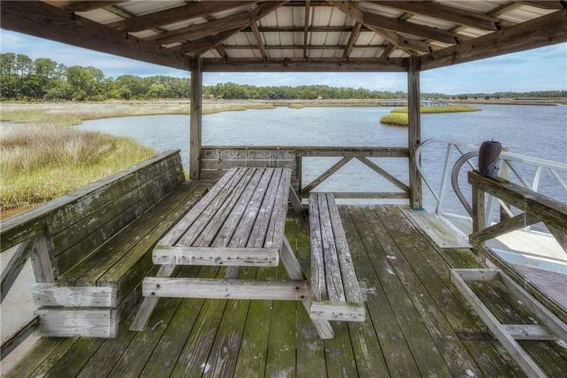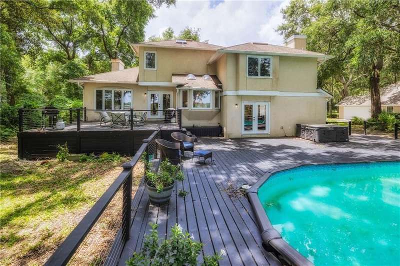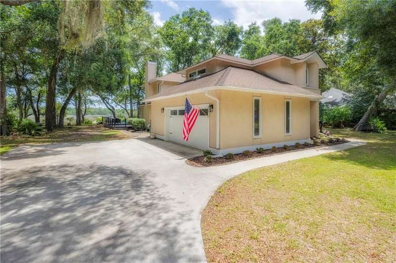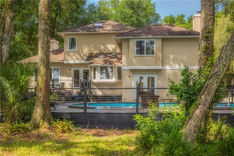 Exquisite Deepwater Retreat on the Saint Marys River! Nestled along the serene Saint Marys River, this exquisite deepwater property offers a rare blend of luxury and tranquility. Situated on a sprawling 1.33-acre lot adorned with majestic live oak trees draped in Spanish moss, this 4-bedroom, 3-bathroom home boasts a private covered and floating dock, providing direct access to the river. Outdoor Features: The backyard is a private oasis, featuring a sunken pool set within an expansive composite deck, complete with a hot tub for ultimate relaxation. Additional decking off the kitchen invites outdoor culinary adventures, while a charming veranda off the downstairs den and the main pool deck enhance the outdoor living experience. Construction and Amenities: Constructed with durable tabby and topped with a composition roof, this residence includes a generous 21/2 car garage. A water filtration system ensures clean water, and a sprinkler system with an irrigation well maintains the lush landscape. Interior Highlights: The massive upstairs master suite offers breathtaking river views and a spa-like bathroom with dual vanities, a wet room featuring a soaking tub, and a tiled stand-up shower illuminated by skylights. His and hers closets, along with two linen closets, provide ample storage. All bathrooms are elegantly appointed with solid surface vanities and separate tiled showers, one with a tiled tub/shower. The indoor laundry room includes a deep sink for added convenience. Two fireplaces add warmth and charm, while beamed and vaulted ceilings create a sense of grandeur. Double wooden front doors open to a stunning 2-story foyer, setting the tone for the homes elegance. A separate dining room comfortably seats 12, perfect for entertaining. Large format windows throughout the home flood the interiors with natural light and offer picturesque views. Kitchen and Breakfast Room: The gourmet kitchen features an island, beautiful cabinetry, granite countertops, a stylish backsplash, a double wall and convection oven, an oversized refrigerator, and stainless steel appliances. The breakfast room, with its bay window and skylights, overlooks the pool, creating a bright and inviting space. Location and Lifestyle: Conveniently located just 10 minutes from Kings Bay Submarine Base, 30 minutes to Jacksonville International Airport, and 35 minutes to Brunswick, GA, this home offers both seclusion and accessibility. A short 15-minute boat ride takes you to downtown Saint Marys, with another 15 minutes to Cumberland Isl